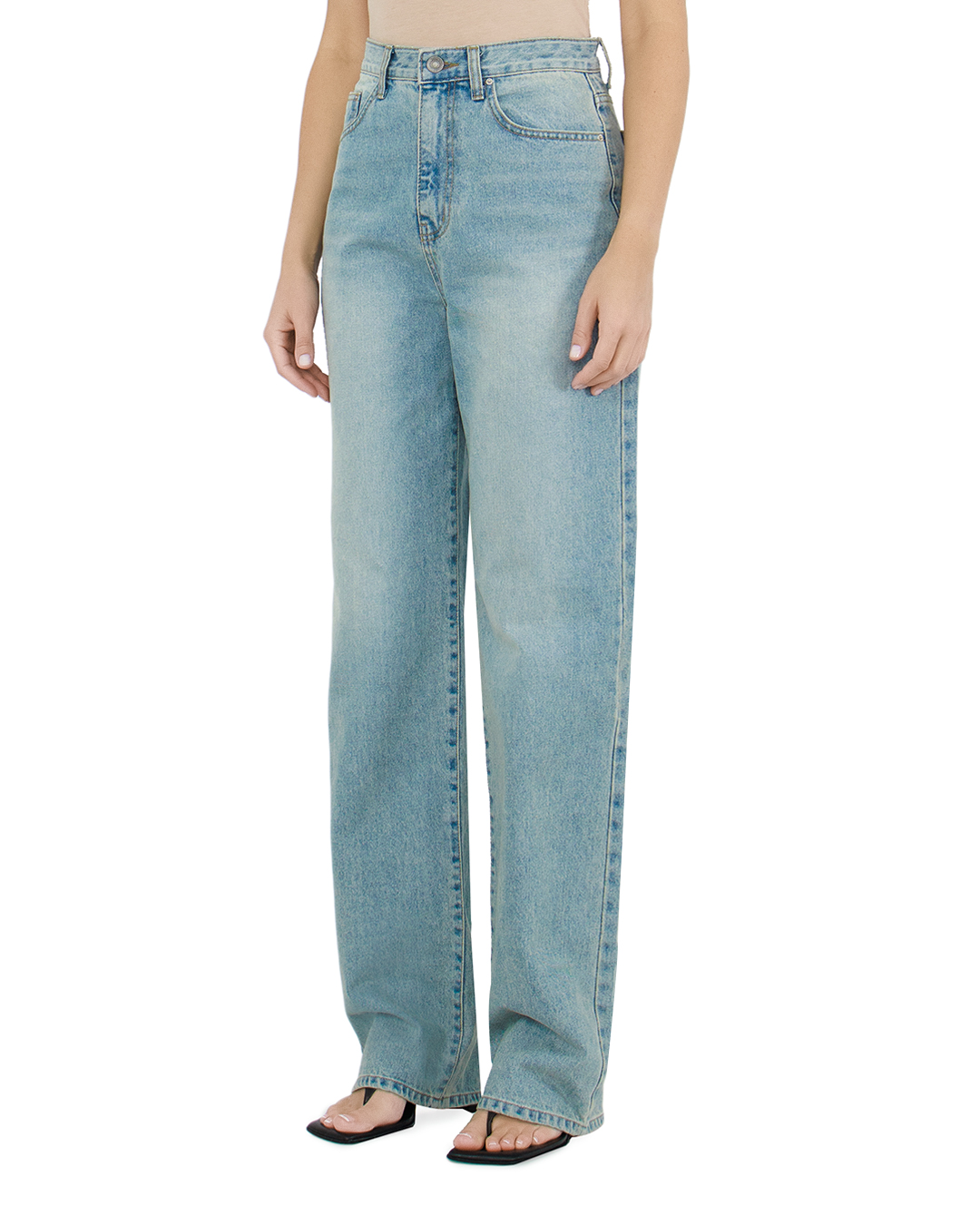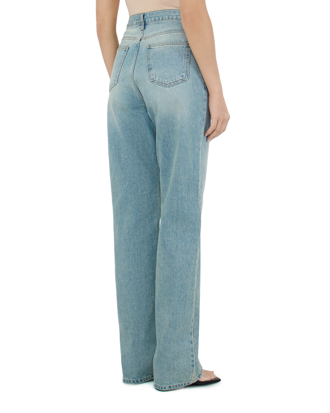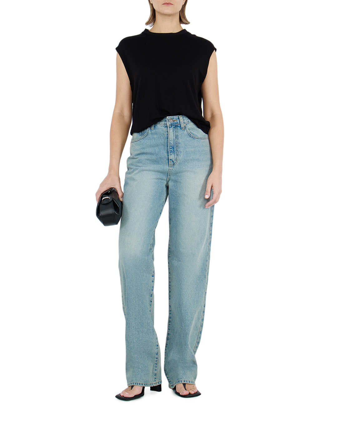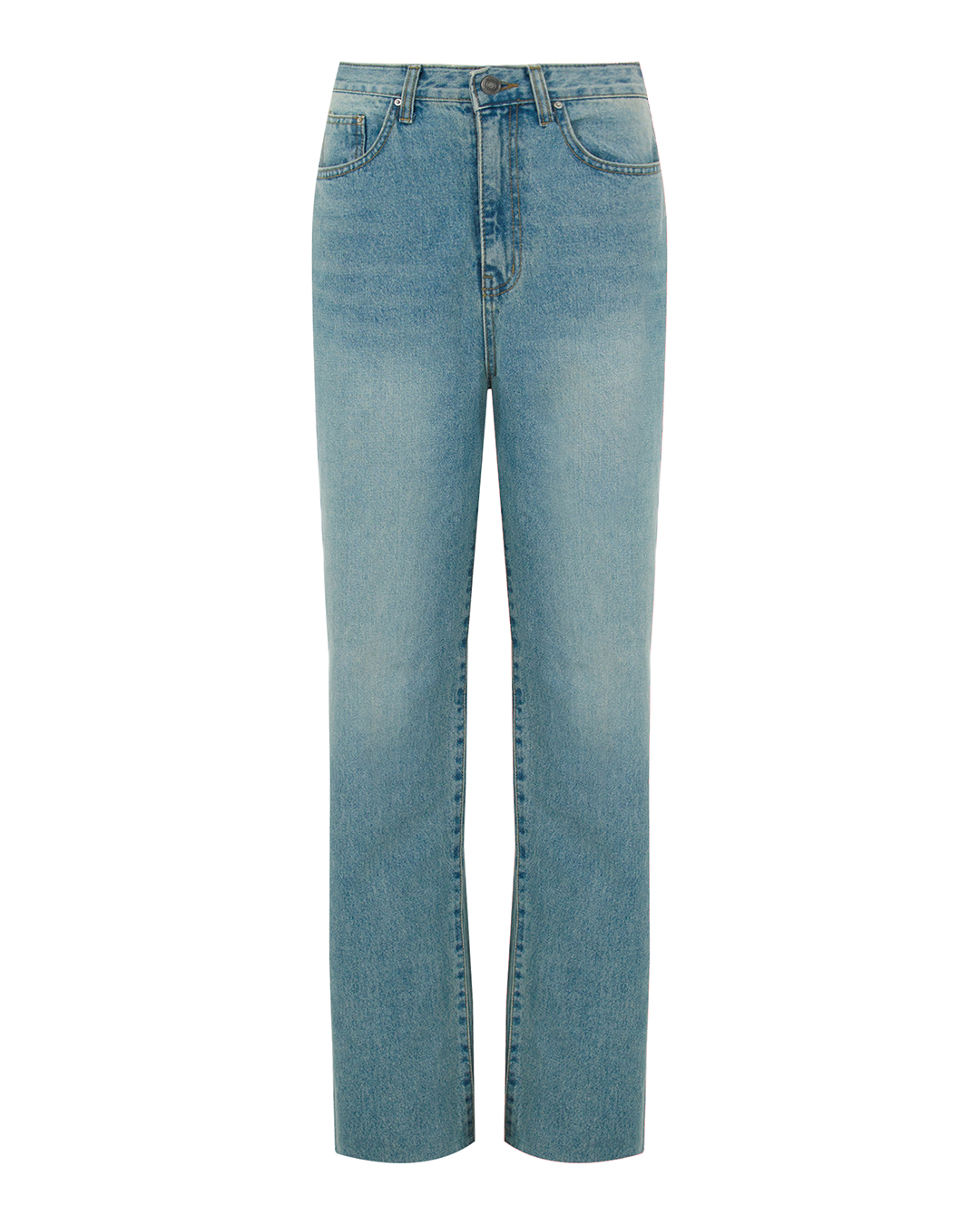 Джинсы прямого кроя с классическими пятью карманами и высокой посадкой. Пояс с шлевками для ремня, застежка на молнию и пуговицу. Такая модель будет прекрасно сочетаться с любым джемпером или худи