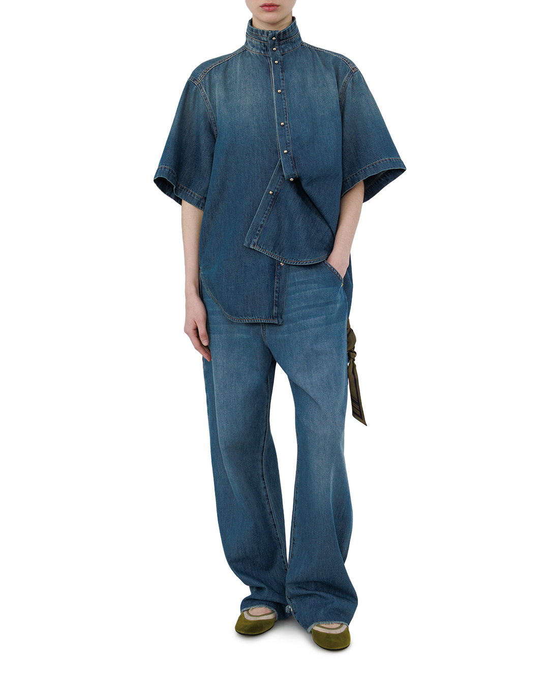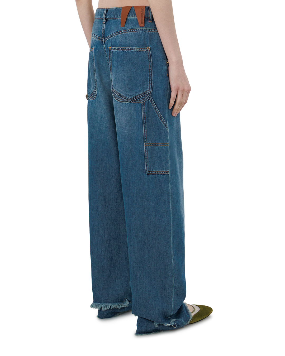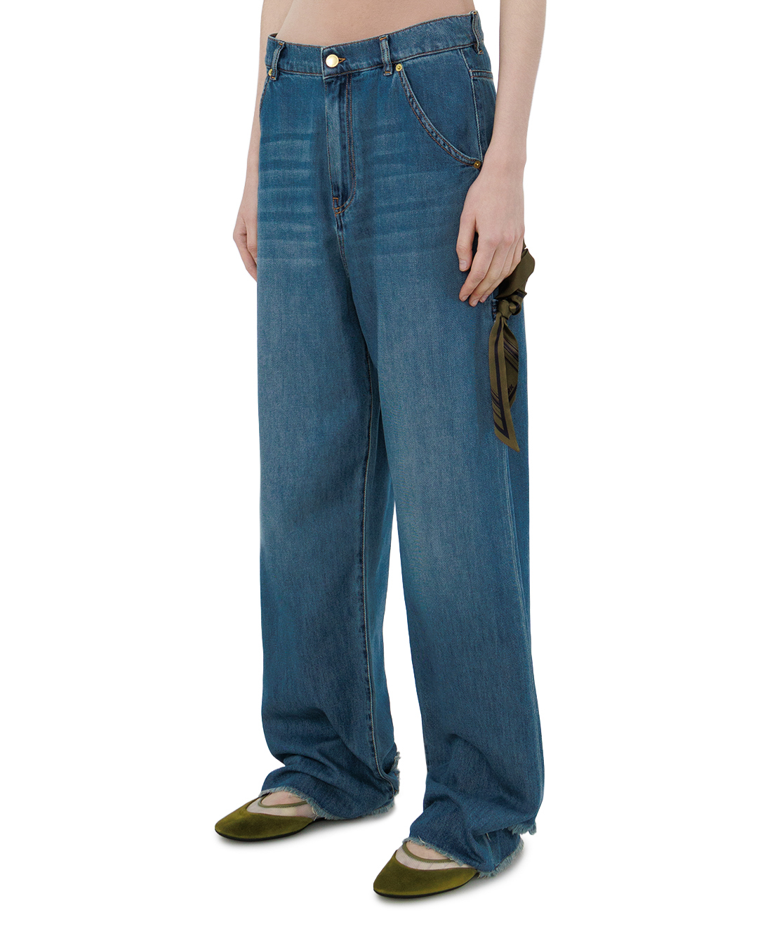 Эти джинсы — воплощение расслабленной элегантности. Широкая штанина создаёт свободный, непринуждённый силуэт, подчёркивая лёгкость движения. Классическая джинсовая расцветка придаёт образу универсальность, а низкая посадка добавляет нотку современного шика, визуально удлиняя ноги. Аккуратная обработка швов подчёркивает качество пошива, а контрастная отстрочка по боковому шву создаёт выразительный акцент, не нарушая гармонии кроя. Карманы выполнены с особой тщательностью — их форма лаконична, но функциональна. Лёгкая небрежность в обработке низа штанин добавляет изделию характер, делая образ живым и динамичным. Такой фасон станет идеальной основой для стильных композиций, сочетая комфорт и утончённую эстетику.