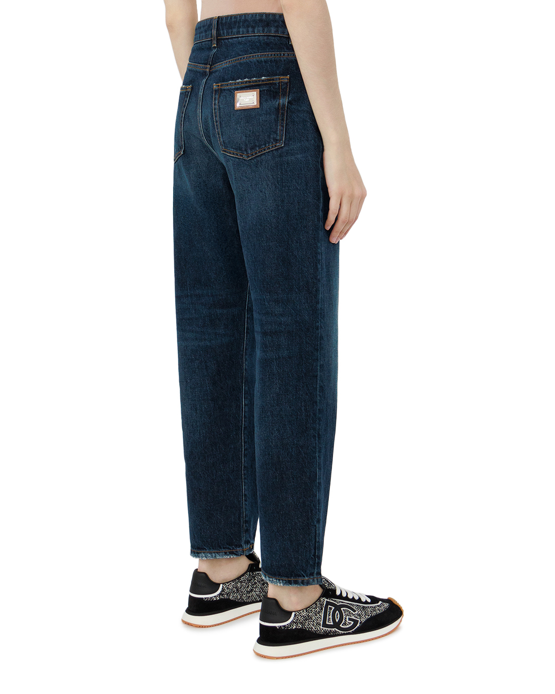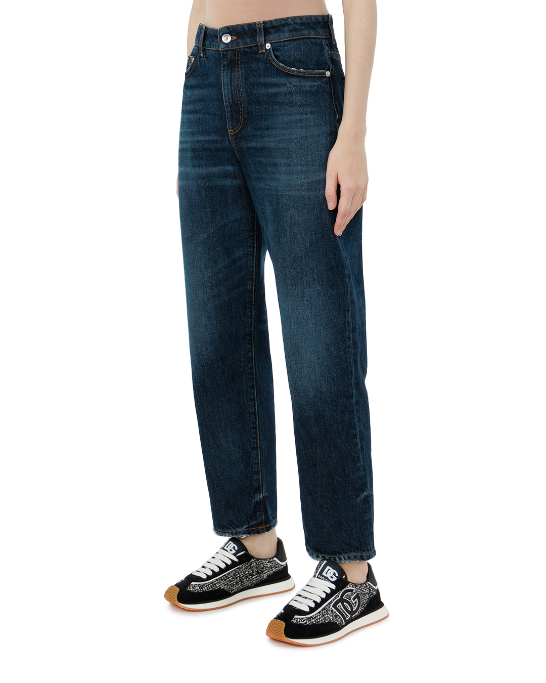 Эти стильные джинсы в насыщенном темно-синем оттенке воплощают в себе классическую эстетику денима с современным прочтением. Прямой крой создает элегантный силуэт, акцентируя внимание на естественных линиях фигуры и обеспечивая максимальный комфорт. Высокая посадка обеспечивает универсальность в сочетании с разными топами, добавляя стройности образу и подчёркивая талию. Потертости на бедрах и коленях придают джинсам эффект слегка винтажного шарма, внося элемент динамичности и глубины в дизайн. Отделка контрастной строчкой выделяет конструктивные линии и подчеркивает высокое качество исполнения. Классическое расположение пяти карманов сохраняет функциональность, а металлическая фурнитура добавляет акцент на изысканные детали. Низ джинсов выполнен в традиционном стиле, что позволяет создать лёгкий и утонченный образ. Эти джинсы станут базовым элементом гардероба, легко сочетаясь с повседневными и более изысканными элементами одежды, и станут незаменимой деталью для создания актуальных луков.