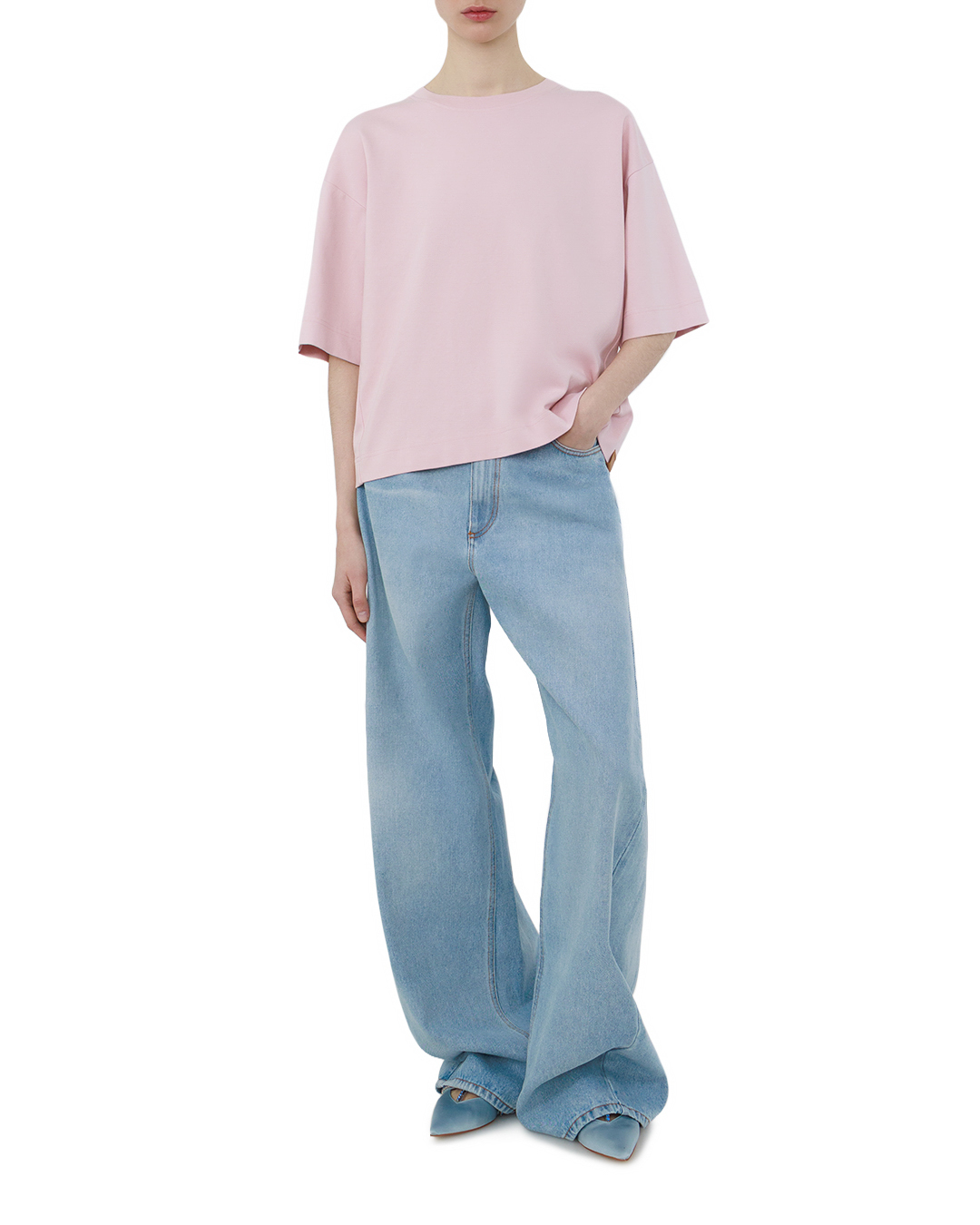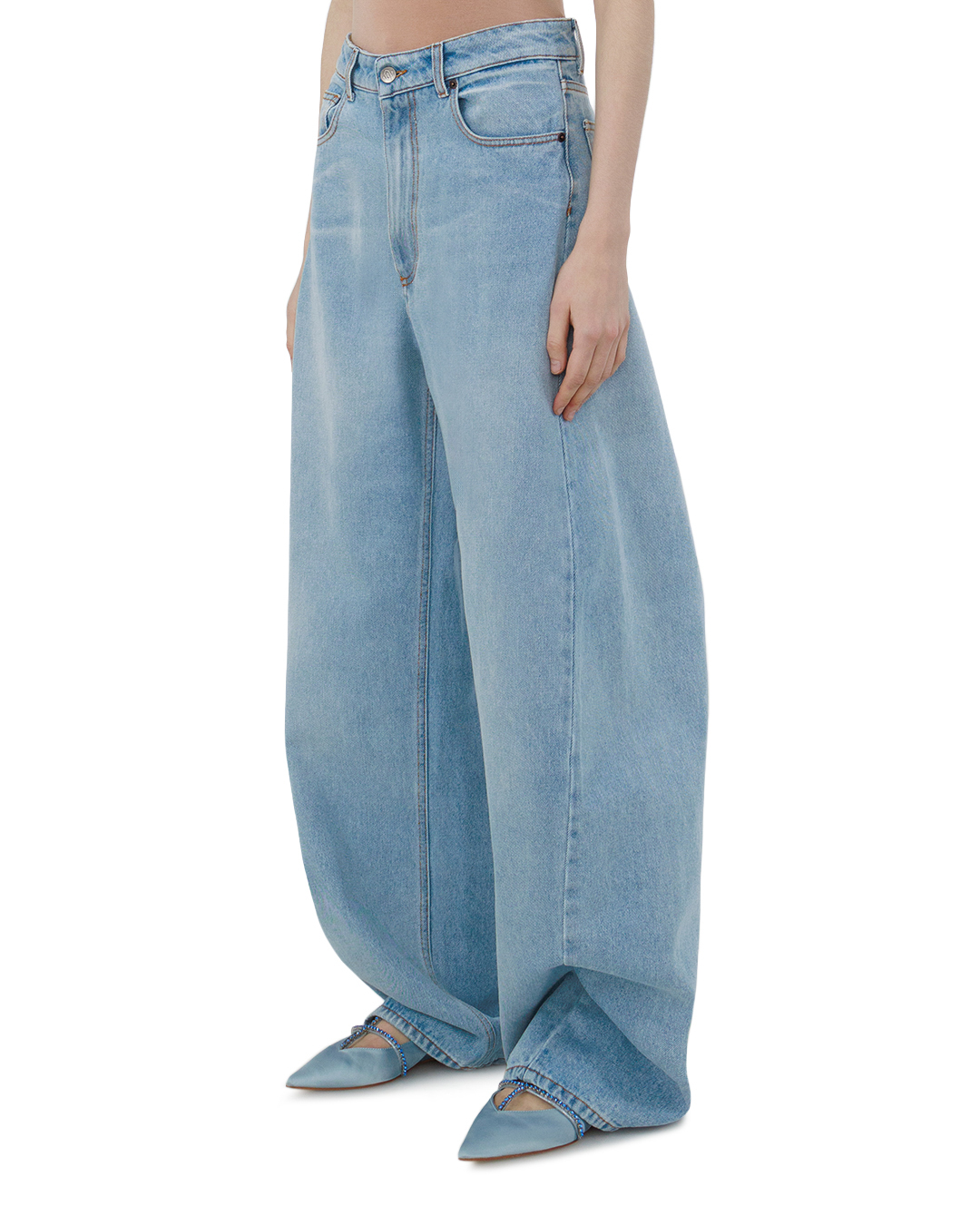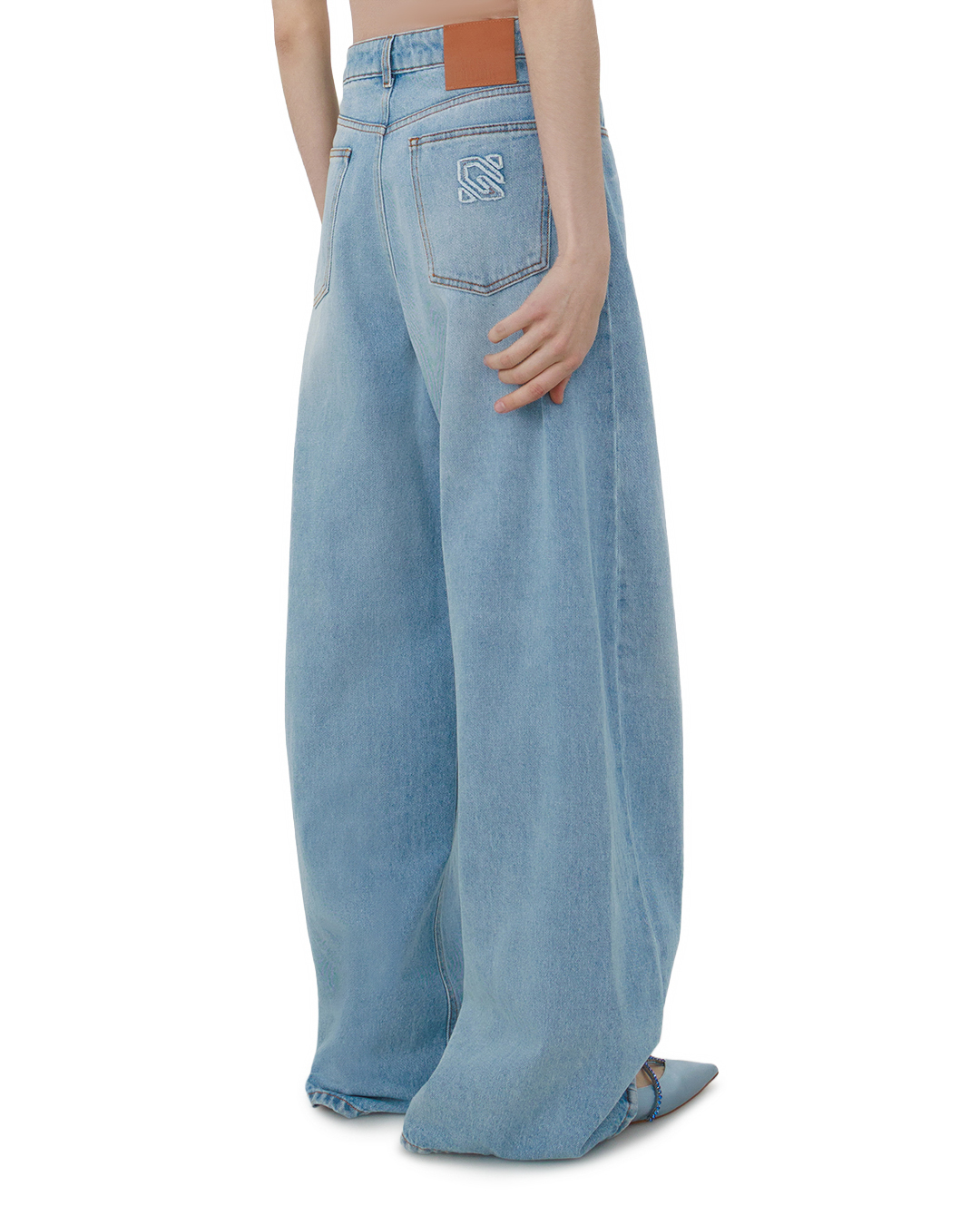 Эти светло-голубые джинсы — воплощение современной элегантности. Свободный, слегка расклёшенный крой создаёт расслабленный, но стильный силуэт, подчёркивая индивидуальность образа. Высокая посадка лаконично акцентирует талию, придавая фигуре гармоничность. Классическая джинсовая строчка по швам выполнена контрастной нитью, добавляя изделию выразительности без излишней вычурности. Карманы оформлены с особой тщательностью: чёткие контуры и аккуратная обработка краёв подчёркивают внимание к деталям. Завершают образ лаконичные застёжки и петли, выполненные в едином стиле с общим дизайном. Такая модель станет универсальной основой гардероба: она легко сочетается с разными стилистическими решениями — от лаконичных топов до объёмных свитеров, позволяя создавать образы с характером.