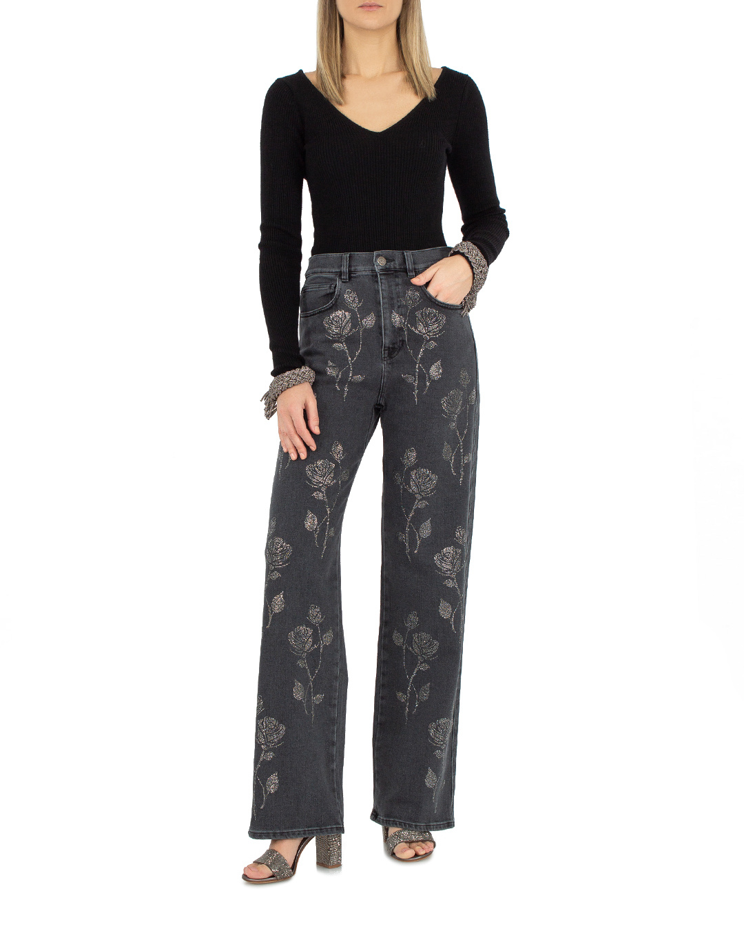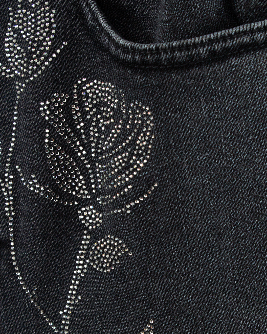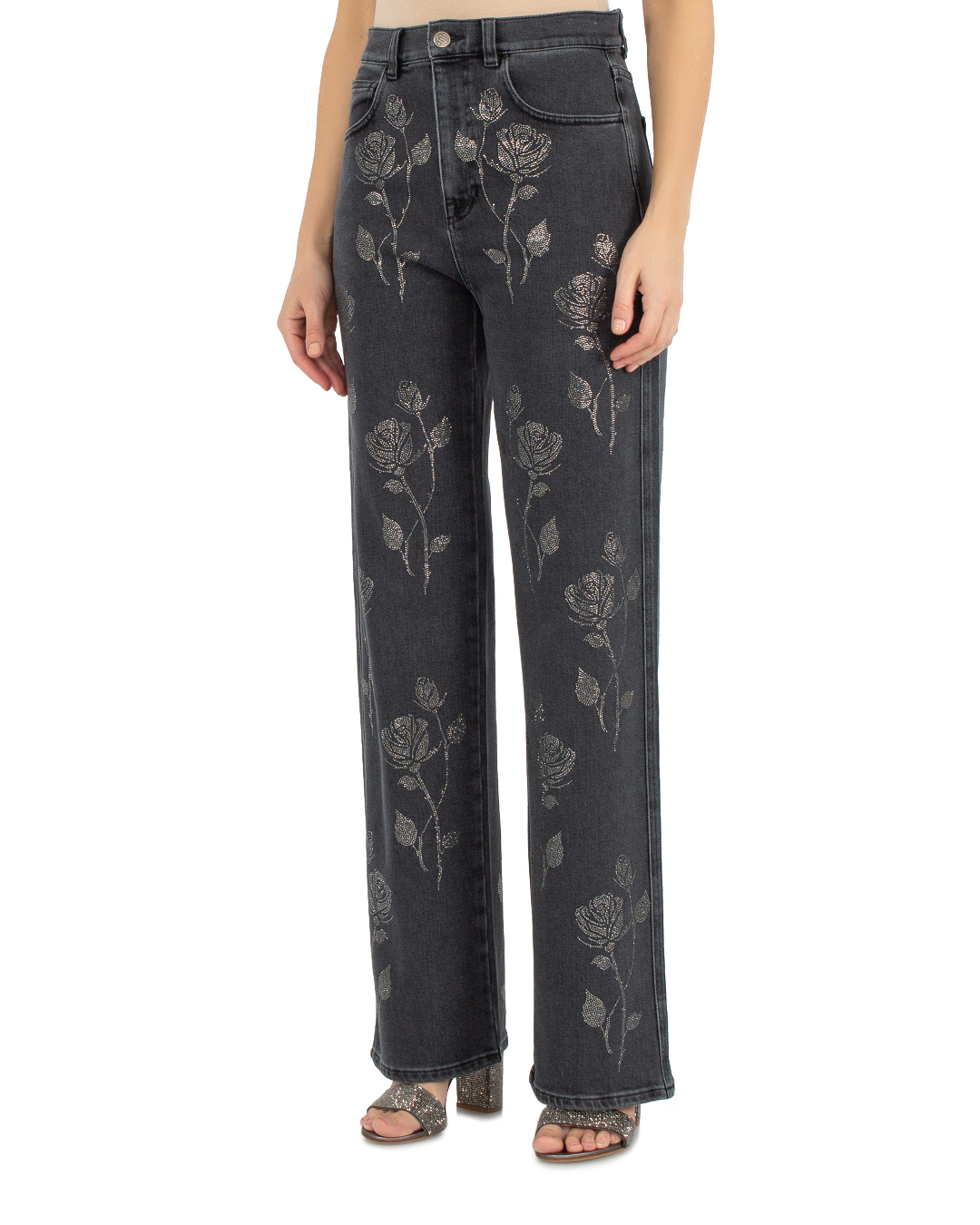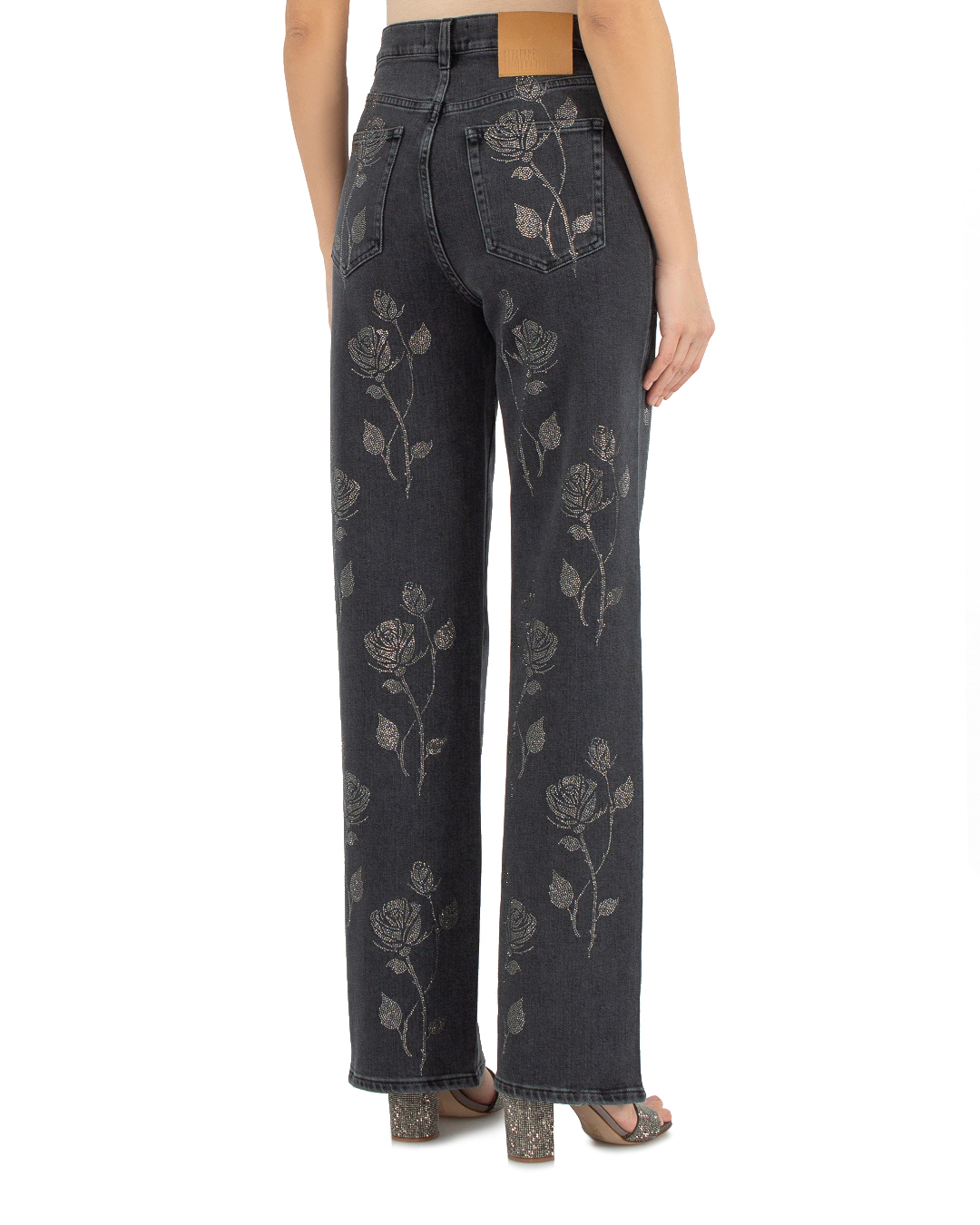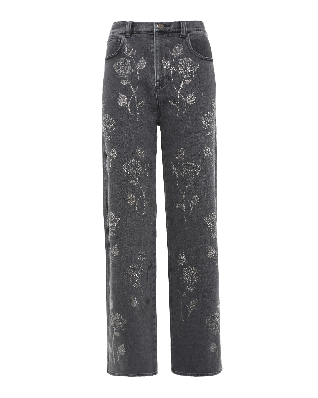 Джинсы Giuseppe Di Morabito из плотного хлопкового денима с цветочным узором из кристаллов. Изделие прямого силуэта с высокой посадкой на талии и застежкой на молнию и пуговицу.