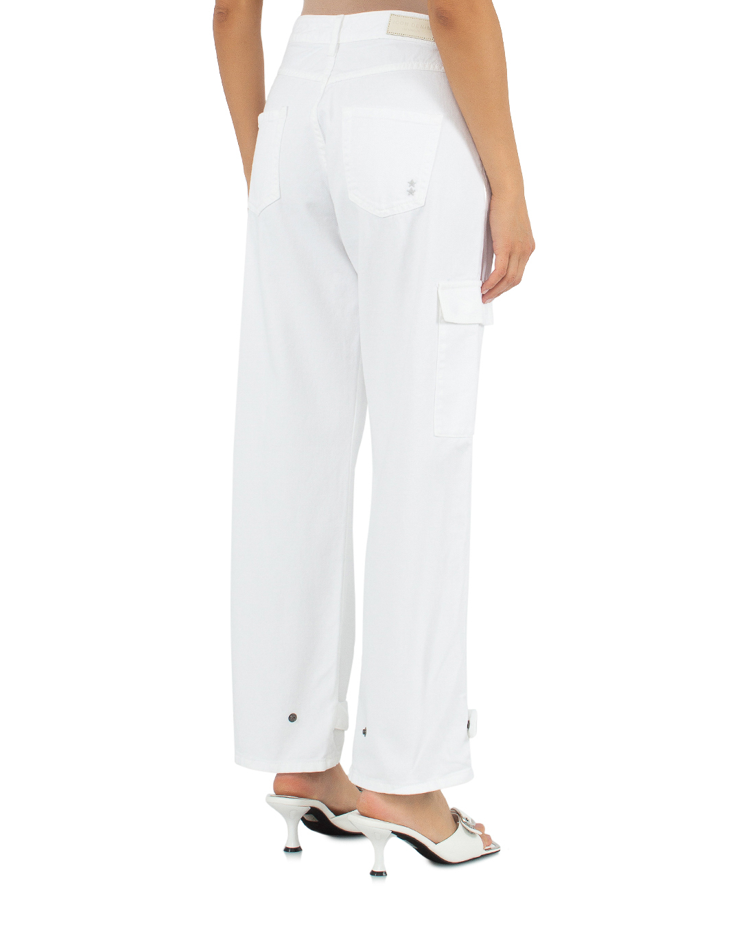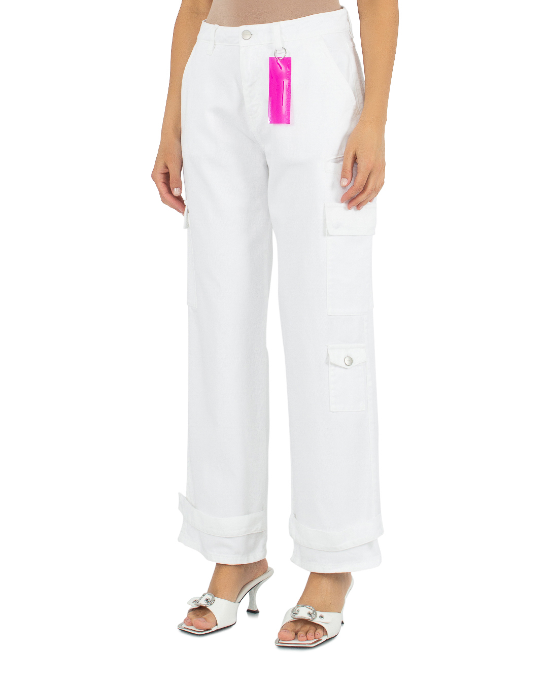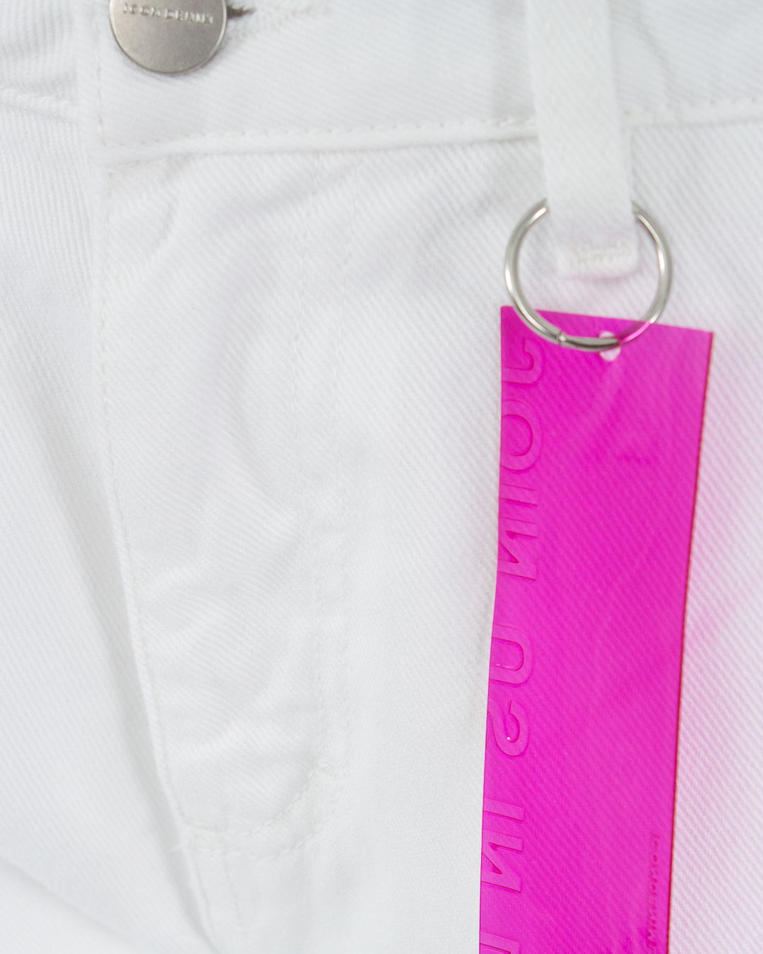 Джинсы ICON DENIM из плотного хлопкового денима. Модель прямого силуэта с широкими брючинами и накладными карманами. Высокая посадка на талии с застежкой на молнию и пуговицу дополнена пятью карманами. Яркая съемная деталь.