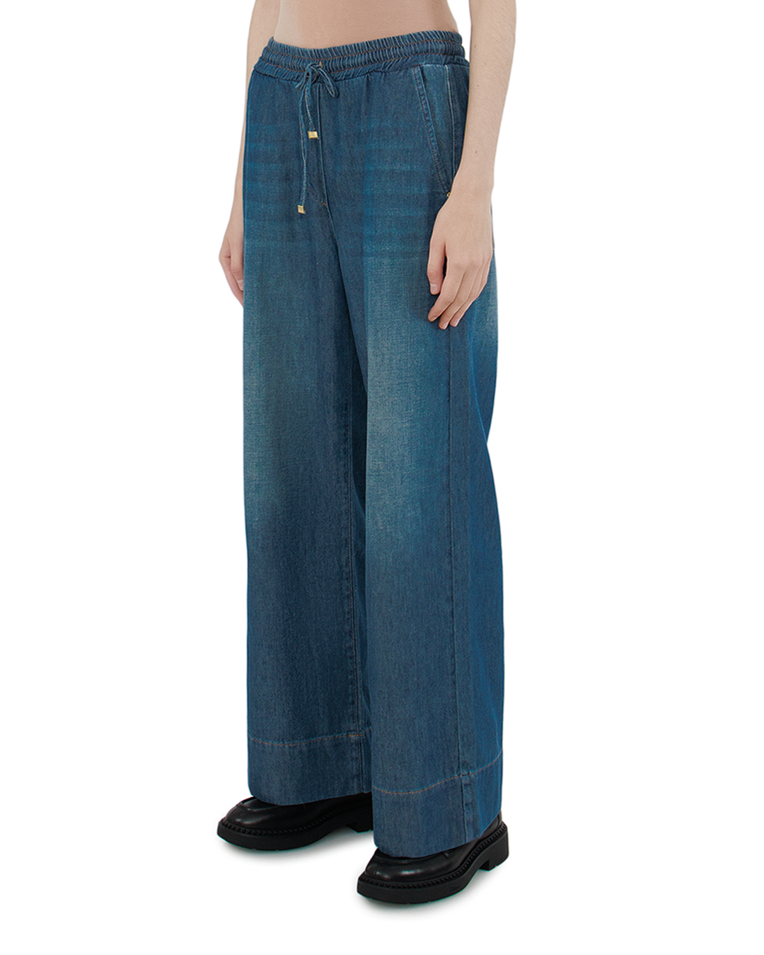 Эти джинсы воплощают идеальную гармонию между комфортом и стилем, предлагая современное прочтение классического денима. Выполненные из высококачественной ткани, они представляют собой признанный стандарт повседневной моды. Широкие штанины придают расслабленный и динамичный силуэт, обеспечивая свободу движений и непринужденный стиль. Эластичная талия с завязками не только добавляет функциональности, но и позволяет адаптировать посадку в соответствии с индивидуальными предпочтениями. Металлические наконечники на шнурках служат стильным акцентом, придающим изделию облик завершенности. Детали отделки включают аккуратные швы и легкое выцветание на бедрах, добавляющие нотку винтажности и глубины текстуре. Эта модель джинсов отлично подойдет как для городских прогулок, так и для более неформальных встреч, идеально сочетаясь с футболками, блузами или свитерами, создавая многоликие образы на все случаи жизни.