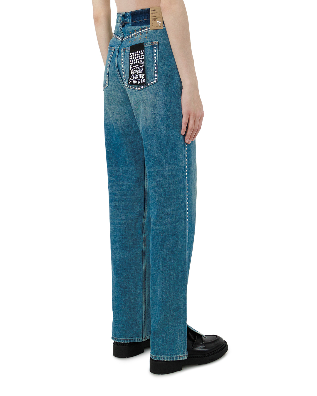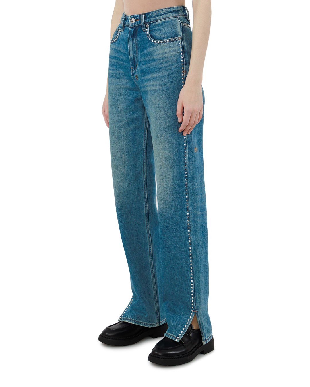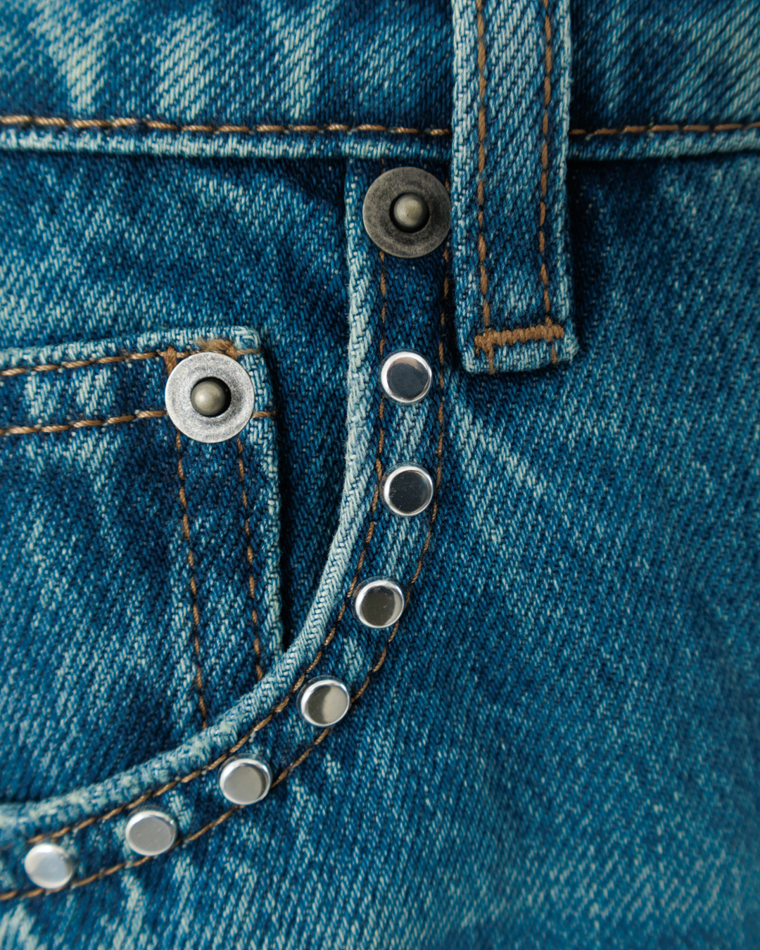 Эти джинсы представляют собой гармоничное сочетание классики и современного стиля, что делает их актуальными в любом сезоне. Выполненные из плотного денима с легким эффектом выстиранного материала, они придают образу непринужденную и стильную нотку. Ультрамодный прямой крой этих джинсов обеспечивает комфорт и универсальную посадку, идеально выражая современную эстетику. Высокая талия подчеркивает линию фигуры и добавляет элегантности всему силуэту. Детали отделки заслуживают особого внимания: по бокам деликатно расположены металлизированные заклепки, которые добавляют немного панковского шика и делают джинсы визуально интереснее. Небольшие разрезы внизу штанин создают игривую динамику и позволяют продемонстрировать стильную обувь. Эти джинсы легко становятся ключевым элементом гардероба, идеально сочетаясь как с повседневными футболками, так и с изысканными блузками, сопровождая вас в разных жизненных ситуациях с неизменным стилем.