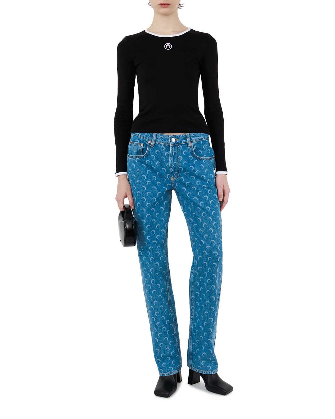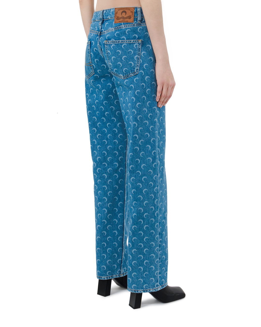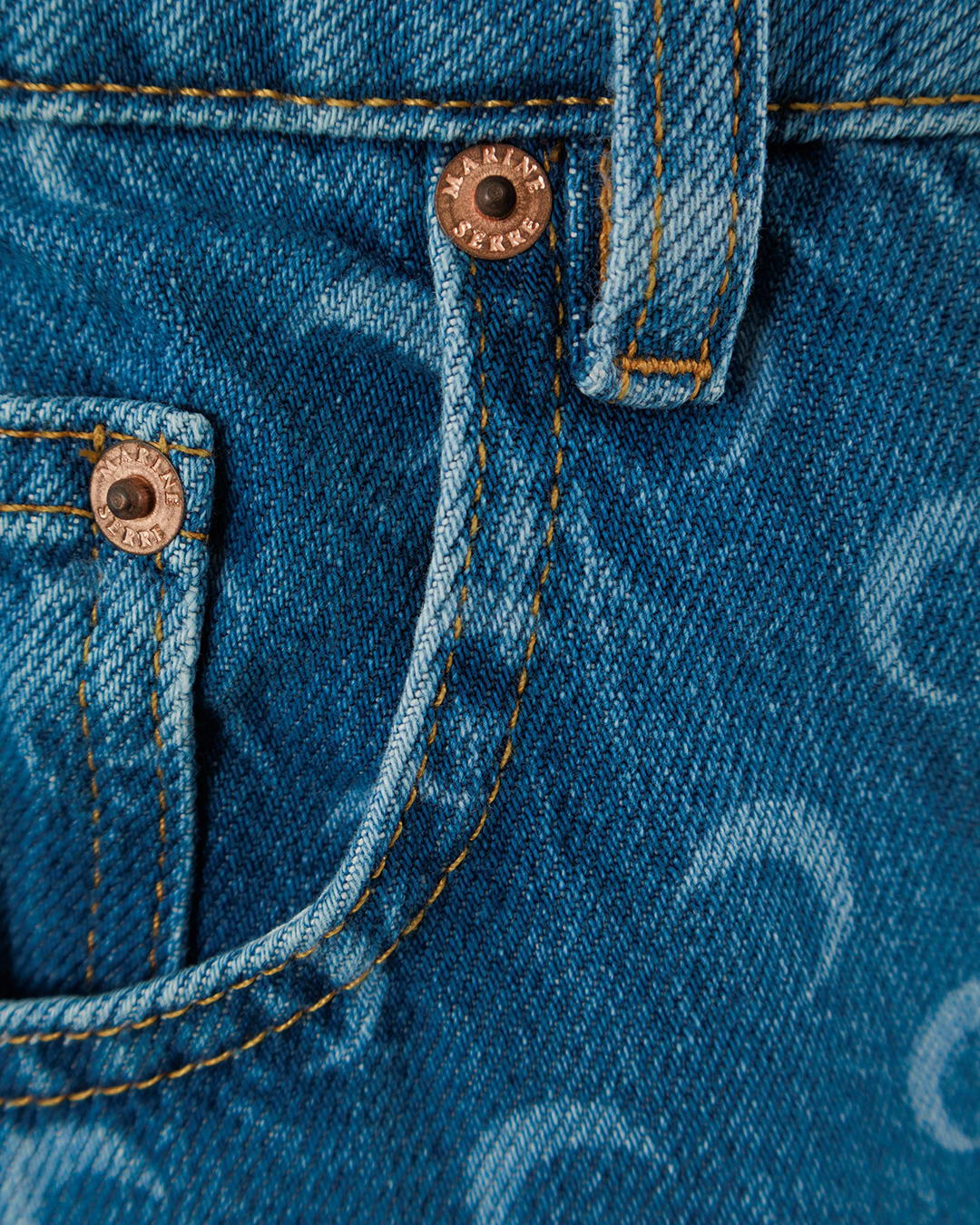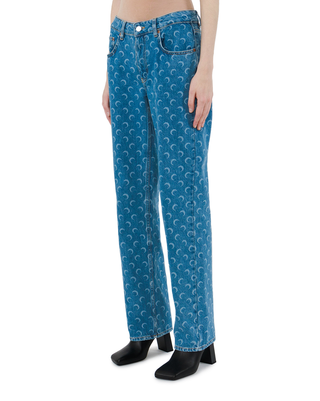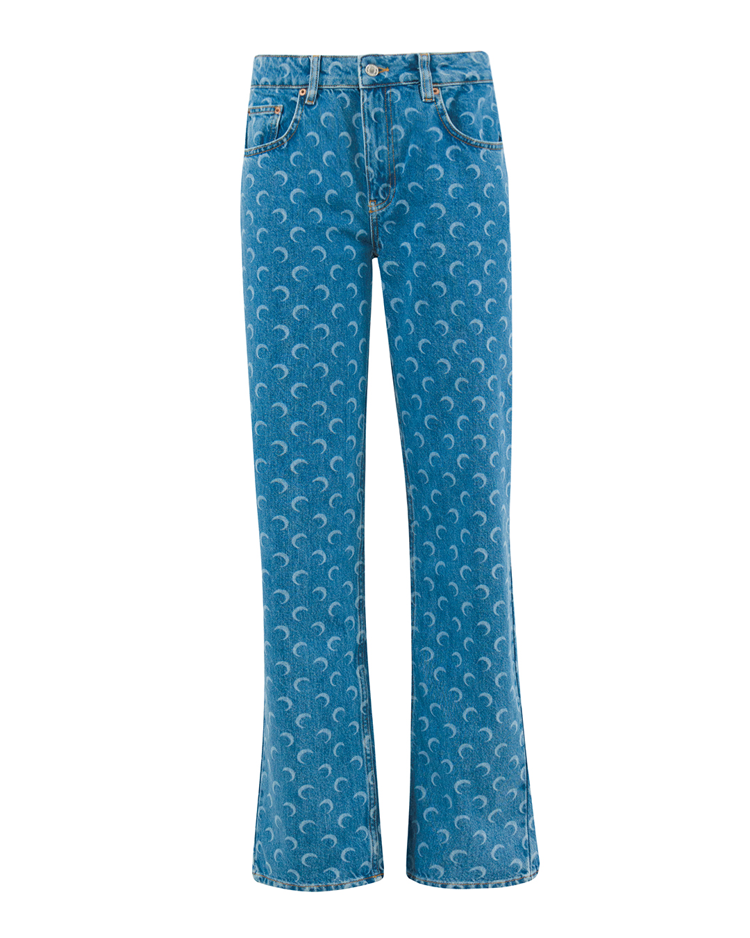 Эти джинсы представляют собой идеальный баланс между классикой денима и современным дизайном, привнося вобраз легкость и изысканность. Выполненные из прочной ткани, они сохраняют форму и обеспечивают комфорт при длительном ношении. Приталенная посадка и прямые брючины создают элегантный силуэт, который выгодно подчеркивает фигуру. Основой изделия служит насыщенный синий деним, украшенный модным узором в виде полумесяцев, что добавляет динамики и оригинальности. Традиционные элементы, такие как классический пятикарманный крой и застежка на металлическую пуговицу, сочетаются с современными нюансами в отделке. Контрастная строчка акцентирует внимание на швах, придавая изделию завершенность и стильность. Функциональные элементы включают в себя усиленные заклепки и прочный пояс с петлями для ремня, что обеспечивает практичность. Такие джинсы легко адаптируются к любым стилям, будь то повседневный образ с футболкой или более формальный с блузкой или пиджаком.
