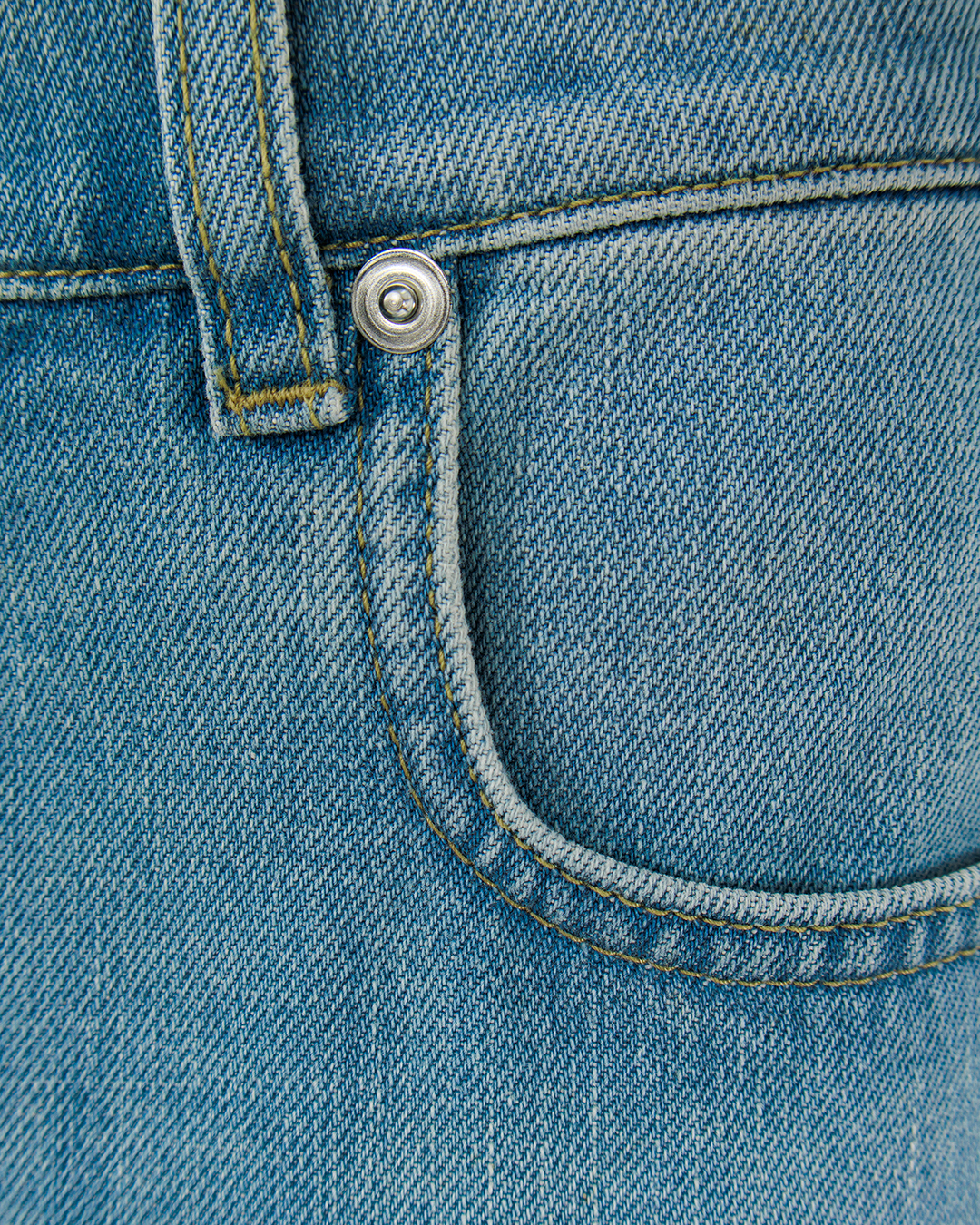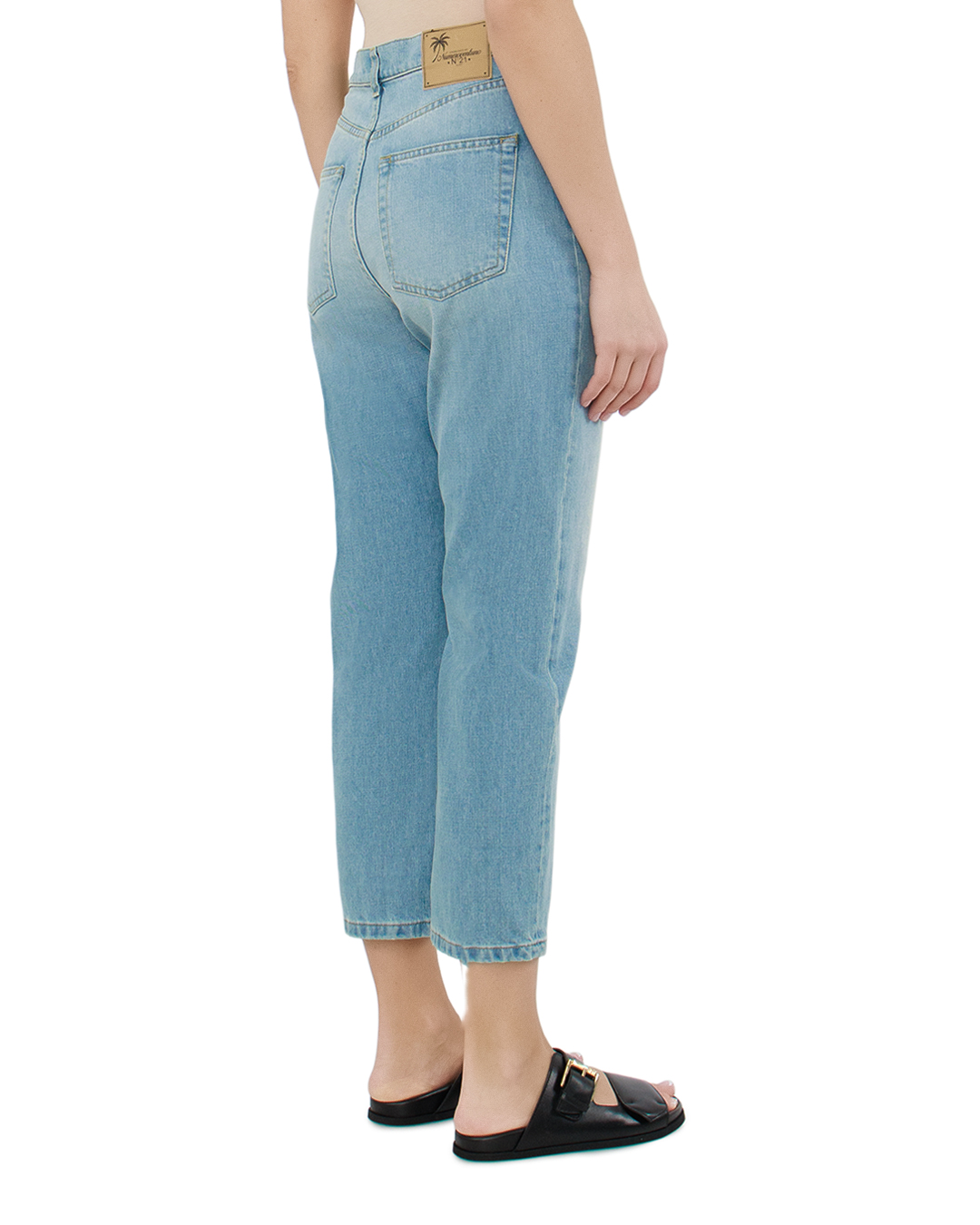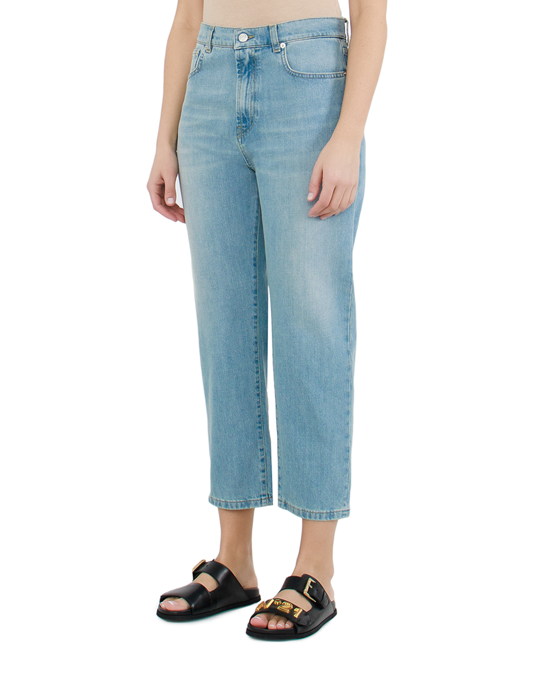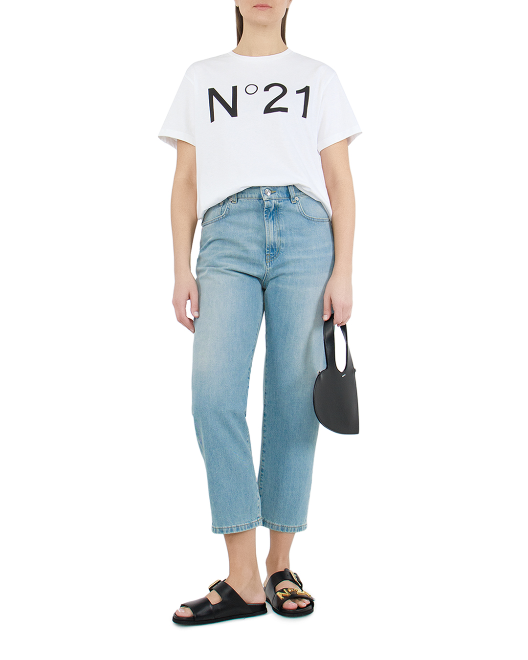 Укороченные джинсы №21 воплощают в себе стильный минимализм и повседневную элегантность, ставшие эталоном современной моды. Светло-голубой деним добавляет свежести и легкости, а прямой крой подчеркивает свободу и непринужденность образа. Посадка средней высоты акцентирует талию и создает баланс между классикой и современностью. Укороченная длина открывает щиколотки, добавляя джинсам актуальности и позволяя легко сочетать их как с кроссовками, так и с элегантной обувью. Классическая конструкция с пятью карманами дополняется аккуратной строчкой и изящной фурнитурой серебристого цвета, которая придает джинсам утонченную изюминку. Легкий эффект потертости создает игру текстур и добавляет изделию характер. Эти джинсы идеально подойдут как для создания повседневных, так и эклектичных луков, позволяя выразить индивидуальность и быть стильным в любой ситуации.