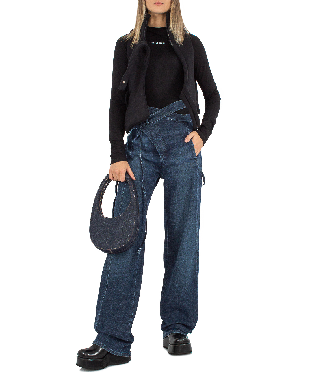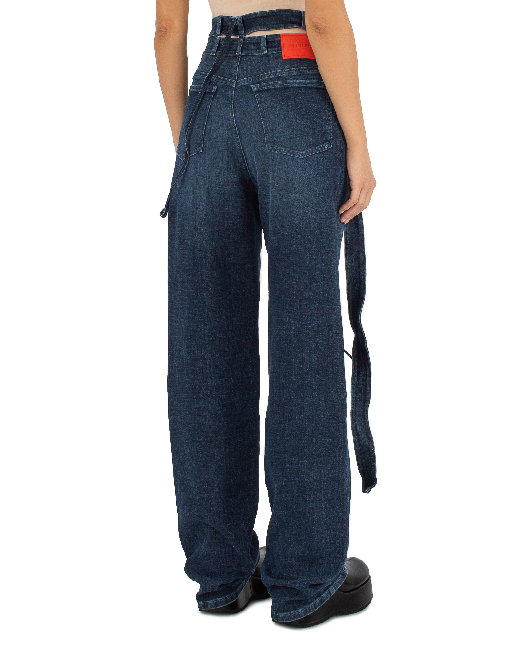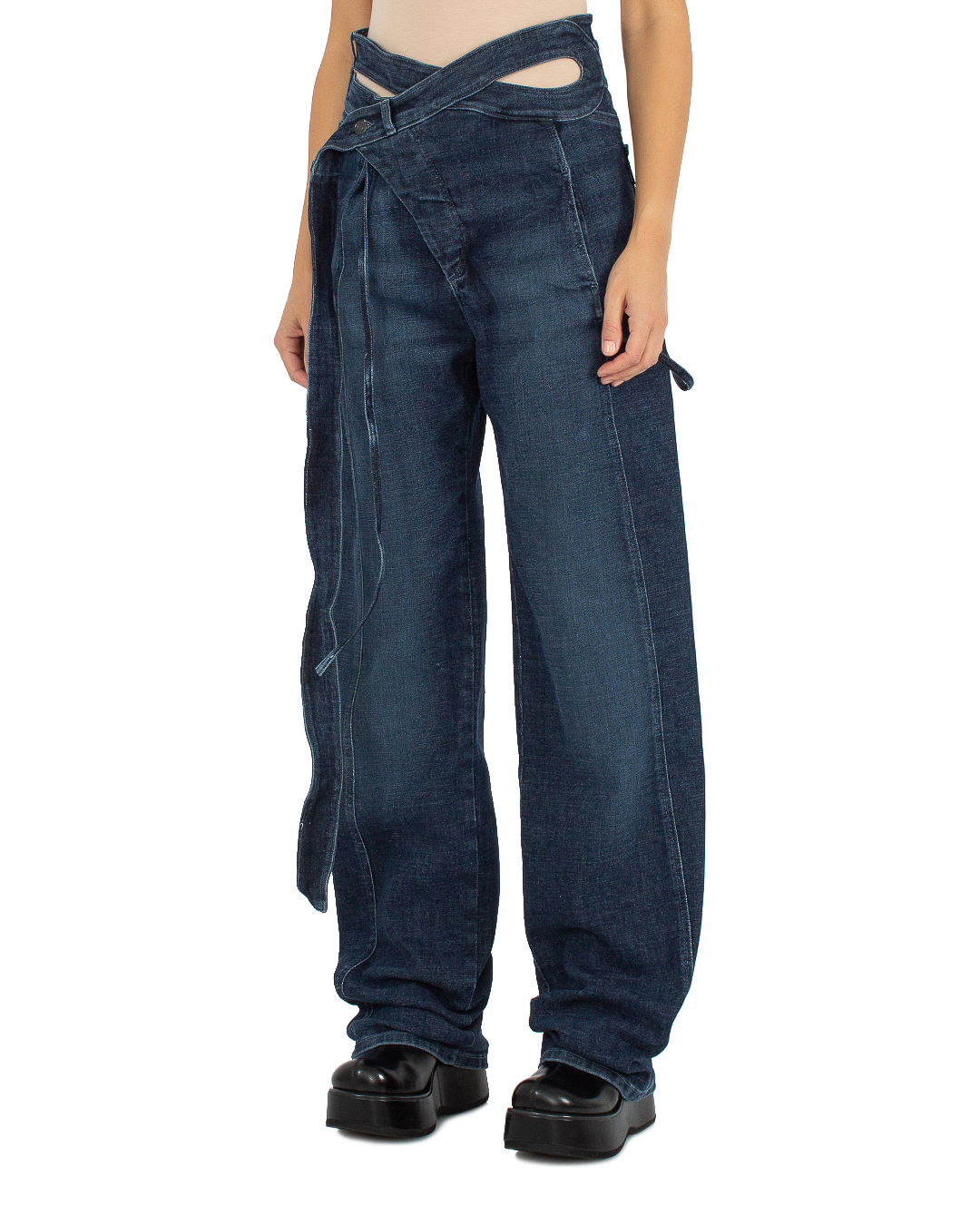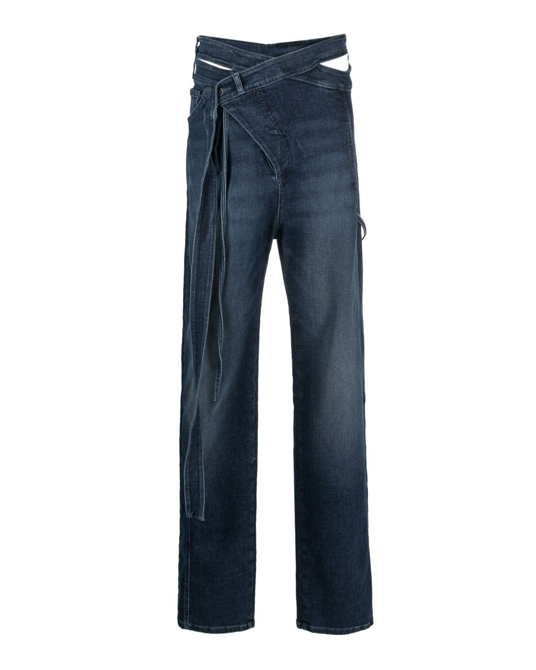 Джинсы OTTOLINGER из плотного хлопкового денима синего оттенка. Модель прямого силуэта с нестандартной линией пояса.