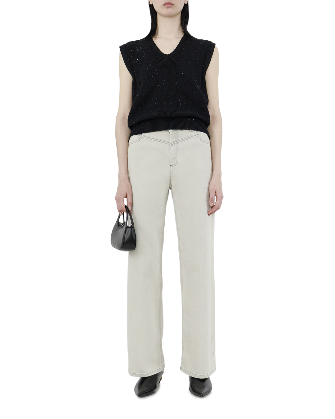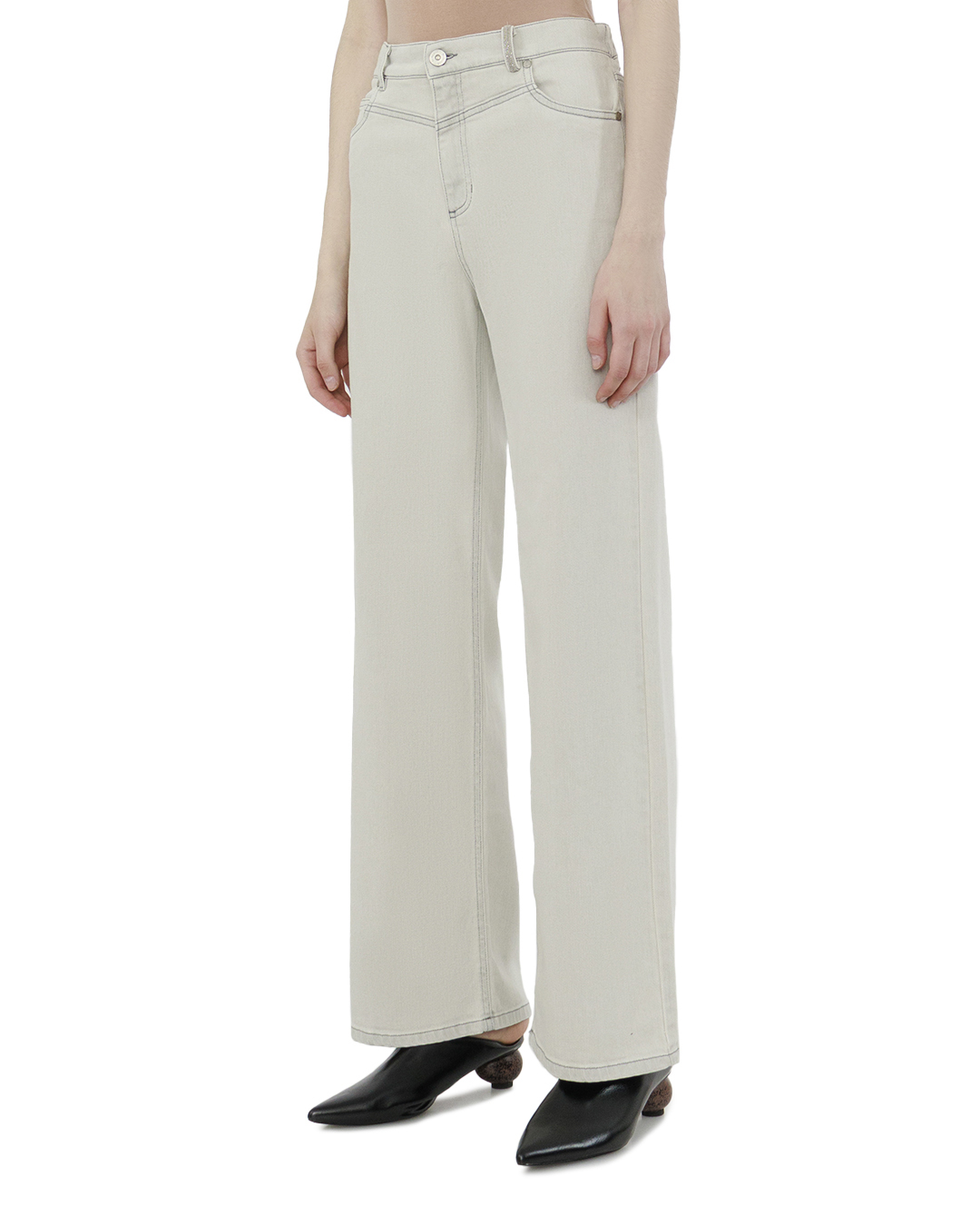 Эти джинсы представляют собой образец современной изысканности, сочетая в себе трендовый стиль и утонченную простоту. Светло-серый оттенок привносит нежность и универсальность, становясь идеальной основой для создания как повседневных, так и более изысканных ансамблей. Широкий крой штанин возвращает нас к эстетике ретро с современным переосмыслением, подчеркивая свободу движений и создавая визуально вытянутый силуэт. Высокая посадка акцентирует талию, делая образ более женственным и гармоничным. Классическая застёжка на пуговицу и молнию дополняет функциональность, а стратегически расположенные боковые и задние карманы обеспечивают практичность без ущерба для эстетики. Тонкая прострочка добавляет изделию элегантности, сохраняя единство стиля, а качественная ткань обеспечивает комфорт и долговечность. Эти джинсы идеально подойдут для комбинации с модными блузами или структурированными жакетами, позволяя обыгрывать образы в зависимости от настроения и повода.