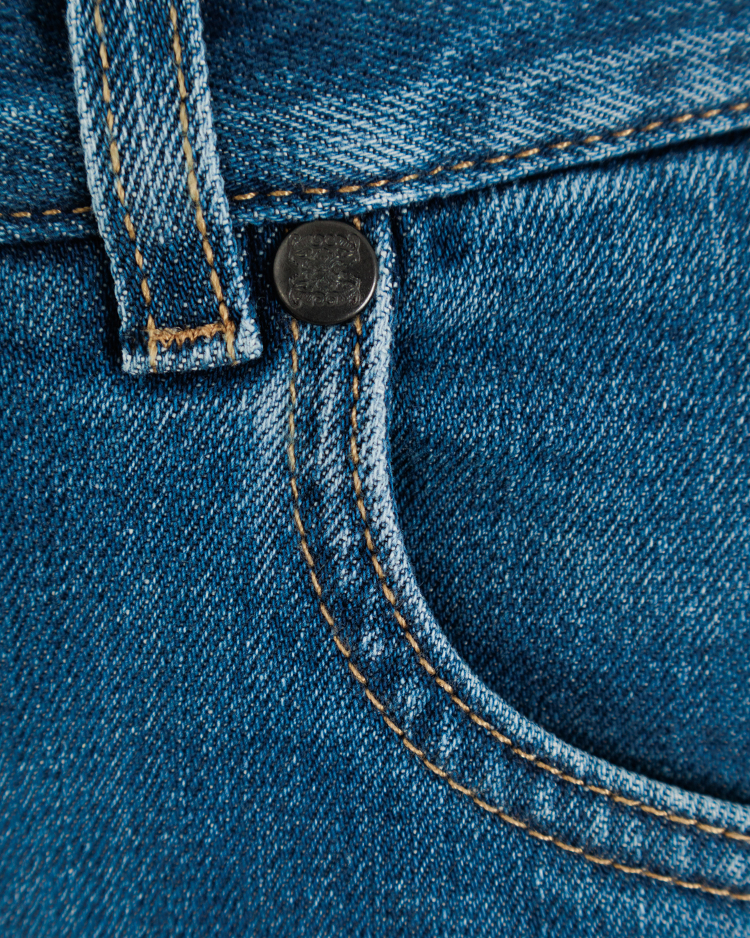 Эти джинсы воплощают в себе эстетку классического денима, обновленную для динамичного современного гардероба. Сшитые из качественной джинсовой ткани с глубоким синим оттенком и эффектом легкого выцветания, они прекрасно сочетают в себе винтажные нотки и актуальный стиль. С силуэтом свободного кроя и высокой посадкой, они подчеркивают талию и создают расслабленную и в то же время элегантную форму. Прямые штанины обеспечивают легкость движений и предлагают универсальное сочетание с любой обувью, от классических туфель до спортивных кроссовок. Детали отделки, такие как контрастная строчка по карманам и поясу, добавляют выразительности и подчеркивают мастерство исполнения. Традиционные пять карманов сохраняют практичность и аутентичность классического дизайна джинсов. Металлические элементы — пуговица и заклепки — выполнены в приглушенном тоне, что добавляет благородства общему виду. Эти джинсы идеально впишутся в повседневный гардероб, стать излюбленным выбором для создания стильных и комфортных образов.
