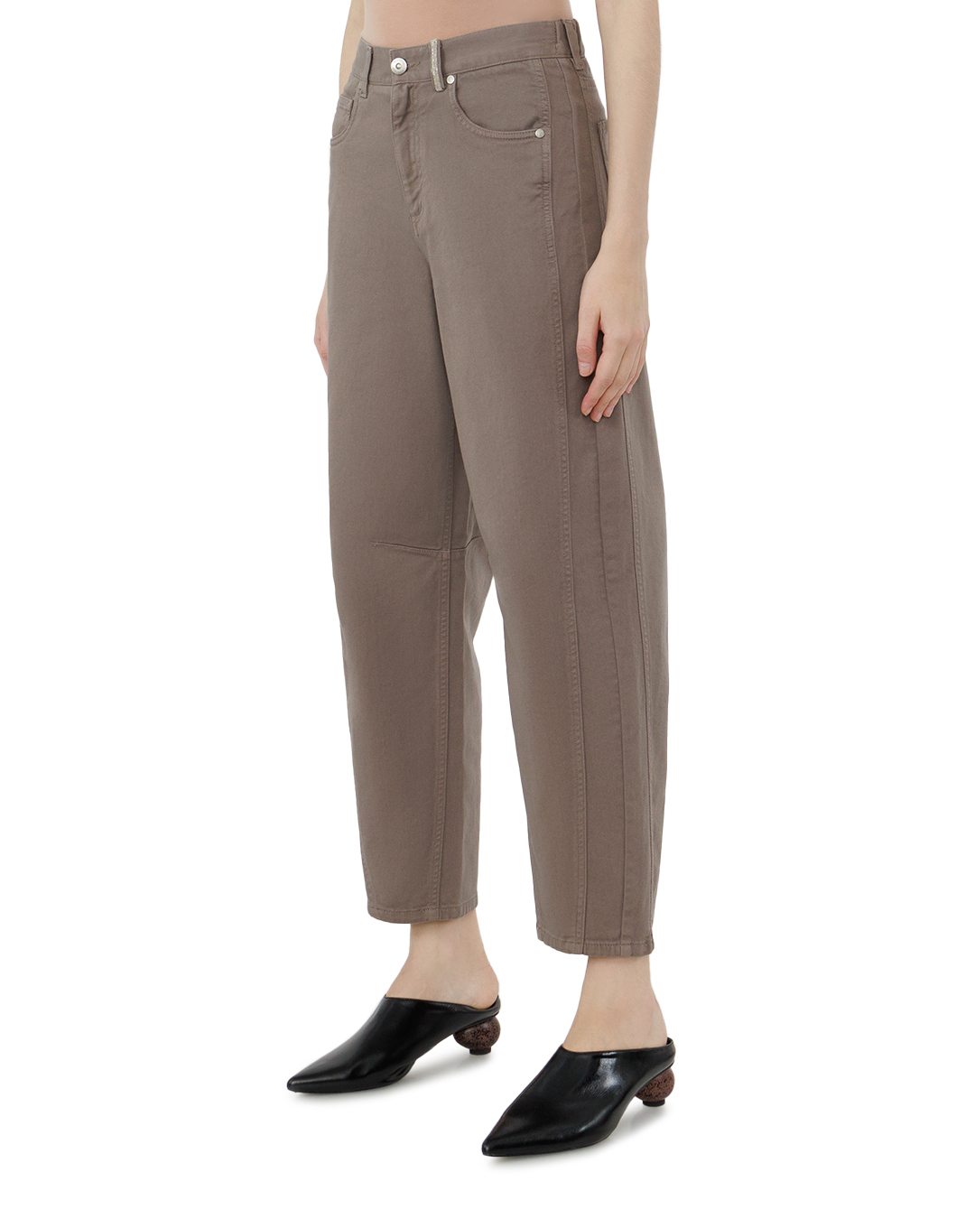 Эти джинсы представляют собой непревзойденное сочетание функциональности и изысканности. Выполненные из качественного материала в благородном тёмно-бежевом оттенке, они придают образу спокойствие и сдержанную элегантность. Силуэт средней посадки и прямые штанины создают классический и универсальный вид, обеспечивая комфорт и свободу движений. Эти джинсы идеально подходят для создания как повседневного, так и более формального образа. Отделка включает в себя аккуратную контрастную строчку, которая добавляет интересные акценты и подчеркивает внимание к деталям. Заклепки выполнены в приглушённом металлическом тоне, что придает изделию привлекательную завершенность. Традиционные пять карманов сохраняют функциональность и добавляют классическую нотку дизайну. Эти джинсы станут основой вашего гардероба, обеспечивая комфорт и стиль в любой ситуации, подчёркивая вашу индивидуальность и чувство вкуса.
