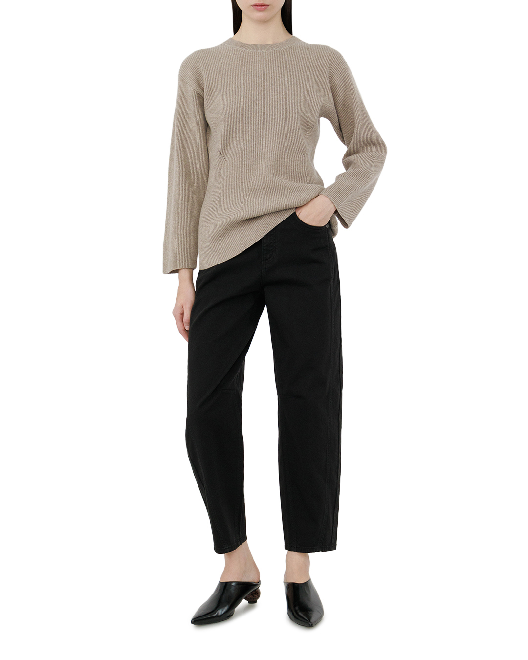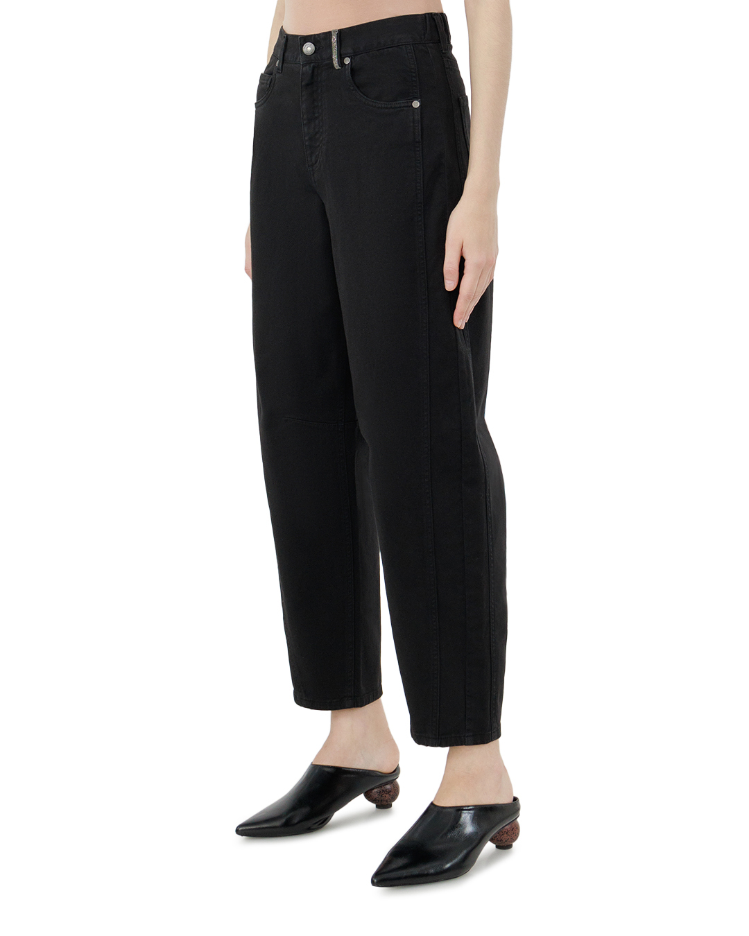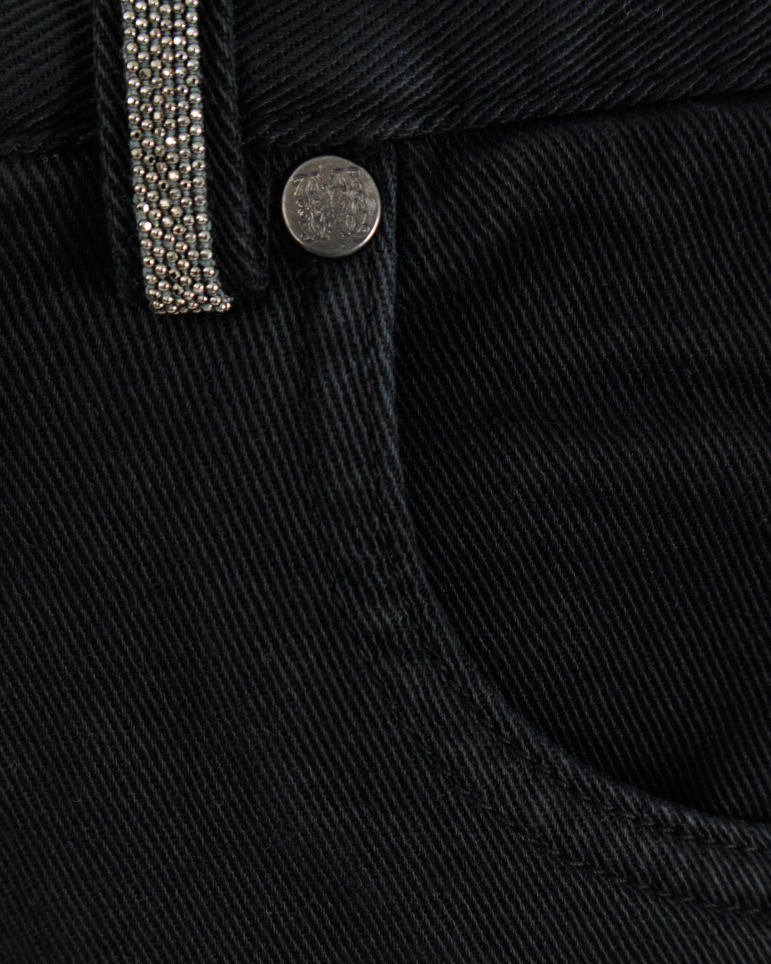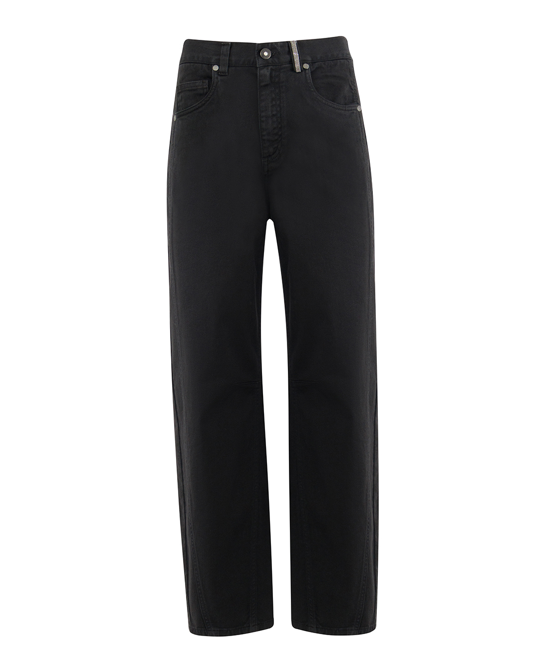 Эти черные джинсы — воплощение утонченной эстетики и универсальности. Сшитые из плотного и качественного денима, они создают мощный и современный образ, обладая при этом классическим очарованием. С высокой посадкой и прямыми штанинами, эта модель акцентирует талию и создает стройную линию, идеально подчеркивающую фигуру. Такой крой придает образу элегантность и позволяет легко адаптироваться к любому стилю — от повседневного до вечернего. Отделка выполнена с безупречным вниманием к деталям: аккуратная строчка в тон добавляет изделию изысканности, не отвлекая от строгого и лаконичного дизайна. Металлические пуговицы и заклепки гармонично вписываются в образ, придавая джинсам завершенность. Стандартные пять карманов сохраняют традиционный облик и удобство. Эти джинсы станут ключевым элементом вашего гардероба, предлагая бесконечные возможности для создания изысканных образов.