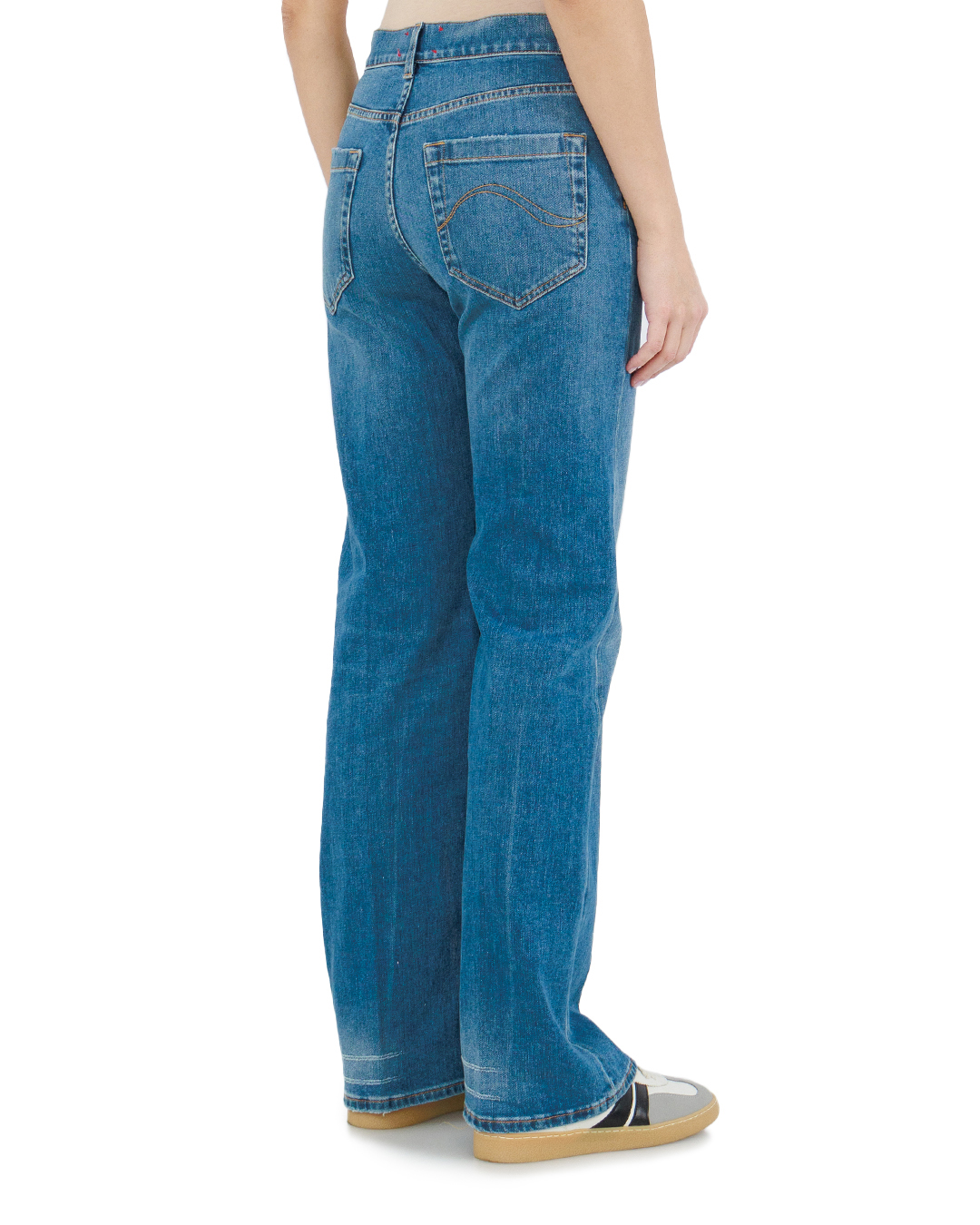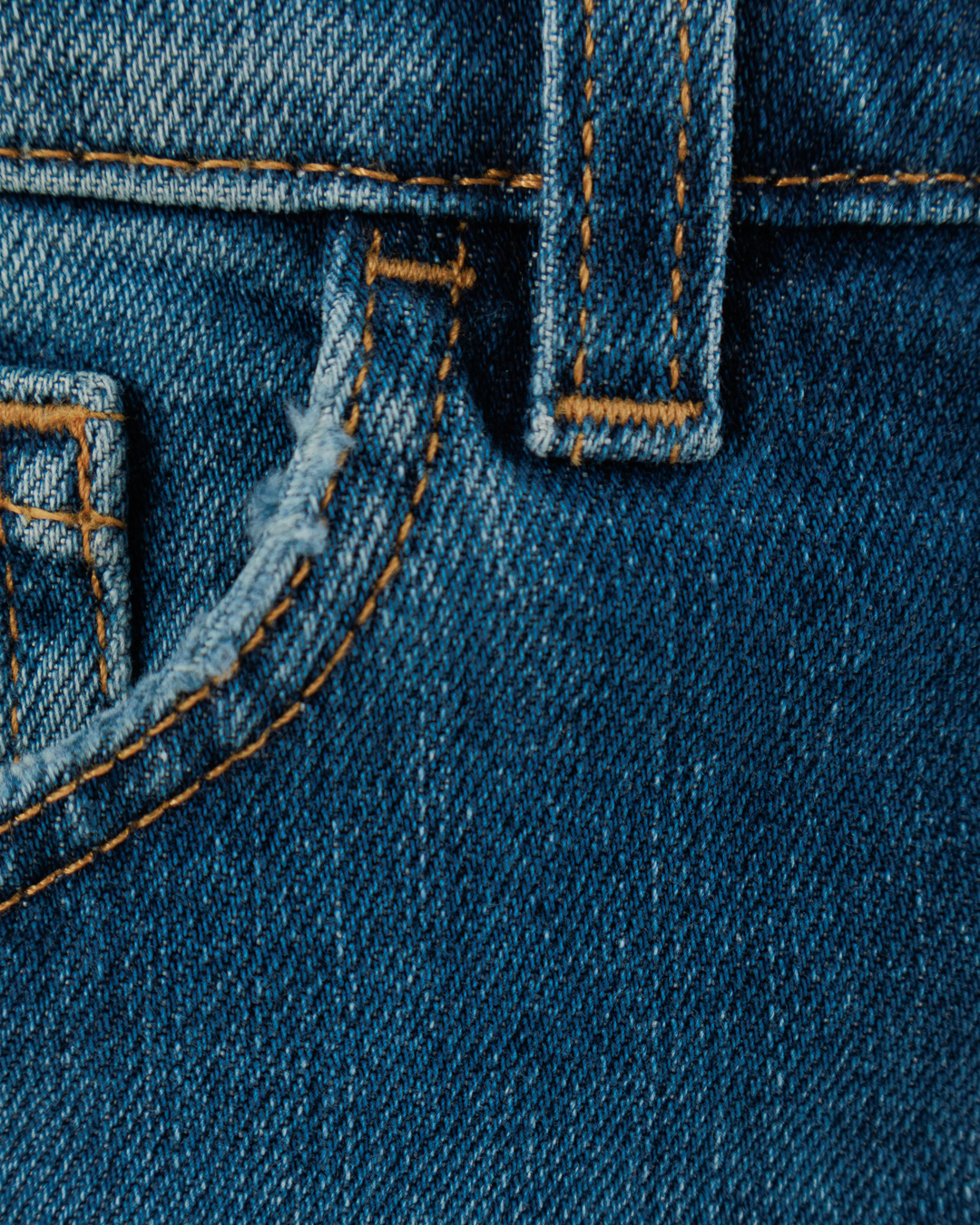 Эти джинсы — идеальное воплощение повседневной функциональности и стильной простоты. Созданные из качественного денима, они предлагают комфорт и стиль, идеально подчеркивая естественные линии тела.  Прямой крой способствует созданию элегантного и непринужденного силуэта, который остается актуальным и универсальным. Средняя посадка делает их подходящими для различных фигур и добавляет дополнительную свободу в движении.  Лёгкий эффект варки придаёт джинсам характерную текстурность и глубину цвета, создавая эффект легкой потертости, который добавляет нотку винтажного шарма и образу в целом.  Традиционные пять карманов и контрастная строчка подчеркивают классические элементы дизайна, добавляя образу завершенный и целостный вид. Металлическая фурнитура, такие как кнопки и заклёпки, усиливают прочность и придают дополнительный акцент.  Эти джинсы легко комбинируются с разными элементами гардероба, позволяя создавать как кэжуальные, так и более формальные образы, добавляя в них нотку динамичного и современного стиля.