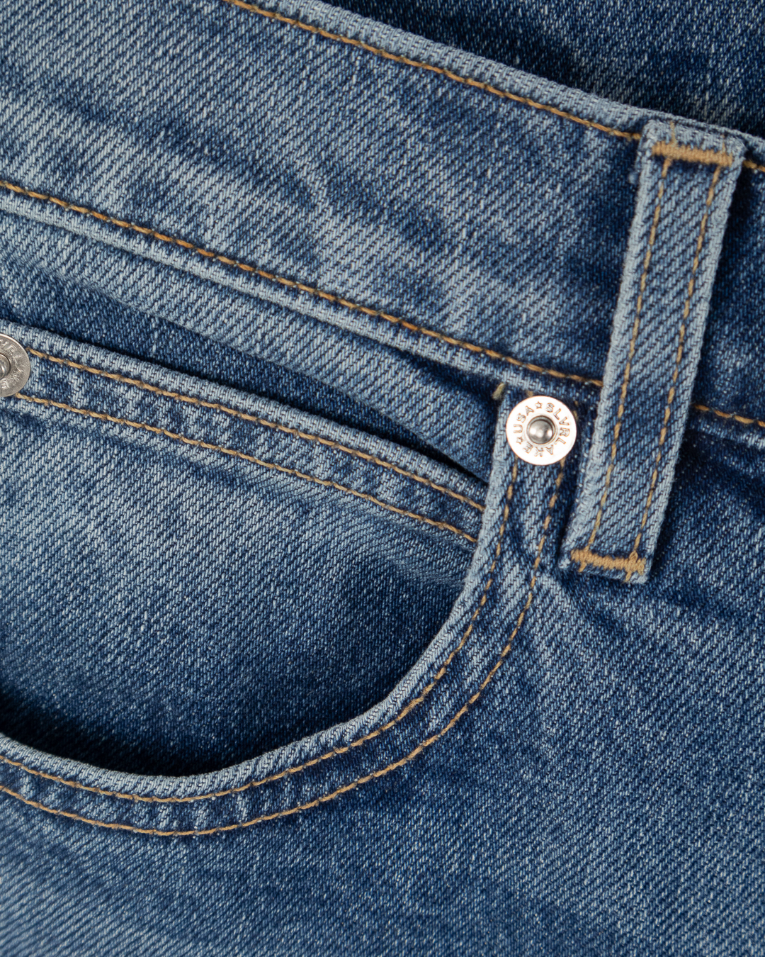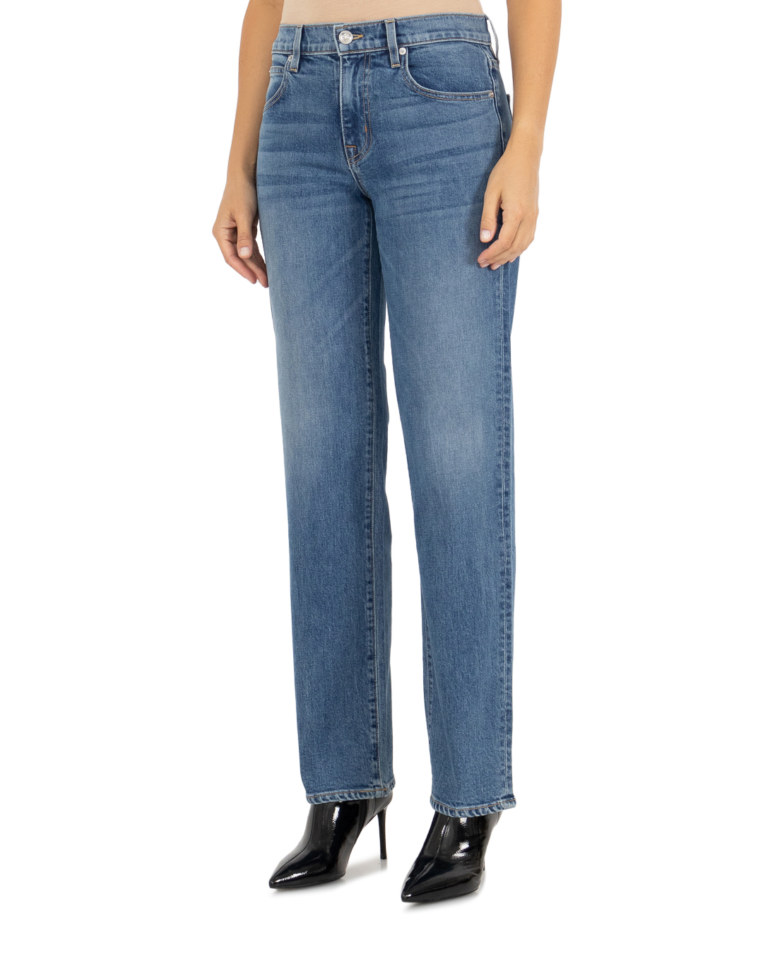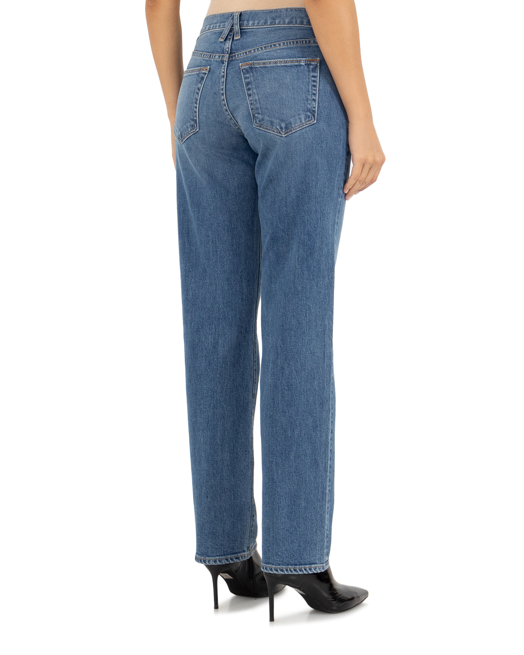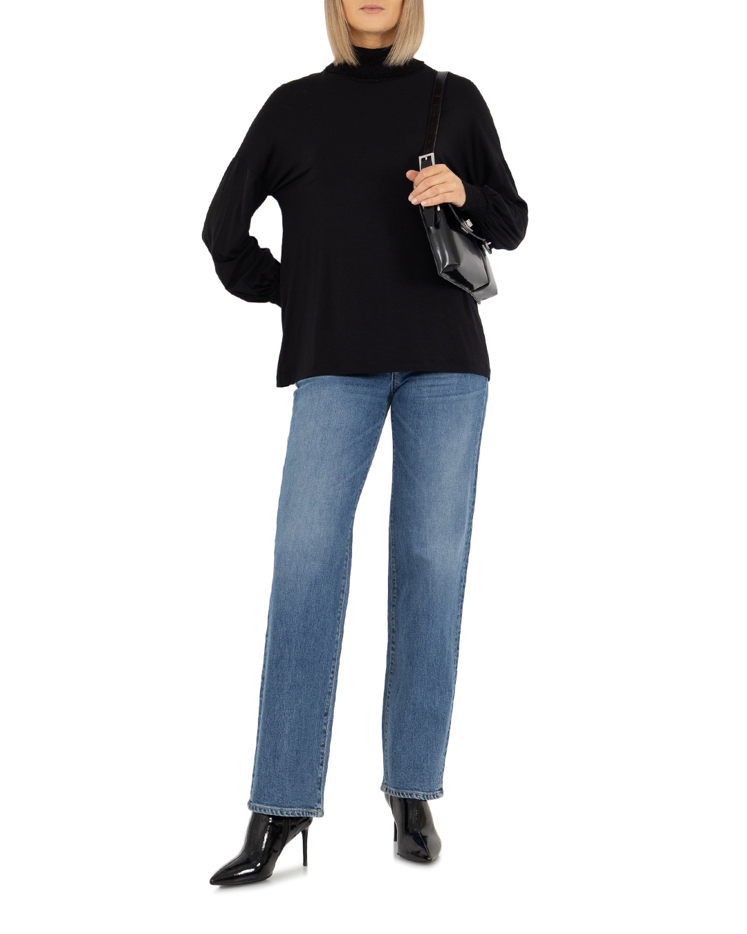Джинсы прямого кроя с классическими пятью карманами. Пояс с шлевками для ремня, застежка на молнию и пуговицу. Такая модель будет прекрасно сочетаться в классическом стиле с топом и жакетом