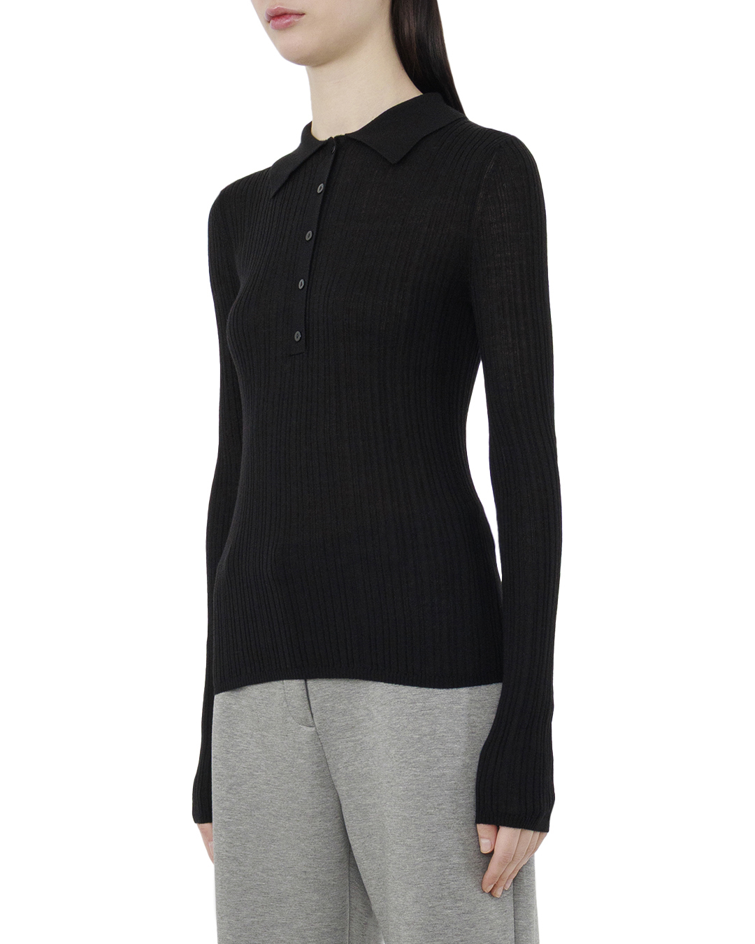 Этот джемпер воплощает в себе элегантность и минималистичный шик. Выполненный из деликатного трикотажа, он обтекает фигуру, подчёркивая её грациозность и создавая утончённый силуэт. Воротник-поло придаёт модели классический и в то же время современный вид, плавно сочетаясь с планкой на пуговицах, что позволяет регулировать глубину декольте, добавляя универсальность и стиль. Тонкая ребристая текстура дополняет изделие визуальной динамикой и добавляет изысканности, создавая интересный визуальный эффект. Длинные рукава подчеркивают линии рук и создают завершённый и собранный образ. Этот джемпер идеально сочетается как с классическими брюками, так и с джинсами, добавляя нотки стиля в ваш повседневный или офисный гардероб.