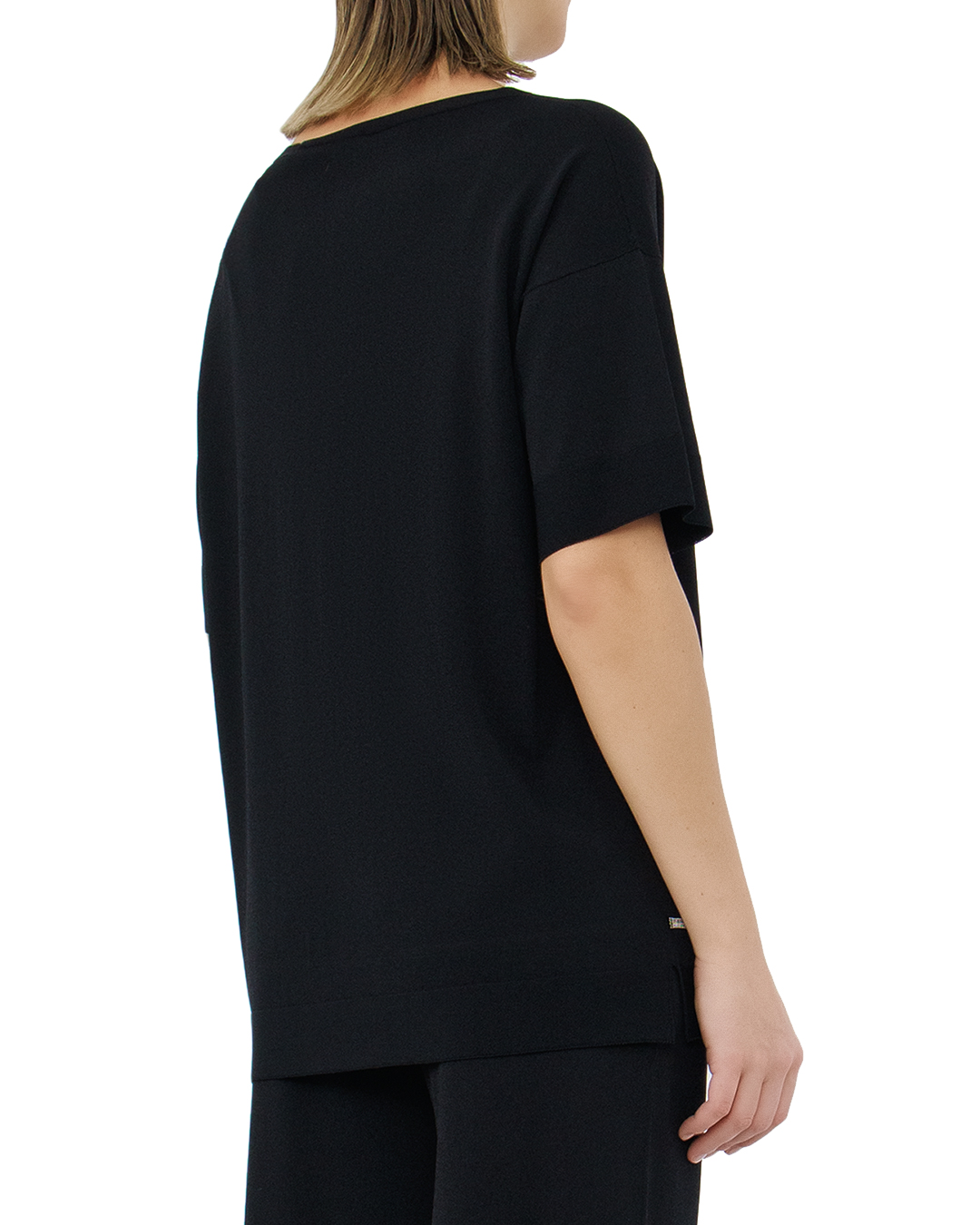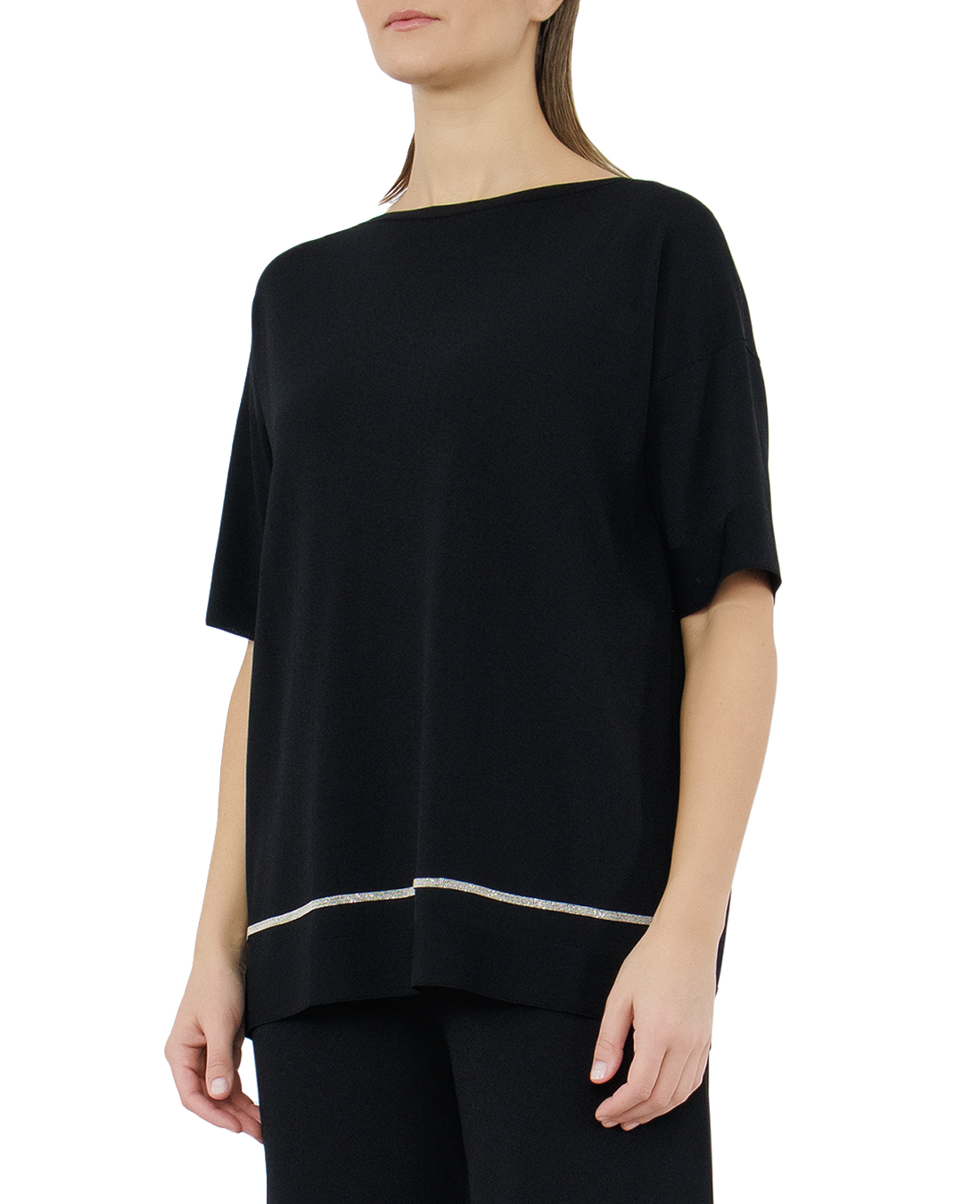 Этот джемпер от D.EXTERIOR — воплощение элегантного минимализма и современной утончённости. Изделие выполнено в глубоком чёрном цвете, что делает его универсальным и изысканным выбором для любого случая. Свободный крой обеспечивает комфорт и позволяет создавать стильные многослойные образы. Вырез "лодочка" добавляет изящества, акцентируя внимание на шее и плечах, создавая нежный и женственный силуэт. Короткие рукава с лёгким расширением придают джемперу оригинальность и небрежную элегантность. Особое внимание привлекает тонкая контрастная вставка по нижнему краю, добавляющая изделию стильный акцент. Изысканный материал джемпера, мягкий и приятный на ощупь, гарантирует комфорт на протяжении всего дня. Высокое качество пошива и отсутствие лишних деталей подчёркивают безупречное исполнение и заботу о каждой детали. Этот джемпер станет идеальной основой для создания разнообразных образов, от официального до повседневного, прекрасно сочетаясь как с классическими брюками, так и с юбками, добавляя вашему стилю нотку изысканности и современного очарования.