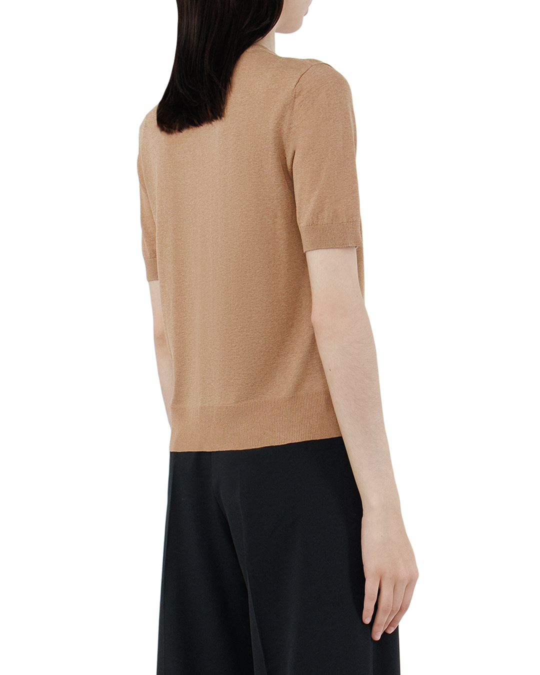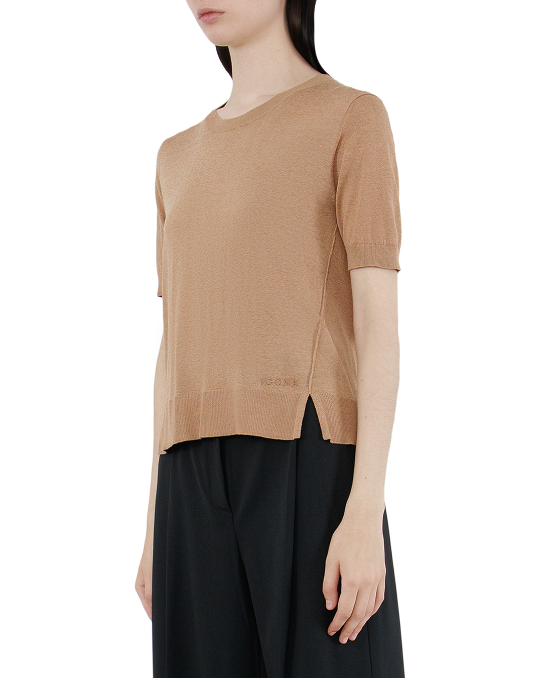 Этот джемпер — воплощение тонкой элегантности и минималистского шика. Нежный бежевый оттенок подчеркивает натуральную красоту и делает его универсальным элементом гардероба. Изготовлен из высококачественной пряжи, он обеспечивает мягкость и комфорт на весь день. Круглый вырез добавляет джемперу классическую нотку, идеально подчеркивая линию шеи и создавая сдержанный, но изысканный контур. Рукава длиной до середины руки акцентируют внимание на изящности силуэта, придавая образу легкость и свежесть. С вниманием к деталям выполнена отделка манжет и нижнего края, где аккуратные боковые разрезы добавляют динамики и современности. Благодаря этому дизайн становится более адаптивным, что позволяет легко комбинировать его с различными элементами одежды. Этот джемпер замечательно подойдет для создания как повседневных, так и более официальных ансамблей, сочетаясь с юбками или брюками, добавляя элегантности в повседневный стиль.