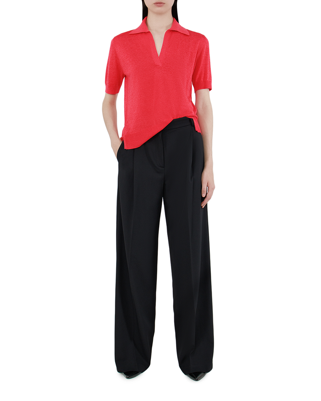 Этот джемпер — гармония яркости и утонченности. Выполненный из мягкой и легкой ткани, он вносит свежесть и энергию благодаря насыщенному коралловому оттенку. Воротник с открытым V-образным вырезом добавляет изделию грациозности и привлекательности, обрамляя шею и создавая элегантный силуэт. Этот элемент придаёт джемперу структуру и лёгкую непринуждённость. Рукава длиной до середины руки и тщательно обработанные манжеты позволяют создать аккуратный образ. Современная конструкция с минималистичными деталями, включая изящные боковые разрезы, подчеркивает чувство стиля и индивидуальности. Отделка выполнена с исключительным вниманием к деталям, что видно в аккуратных швах и идеально подобранной длине, благодаря чему джемпер становится универсальной частью гардероба. Идеально сочетается с узкими брюками или юбками, добавляя нотку игривости и нежности в повседневный образ.