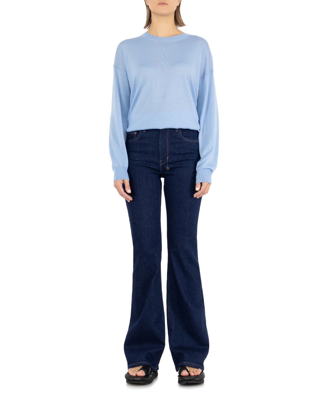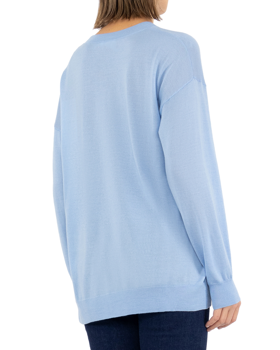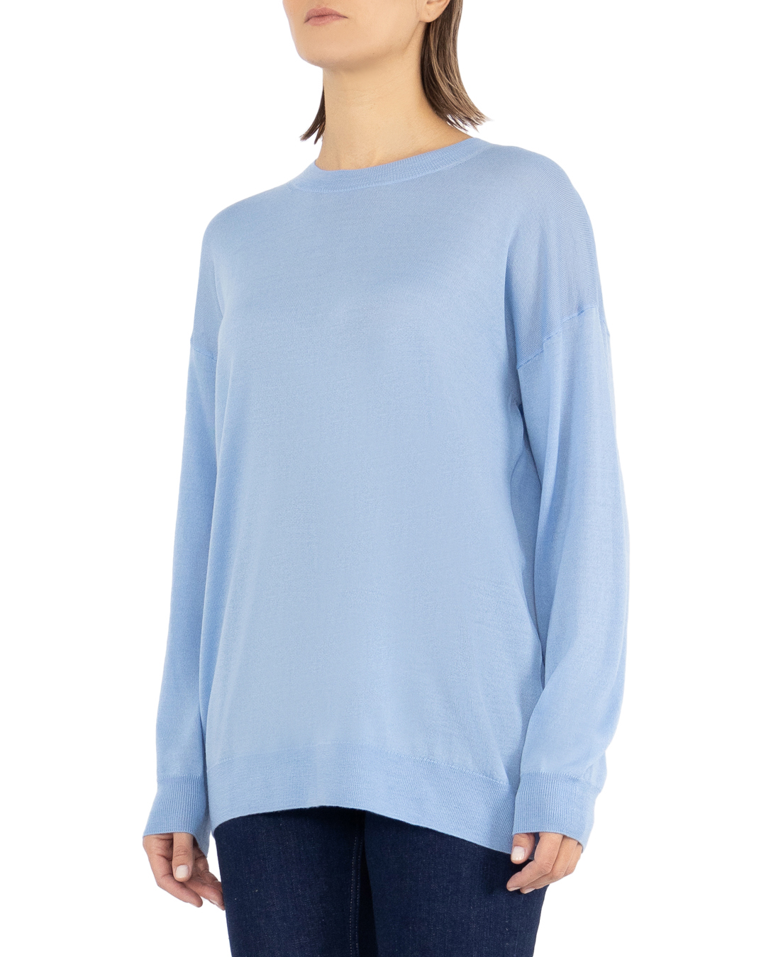 Джемпер прямого кроя изготовлен из шерсти, кашемира и шелка. Шерсть, шёлк и кашемир — это самые роскошные ткани в мире. Вместе эти материалы создают невероятный тактильный комфорт, несравнимый с другими. Манжеты, низ и круглый вырез связан в технике английская резинка.