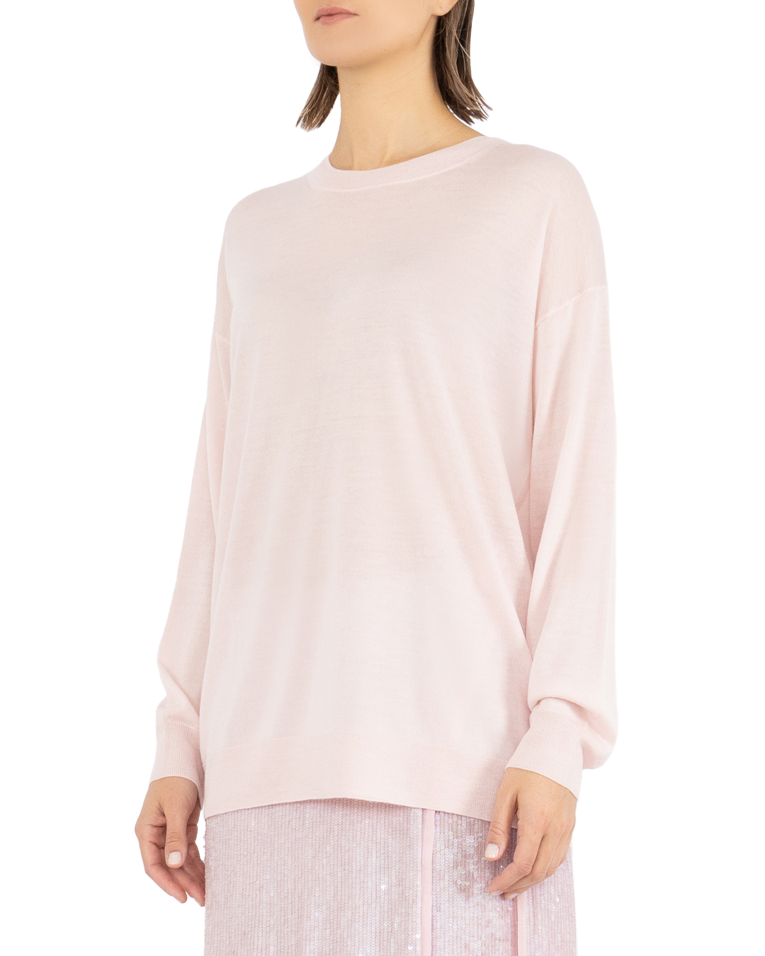 Джемпер прямого кроя изготовлен из шерсти, кашемира и шелка. Шерсть, шёлк и кашемир — это самые роскошные ткани в мире. Вместе эти материалы создают невероятный тактильный комфорт, несравнимый с другими. Манжеты, низ и круглый вырез связан в технике английская резинка