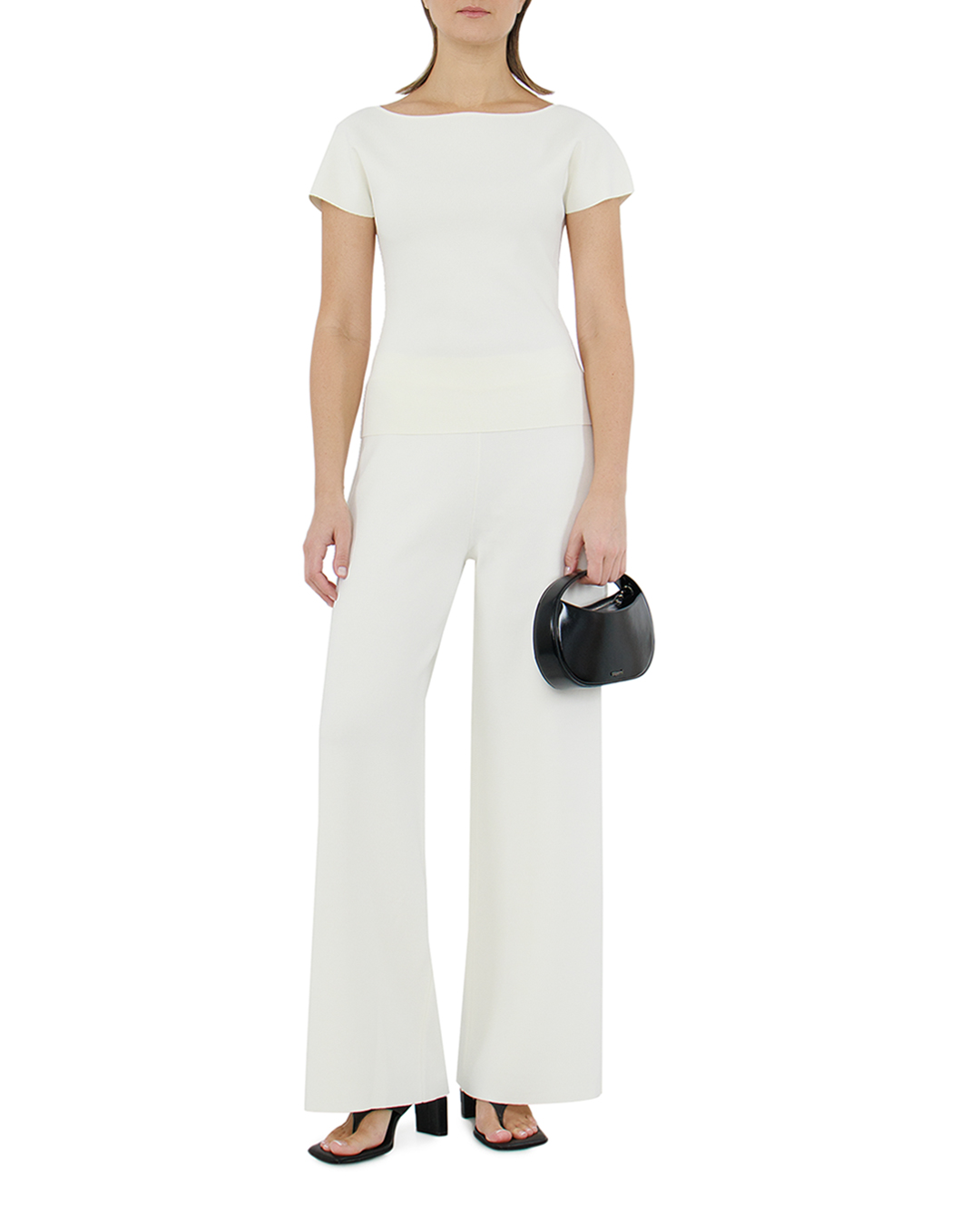 Этот джемпер от P.A.R.O.S.H. воплощает в себе элегантность и утонченность благодаря минималистичному дизайну и прекрасному качеству материалов. Созданный из мягкой ткани, он обеспечивает комфорт и легкость, идеально подходя для разнообразных образов. Нежный молочный цвет джемпера добавляет универсальности и создает изысканную основу для различных стилей. Прямой крой подчеркивает лаконичность и современность, позволяя сочетать джемпер с разнообразными элементами гардероба. Круглый вырез придает классической простоты, подчеркивая линию шеи, а короткие рукава добавляют непринужденности и комфорта. Тщательная отделка и безупречные швы свидетельствуют о высоком мастерстве исполнения и внимании к деталям. Этот джемпер — великолепный выбор для тех, кто ценит сдержанность и элегантность, стремясь подчеркнуть свою индивидуальность через качество и стиль.