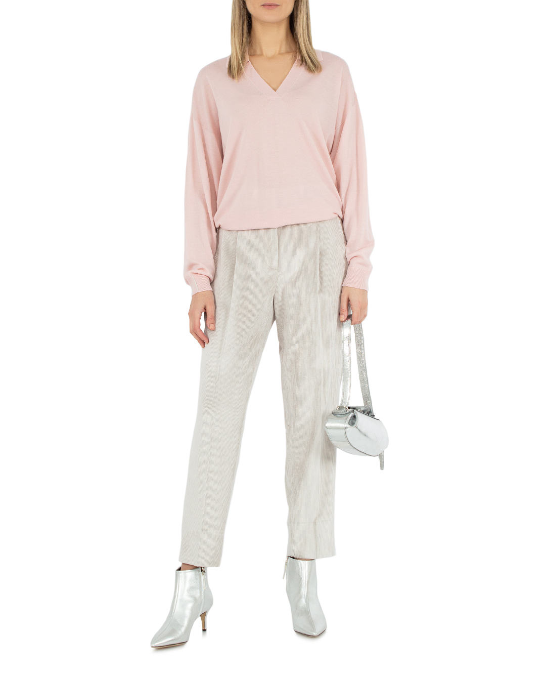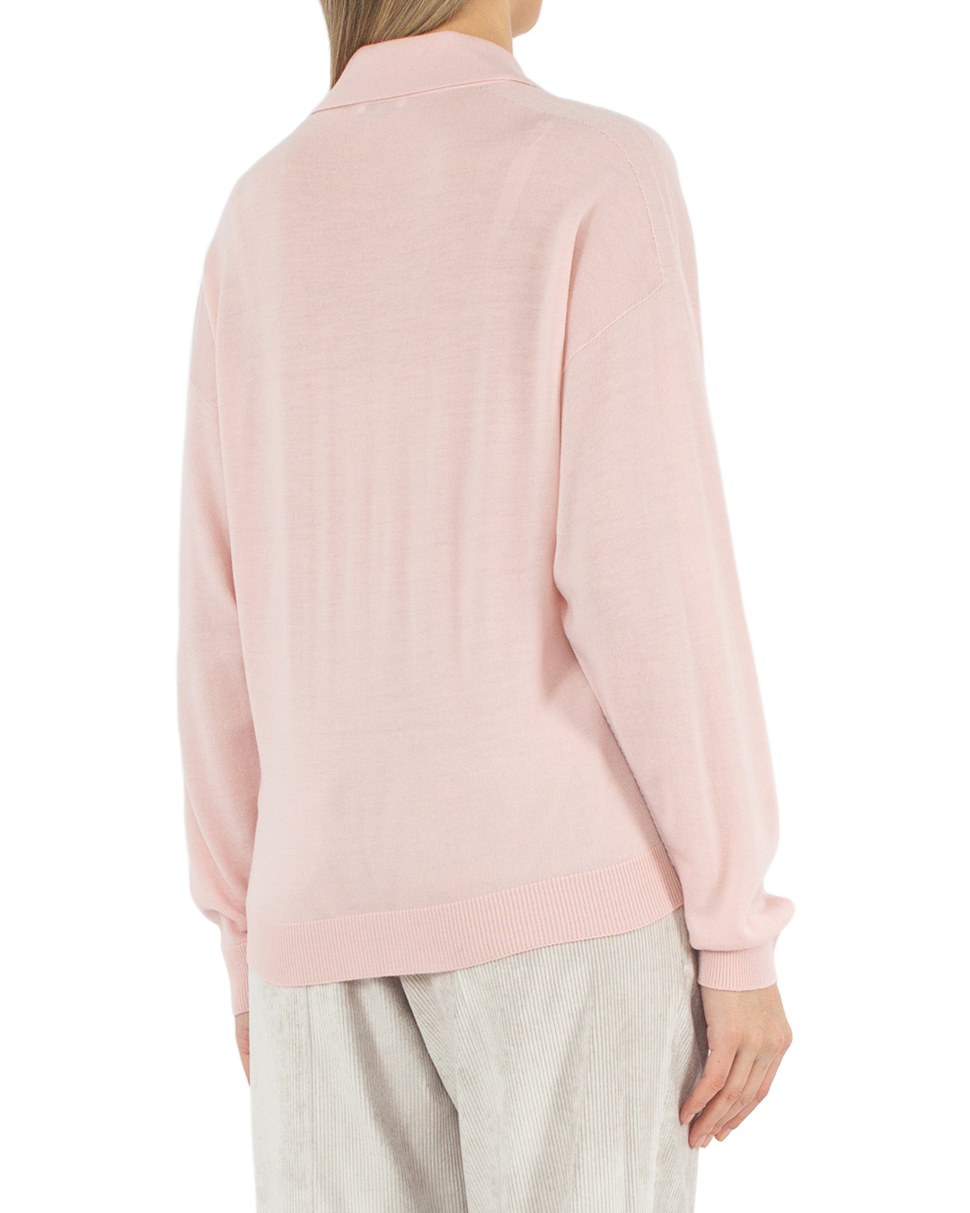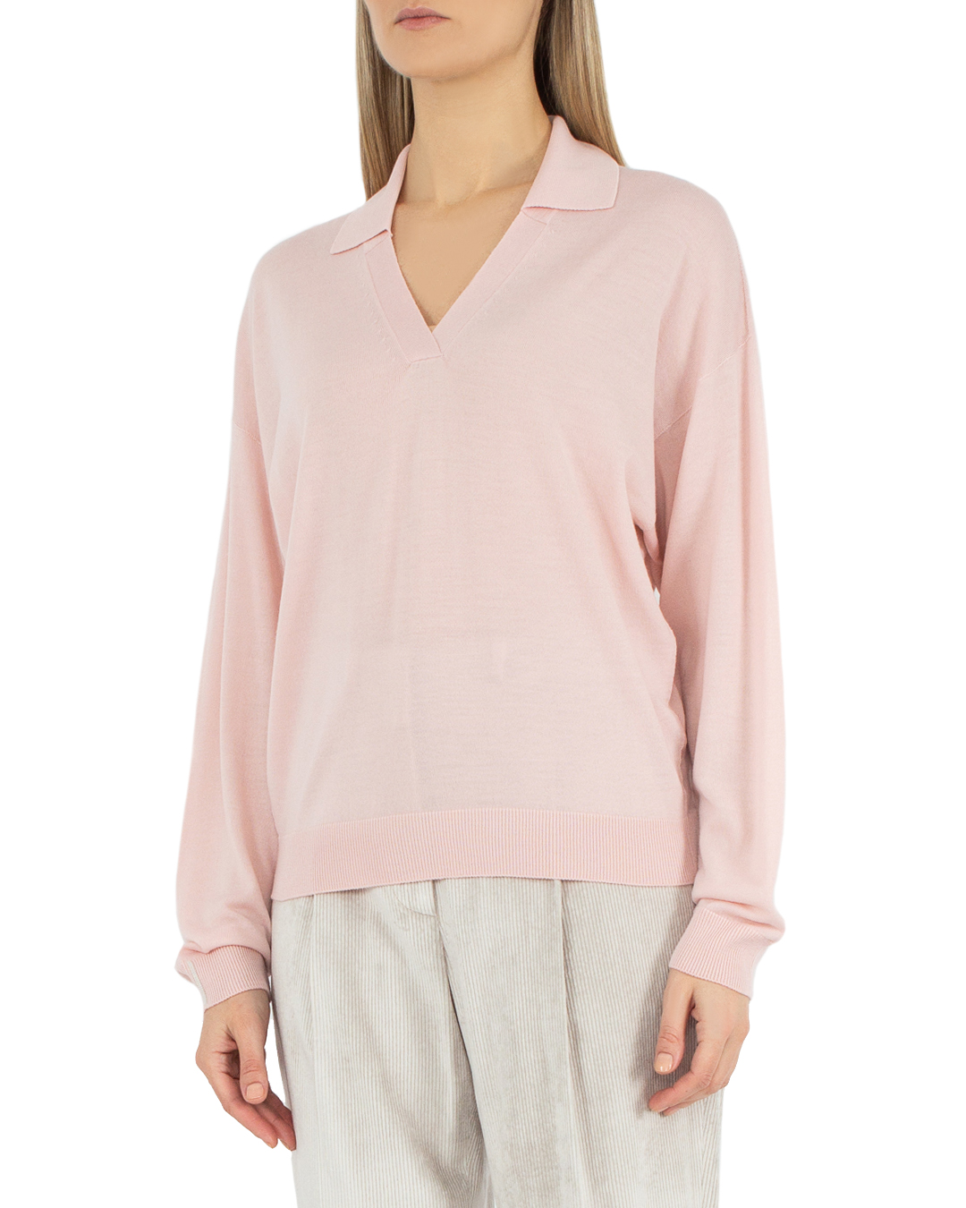 Пуловер Peserico EASY из трикотажной шерсти. Базовая модель с отложным воротником и уплотненной отделкой.
