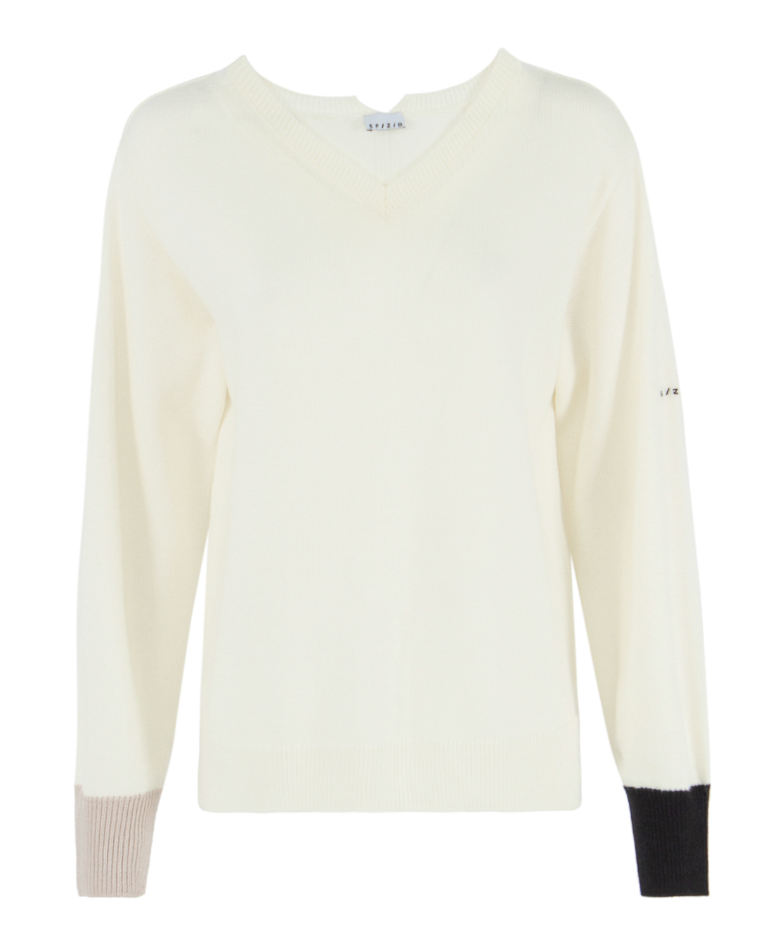 Джемпер Sfizio из мягкой вязаной шерсти. Модель прямого свободного силуэта с уплотненной отделкой.