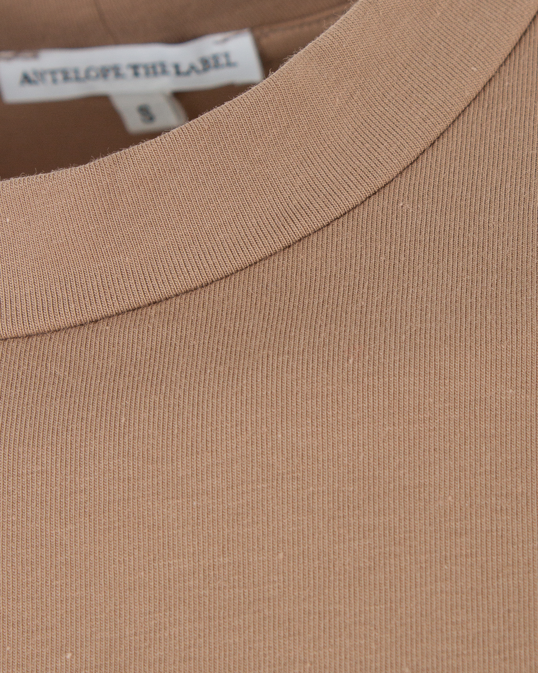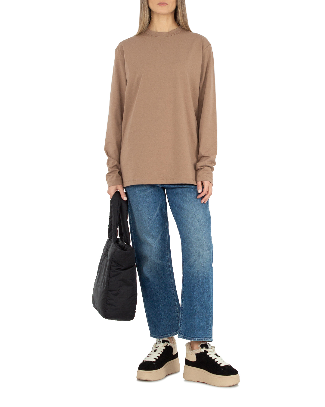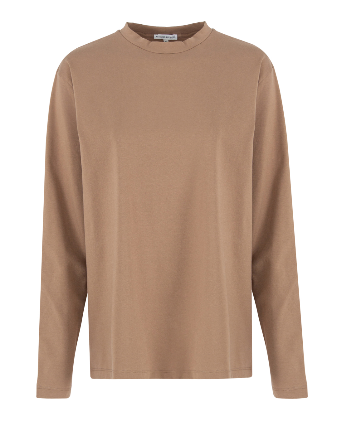 Лонгслив ANTELOPE THE LABEL из трикотажного хлопка. Модель прямого силуэта с удлиненными рукавами и спущенной линией плеч.