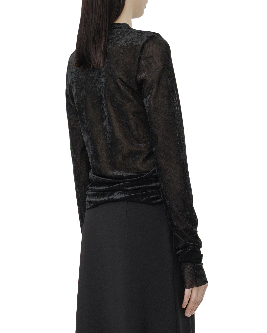 Этот лонгслив представляет собой идеальное воплощение современной элегантности, с упором на тактильные ощущения и изысканную простоту. Материал из бархатистого трикотажа с эффектом лёгкого мерцания добавляет глубину и выразительность изделию, создавая эффект мягкого, роскошного сияния. Классический силуэт с длинными облегающими рукавами не только подчеркивает грациозность фигуры, но и обеспечивает комфорт в носке. Базовый круглый вырез горловины добавляет универсальности, позволяя легко сочетать лонгслив с различными элементами гардероба. Отделка выполнена с акцентом на лаконичность: аккуратные, практически незаметные швы подчёркивают чистоту линий и внимание к деталям. Такой лонгслив станет незаменимой основой для создания многослойных образов и прекрасно впишется как в повседневный, так и в вечерний стиль, позволяя экспериментировать с фактурами и цветами.