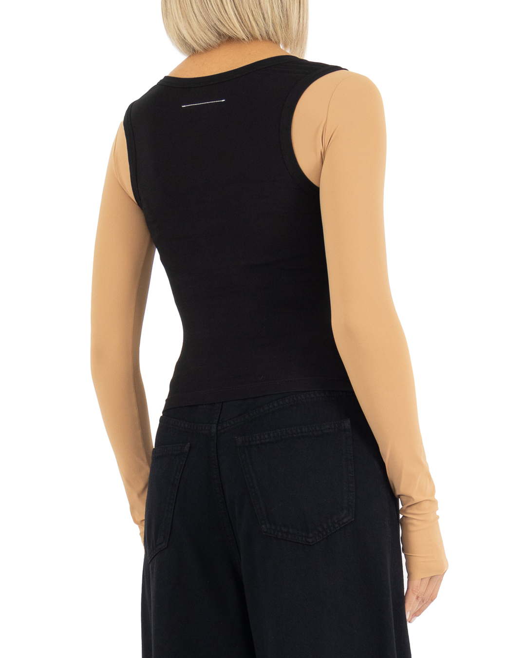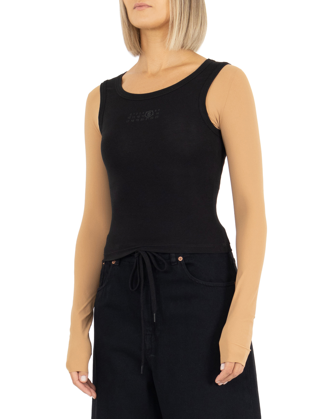 Лонгслив MM6 Maison Margiela из хлопка с логотипом бренда. Эластичное изделие облегающего силуэта с длинными рукавами.
