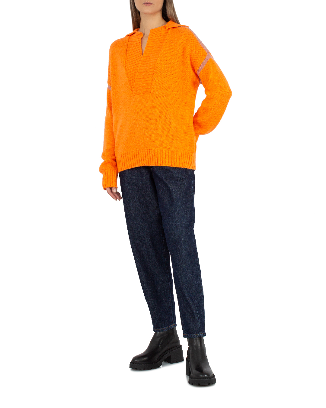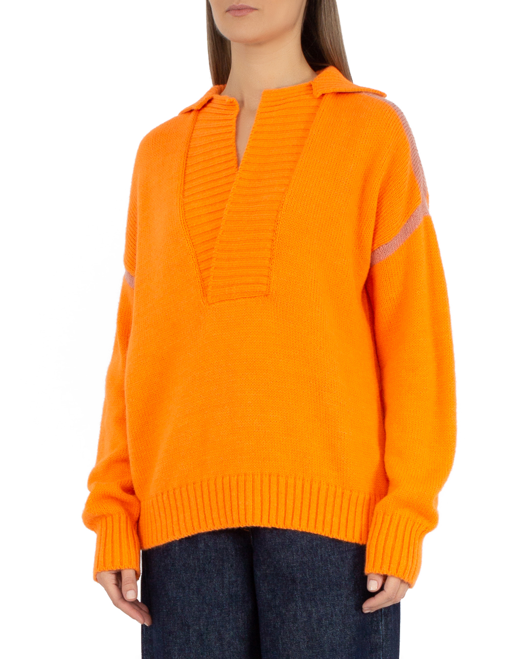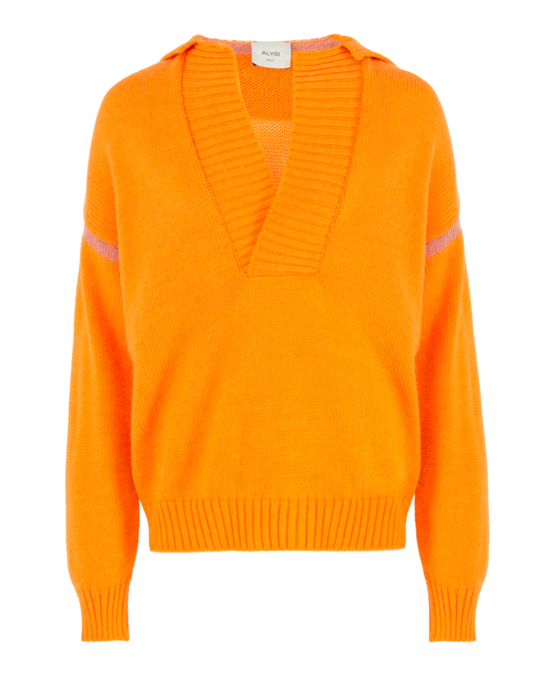 Вязаный пуловер ALYSI из комбинированной мягкой шерсти. Модель прямого свободного силуэта со спущенной линией плеч и уплотненной отделкой манжет, линии выреза низа в рубчик.