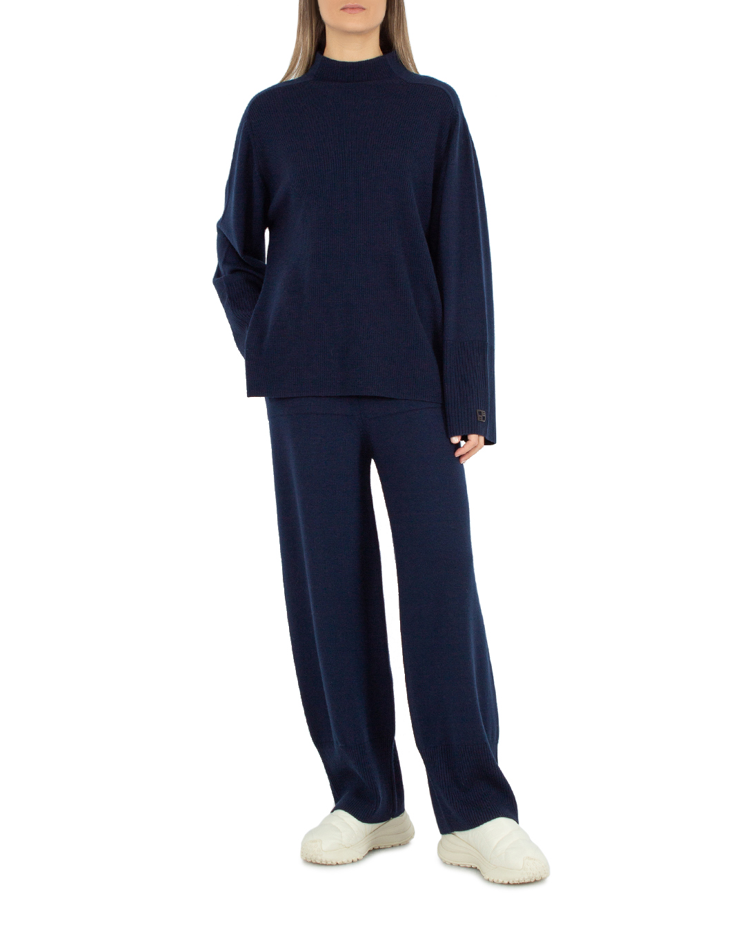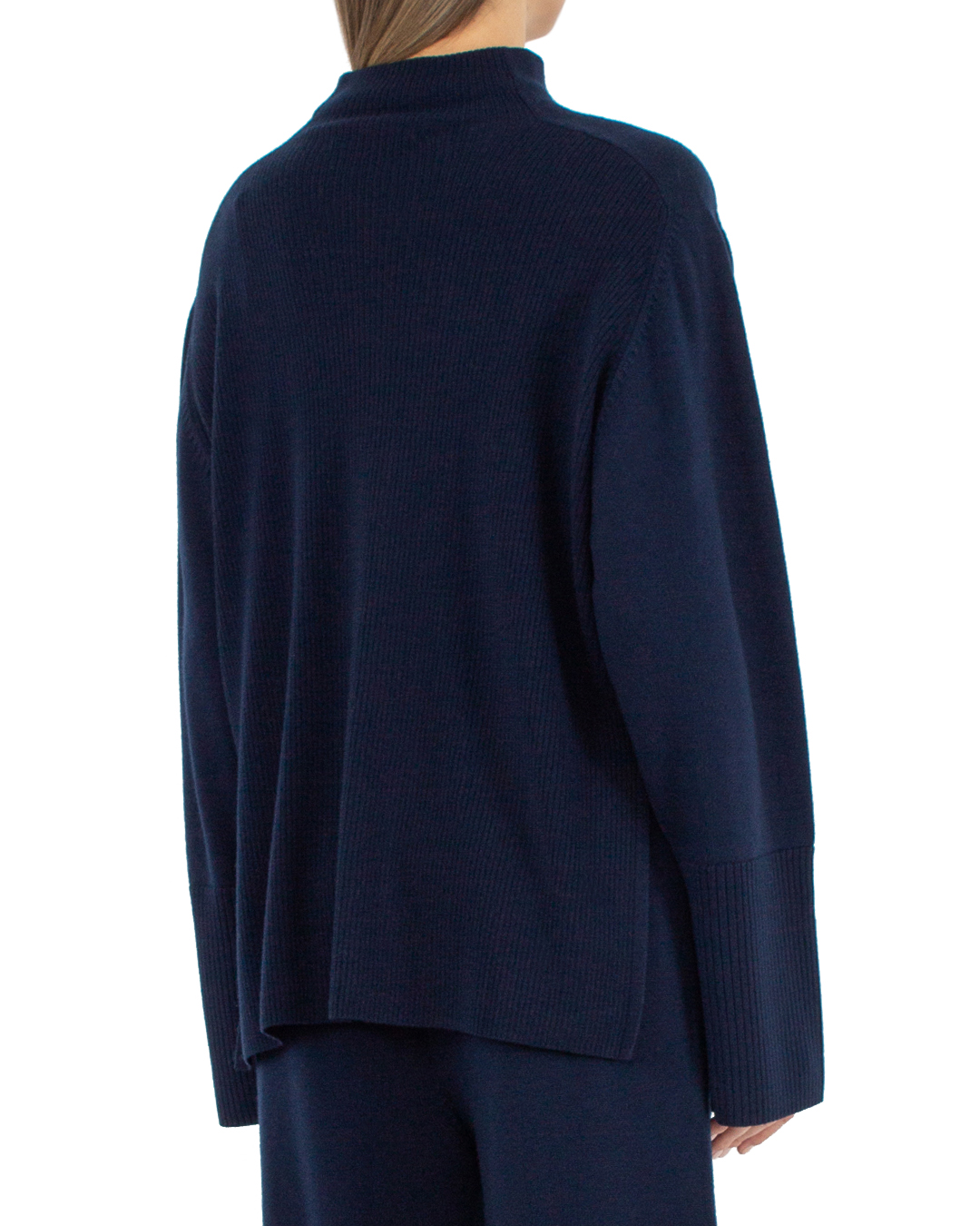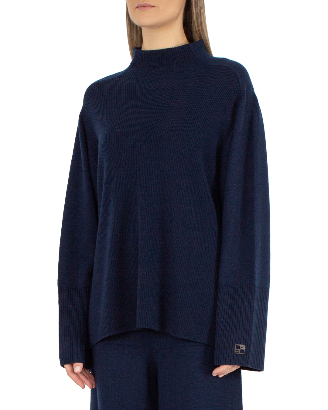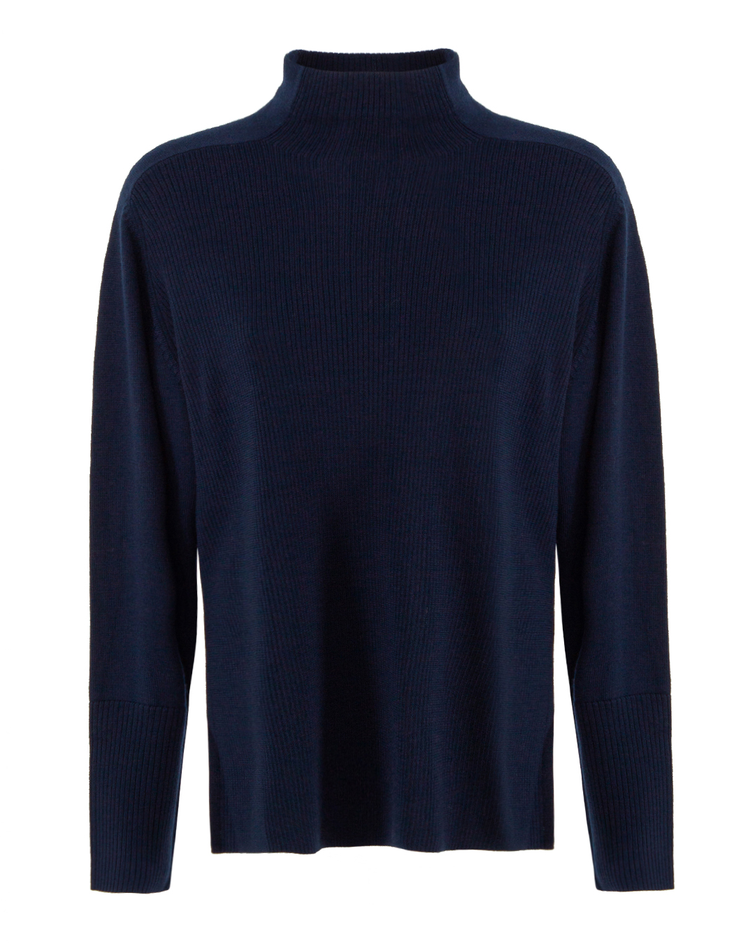 Свитер BEATRICE из мягкой шерсти темно-синего оттенка. Прямой свободный силуэт с уплотненной отделкой в рубчик.
