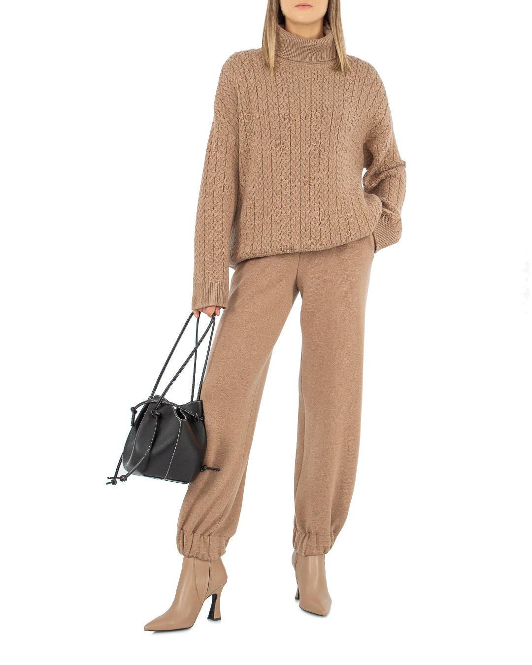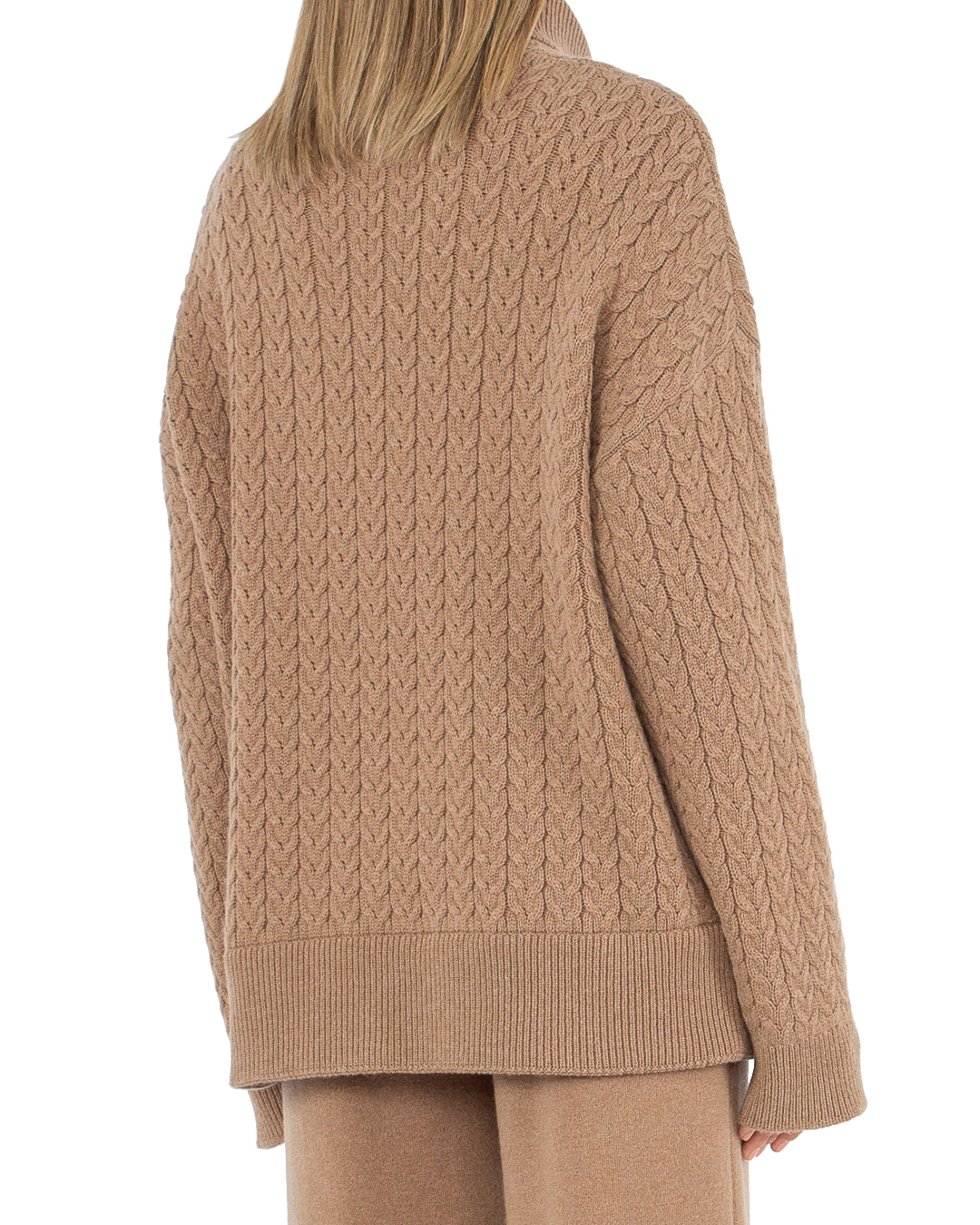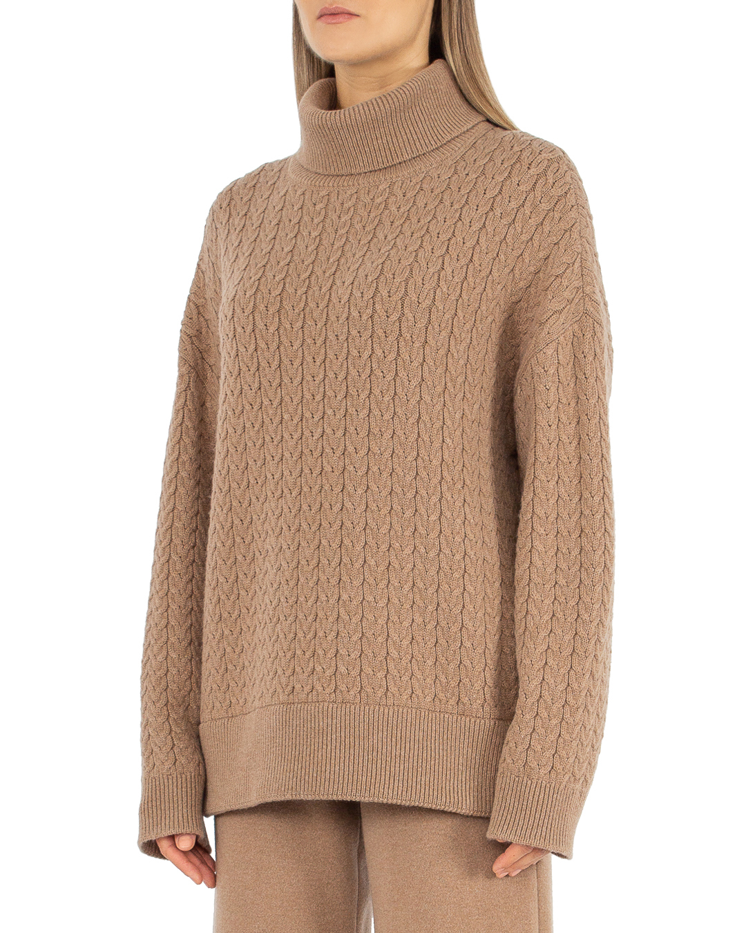 Свитер Free Age из мягкой шерсти с добавлением кашемира с объемным узором косичка. Модель прямого силуэта с длинными рукавами и спущенной линией плеч с высокими воротом.