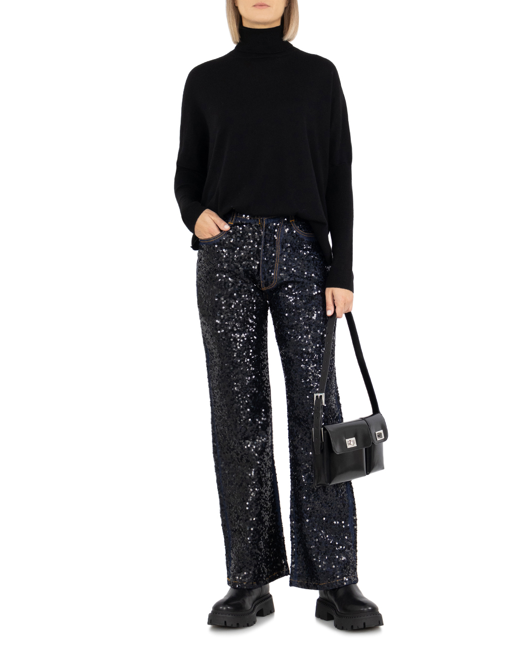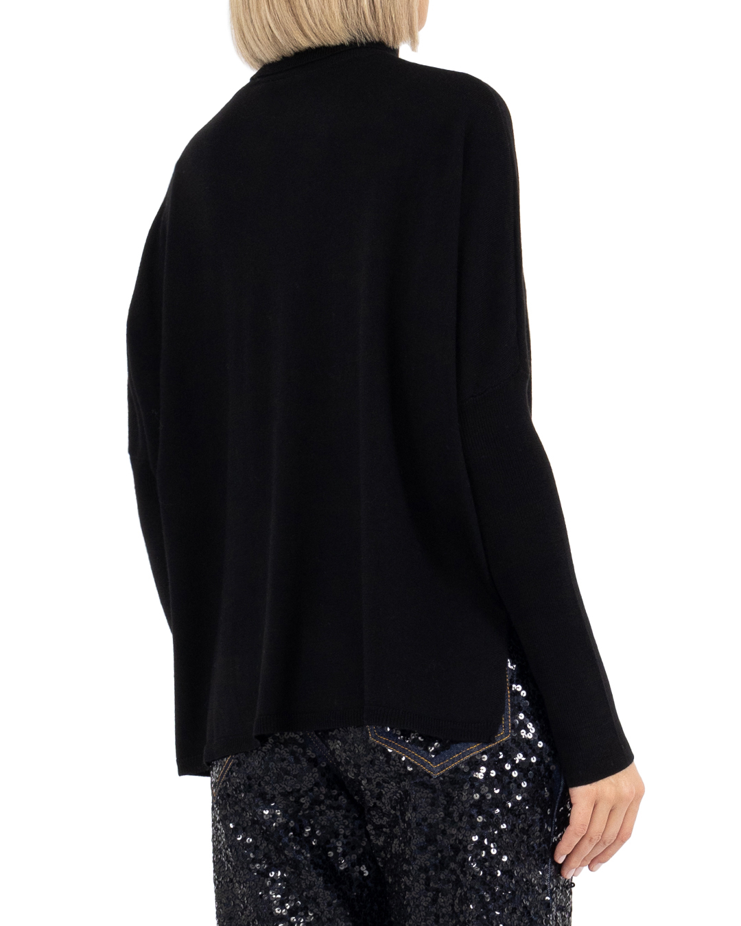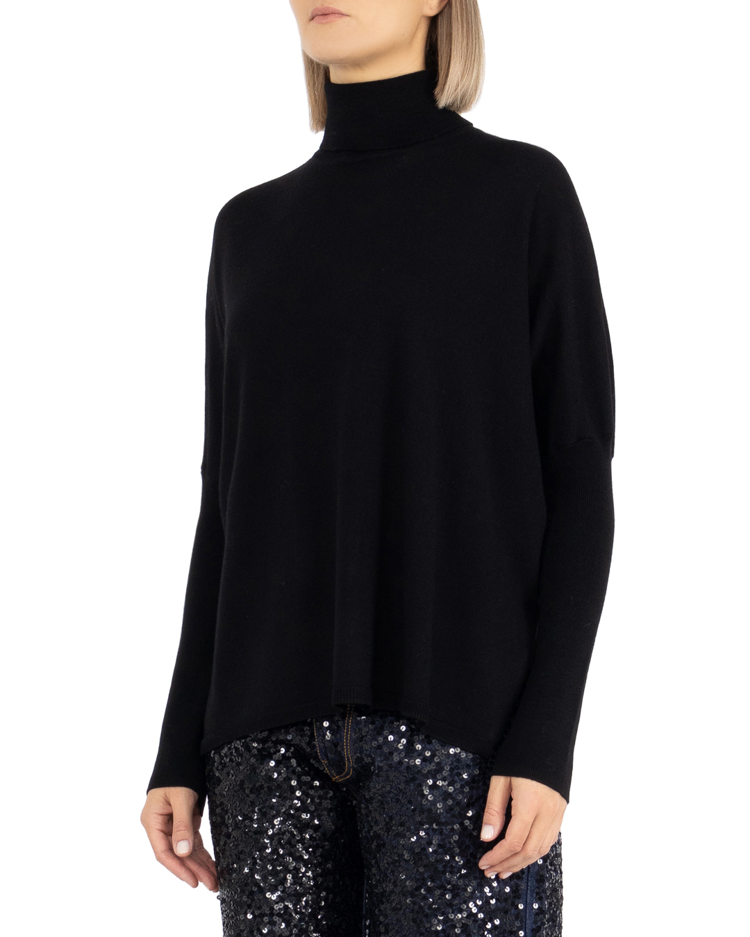 Свитер из 100% шерсти с высоким воротником стойкой свободного кроя . Изделие прекрасно сочетается с джинсами и кроссовками.