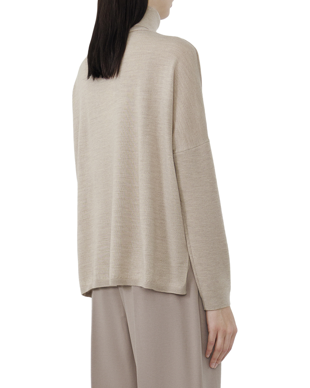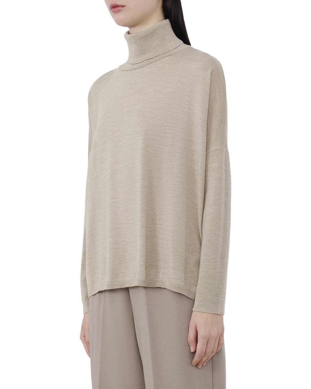 Этот джемпер — пример утончённого минимализма и функциональной элегантности, выполненный в нежном бежевом оттенке, который добавляет теплоты и универсальности образу. Высокий воротник-гольф обеспечивает комфорт и защищает от непогоды, добавляя нотку изысканности. Свободный крой с заниженной линией плеч создаёт расслабленный и стилевой силуэт, позволяя чувствовать себя комфортно и уверенно. Тонкая вязка джемпера создана из приятной на ощупь ткани, обеспечивающей мягкость и уют. Манжеты и нижний край изделия отделаны аккуратной резинкой, которая обеспечивает стабильную посадку и сохраняет форму. Все швы выполнены с абсолютной точностью, подчёркивая высокое качество работы. Этот джемпер идеально подходит для того, чтобы стать основой как повседневных, так и более формальных образов, создавая ощущение элегантной непринуждённости.