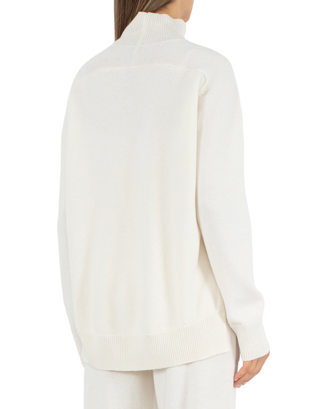 Базовый свитер MRZ из трикотажной мягкой шерсти с добавлением кашемира. Эластичное изделие свободного силуэта с двумя разрезами по бокам.