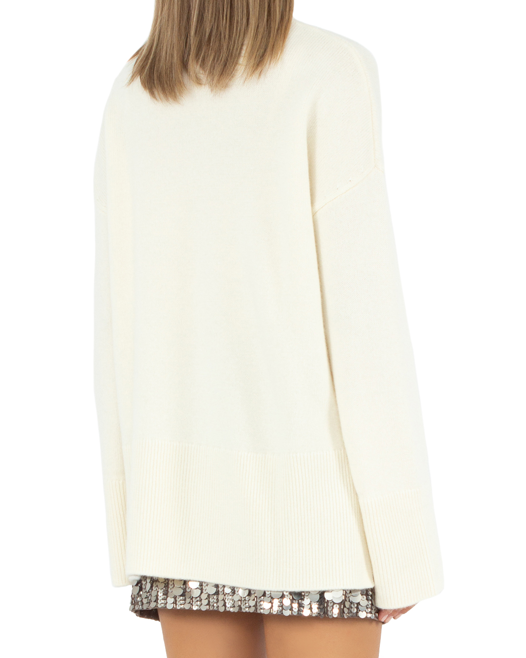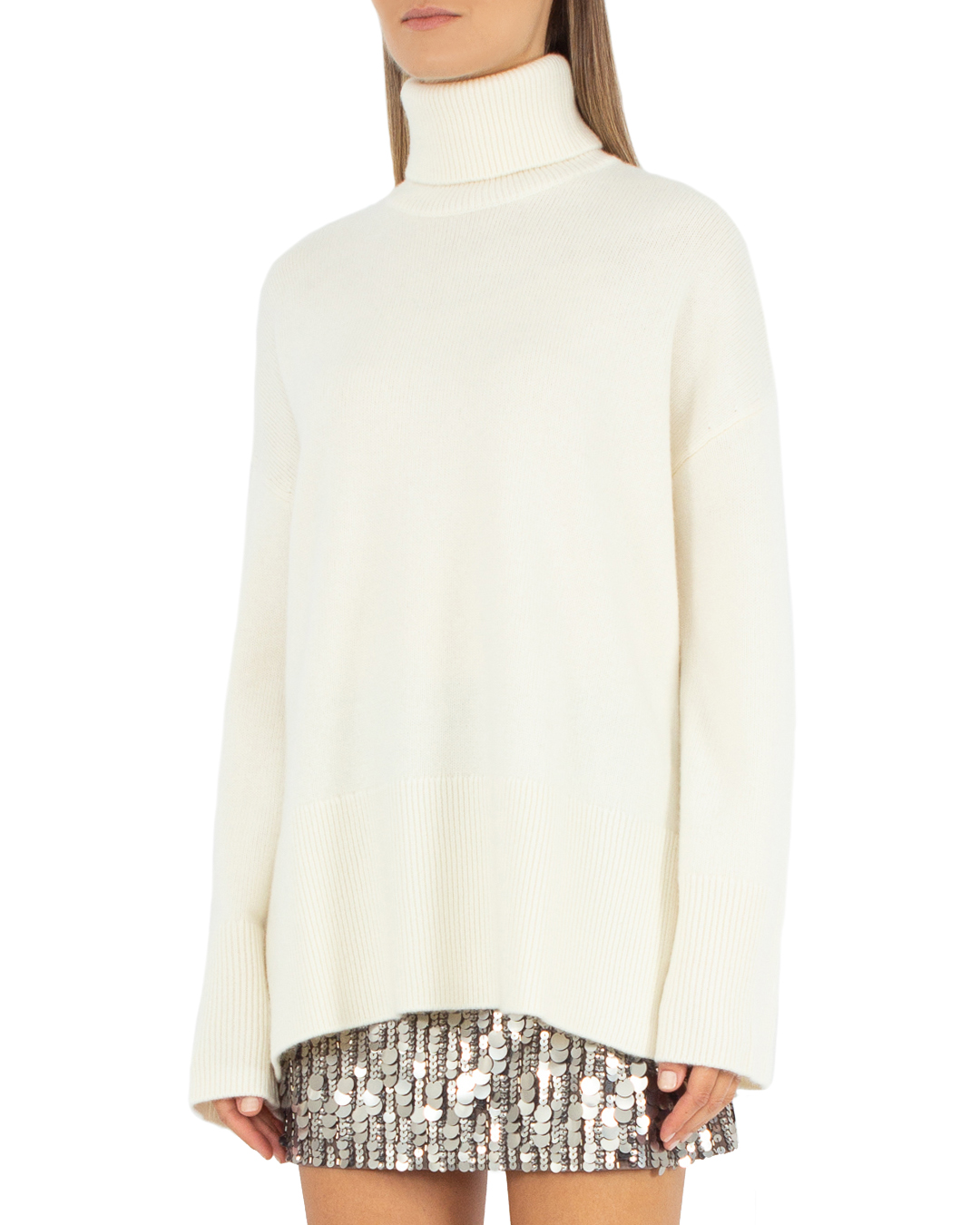 Базовый свитер P.A.R.O.S.H. из мягкой шерсти и кашемира. Эластичное изделие прямого свободного силуэта со спущенной линией плеч и уплотненной отделкой в рубчик.