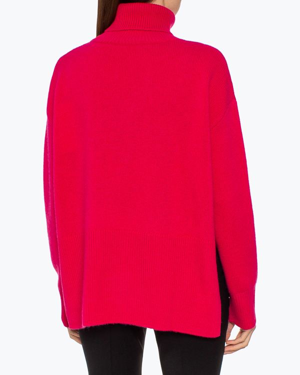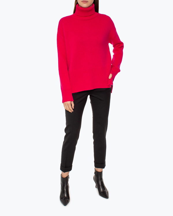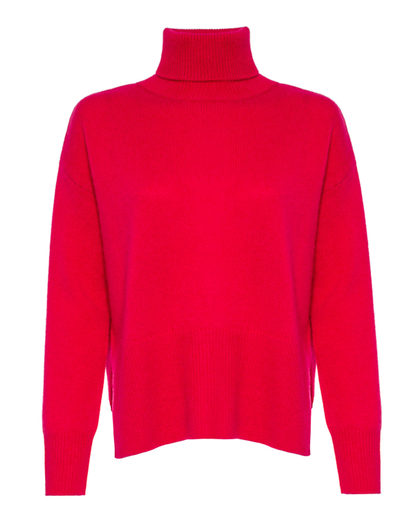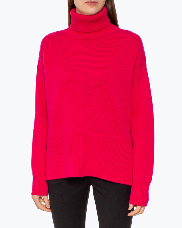 Свитер из вязаной шерсти с добавлением кашемира оттенка фуксии. Эластичное изделие непринужденного кроя с разрезами по бокам.