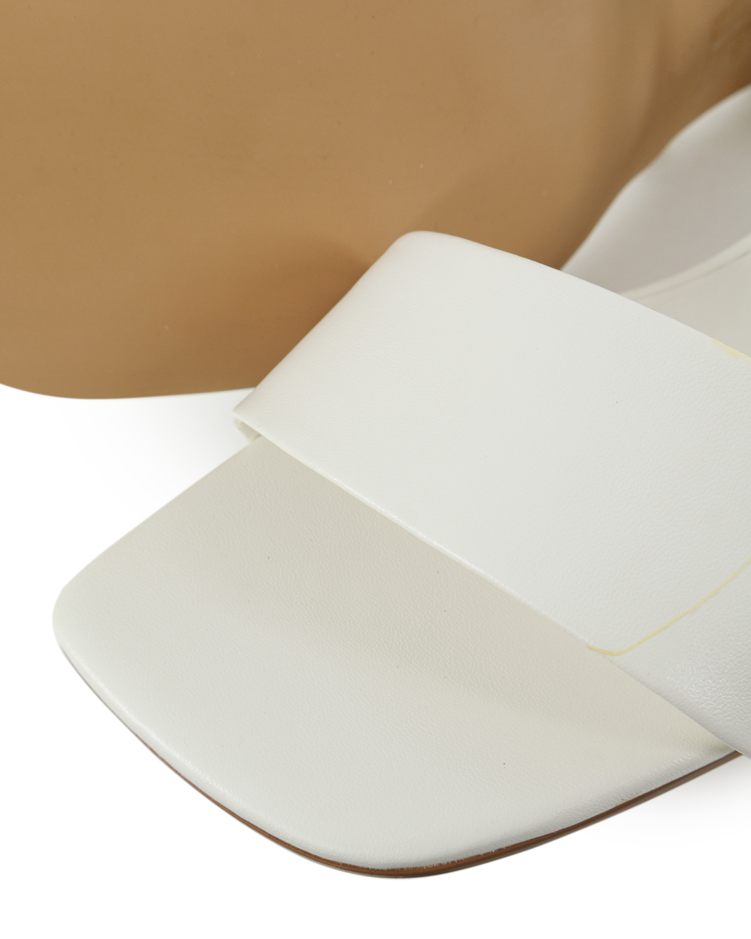 Босоножки Jeffrey Campbell — это воплощение элегантного минимализма и современного дизайна. Чистый белый цвет придает модели свежесть и универсальность, делая их идеальным выбором для летнего сезона.  Тонкие ремешки с изящной геометрической посадкой создают эффект легкости и воздушности, добавляя женственности. Блочный каблук средней высоты обеспечивает удобство и устойчивость, сохраняя при этом стильный силуэт. Открытый квадратный мысок добавляет современности и утонченности.  Эти босоножки идеально подойдут для создания как повседневных, так и более нарядных образов, добавляя нотку изысканности и лёгкости в ваш стиль.