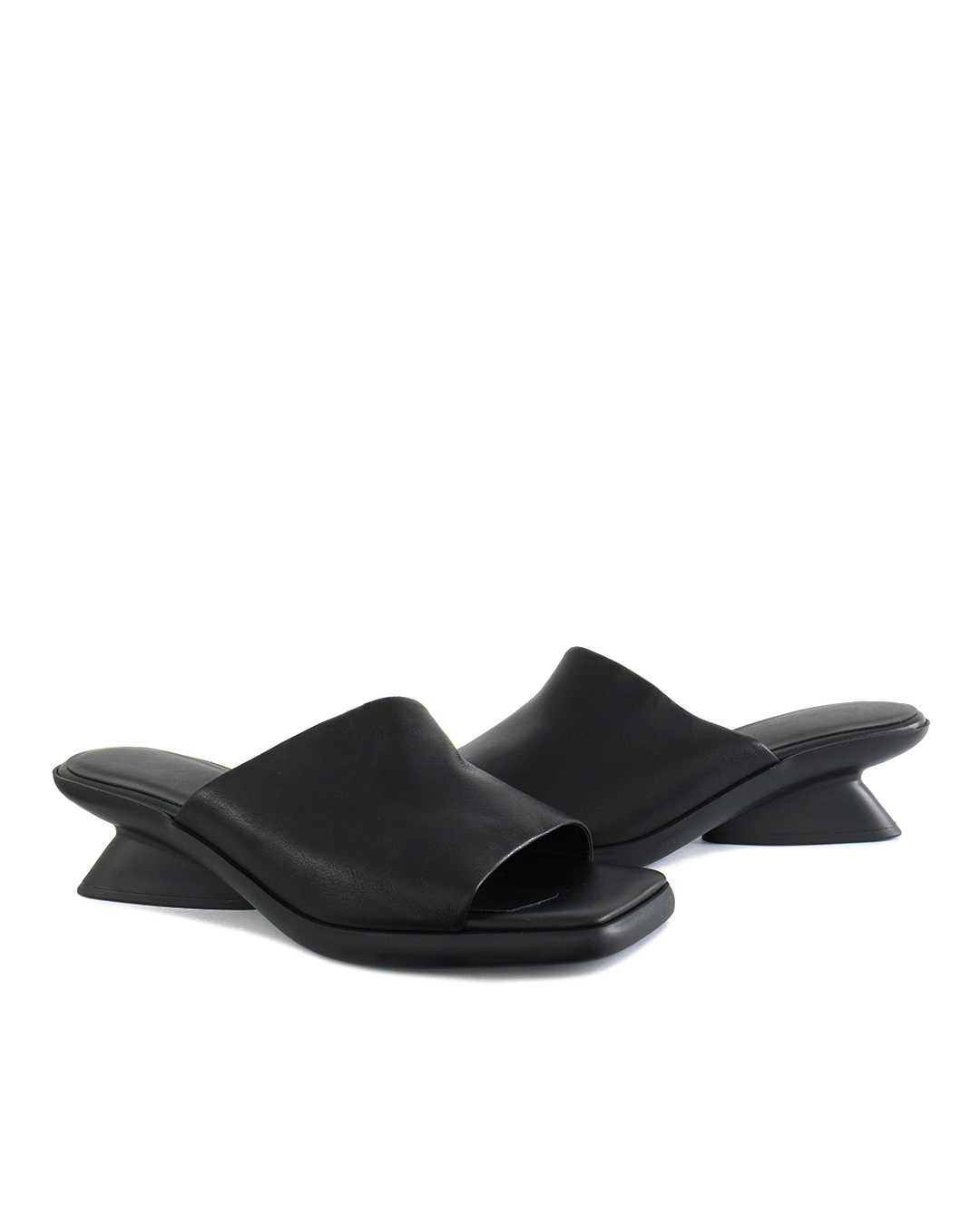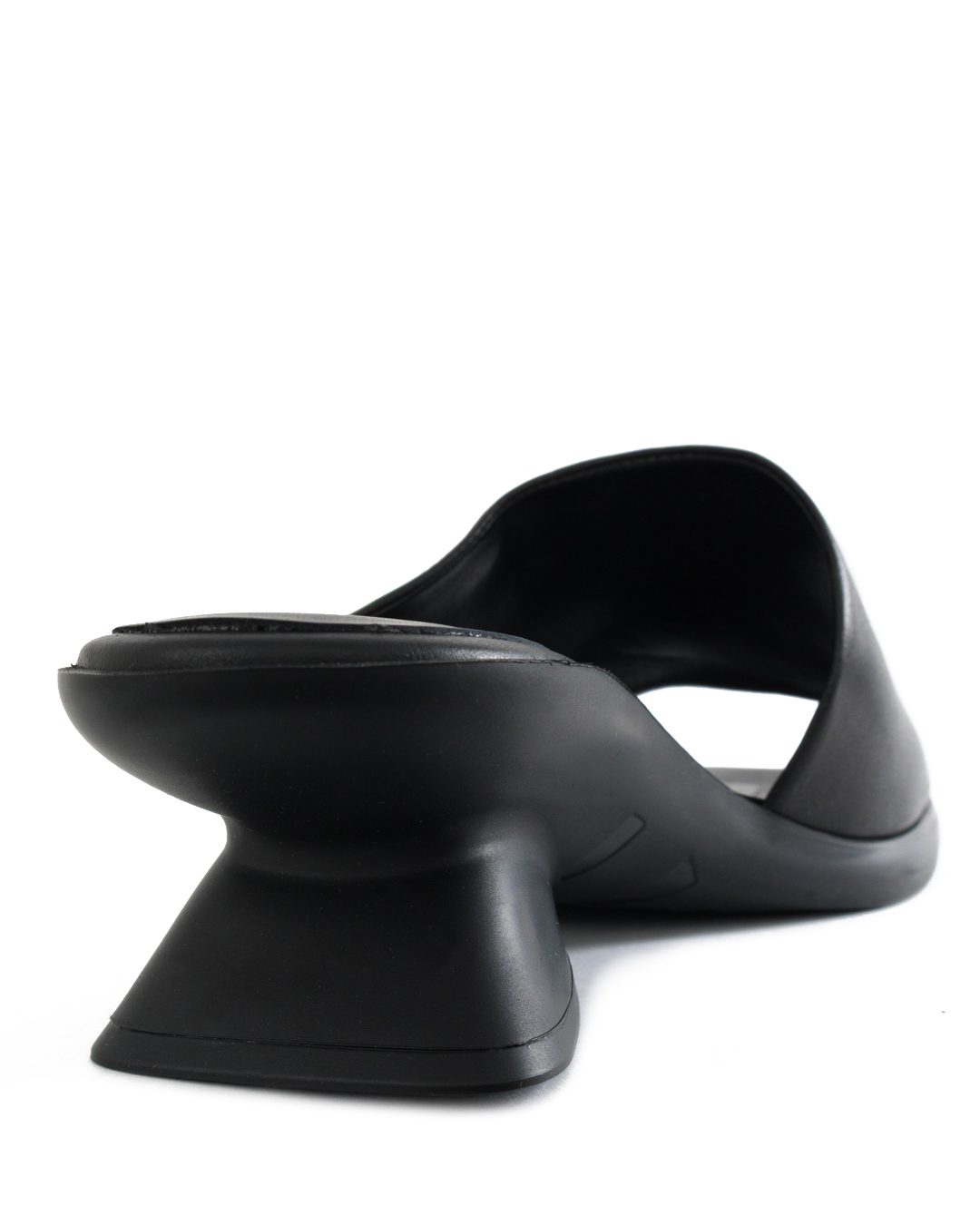 Эти мюли — воплощение ультрасовременного дизайна и изысканной простоты, идеально подходящие для создания стильных и уверенных образов. Выполненные в насыщенном черном оттенке, они излучают элегантность и деликатность. Главная изюминка этих мюлей — скульптурный каблук нестандартной формы, добавляющий обуви архитектурного изящества и динамики. Этот элемент привносит в образ футуристичную нотку и демонстрирует смелость дизайна. Минималистичный верх с плавными линиями утонченно удерживает стопу, обеспечивая комфорт и чистоту форм. Гладкая поверхность материала подчеркивает благородство и внимание к деталям. Эти мюли станут идеальным акцентом как в повседневном, так и в вечернем гардеробе, добавляя выразительности и утонченности любому наряду. Они — выбор тех, кто ценит стиль и стремится выделяться с помощью утонченных, но дерзких деталей.