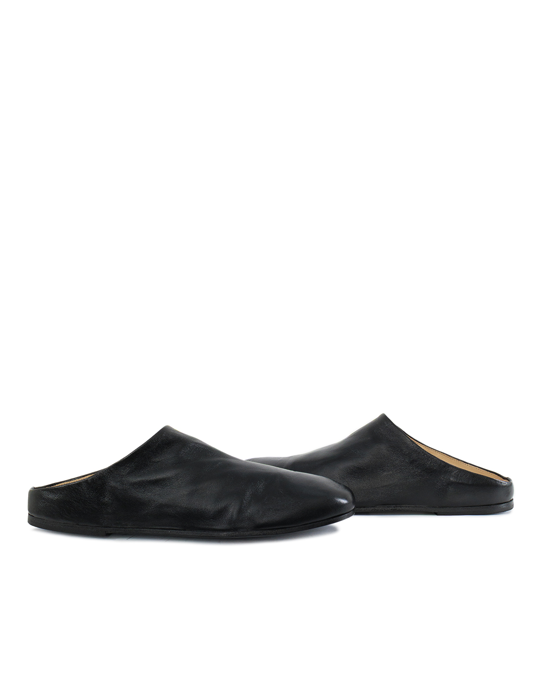 Эти сабо являются синонимом сдержанной элегантности и современного минимализма. Черная кожа, из которой они выполнены, обладает мягкостью и утонченной текстурой, придающей обуви роскошный вид. Силуэт без задника создает ощущение легкости и непринужденности, идеально подходя для создания стильных образов в духе casual chic. Зауженный носок добавляет изысканности, делая модель визуально утонченной и изящной. Мягкие складки и гладкие линии верха подчеркивают внимательное отношение к деталям, позволяя обуви органично дополнять как повседневные, так и более привередливые ансамбли. Лаконичная подошва также выполнена в минималистичном ключе, обеспечивая легкость и гибкость. Внутренняя отделка заботится о комфорте, благодаря использованию качественных материалов, которые создают приятную среду для ног. Эти сабо идеально подходят для тех, кто ценит практичность и стиль, принося в образ нотки утонченной небрежности и современного шика.
