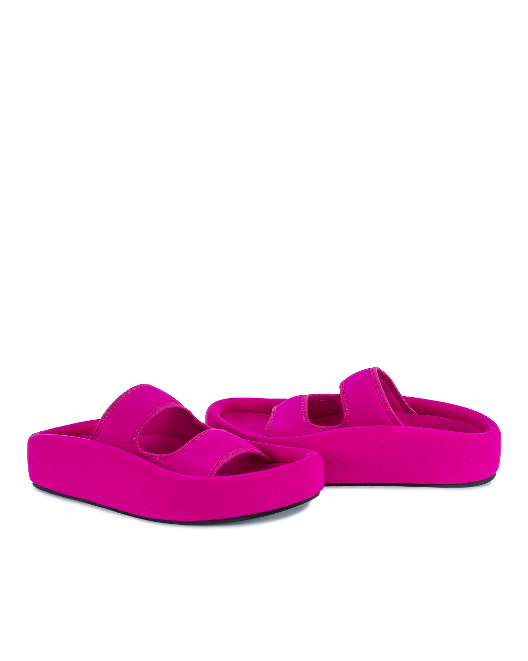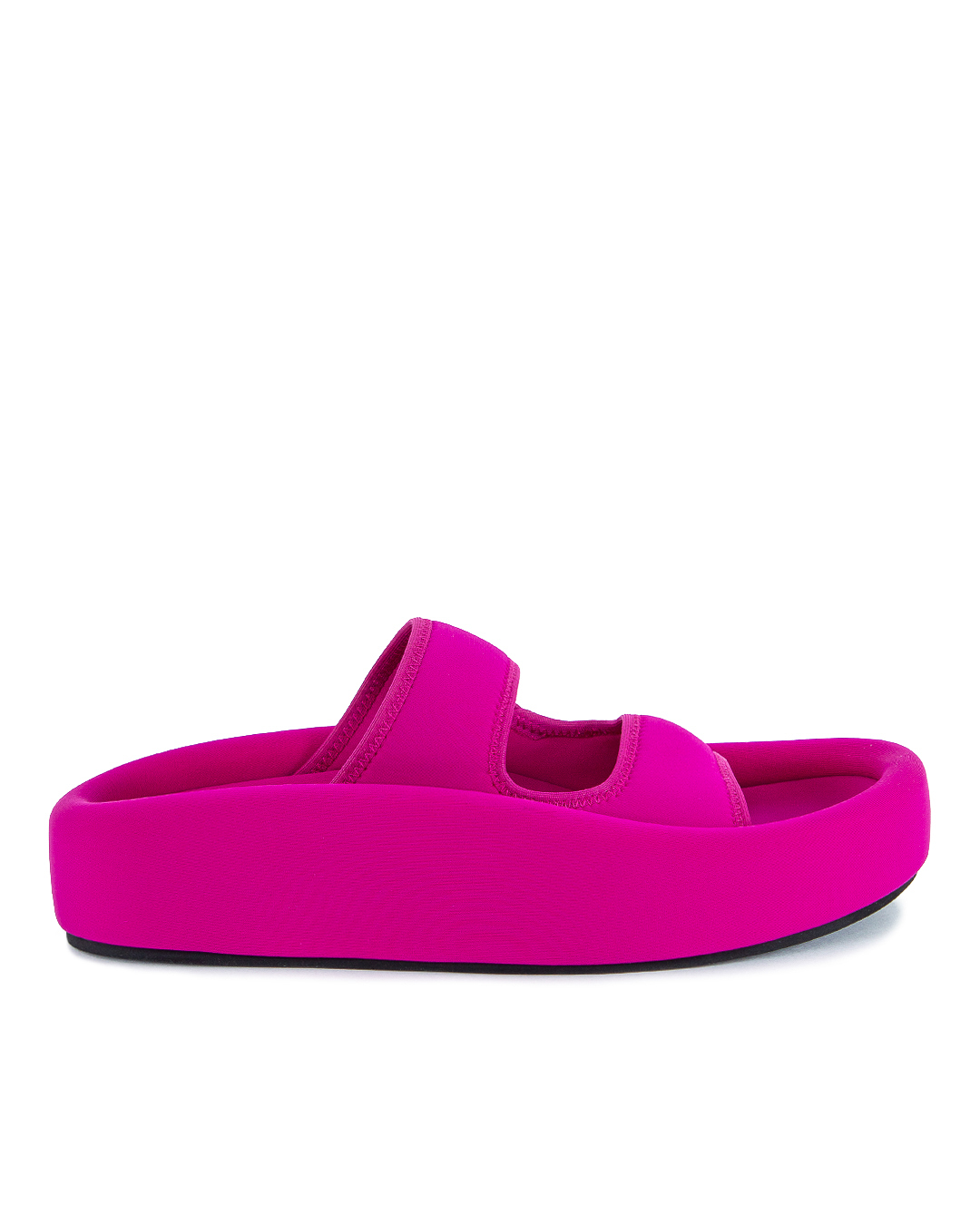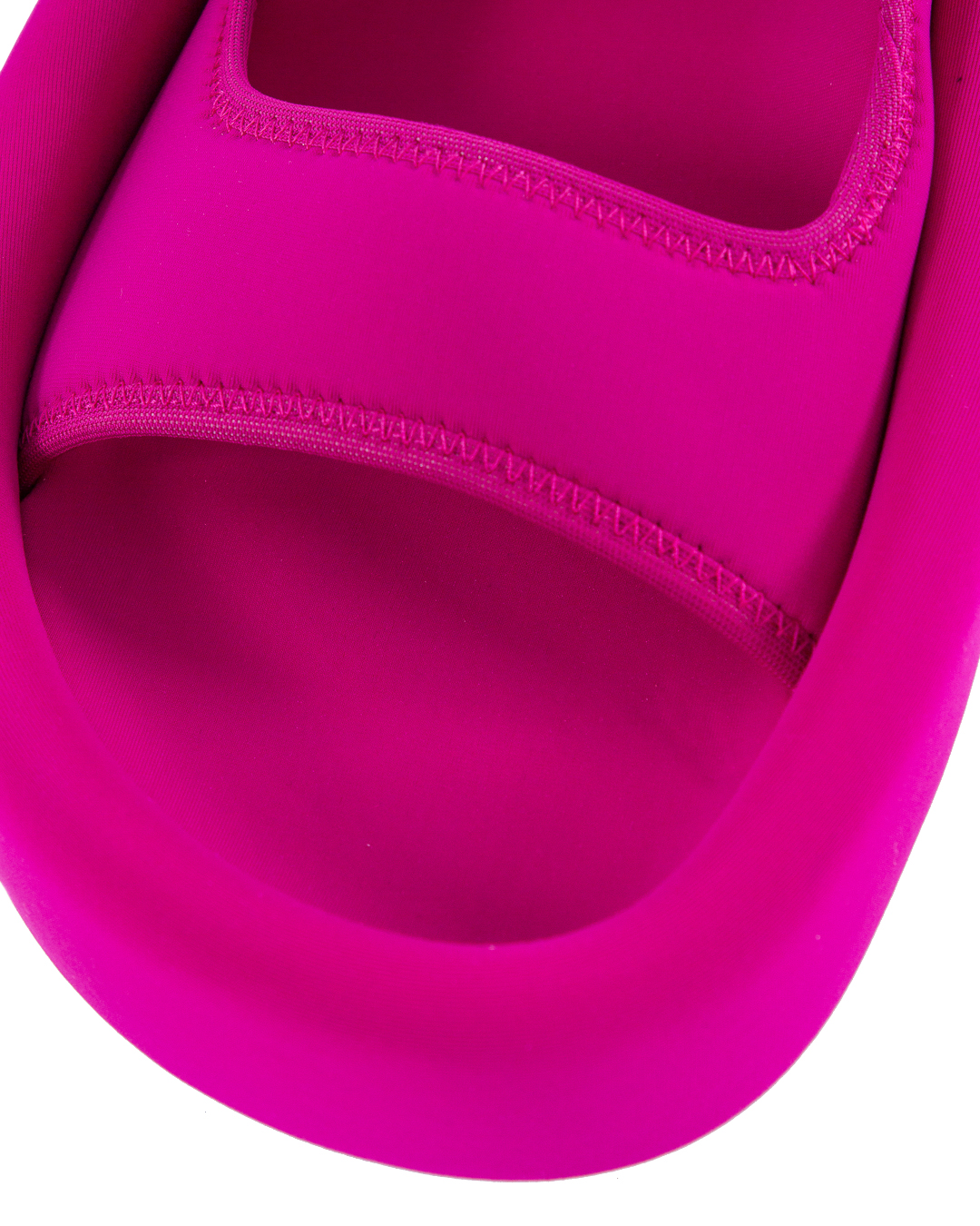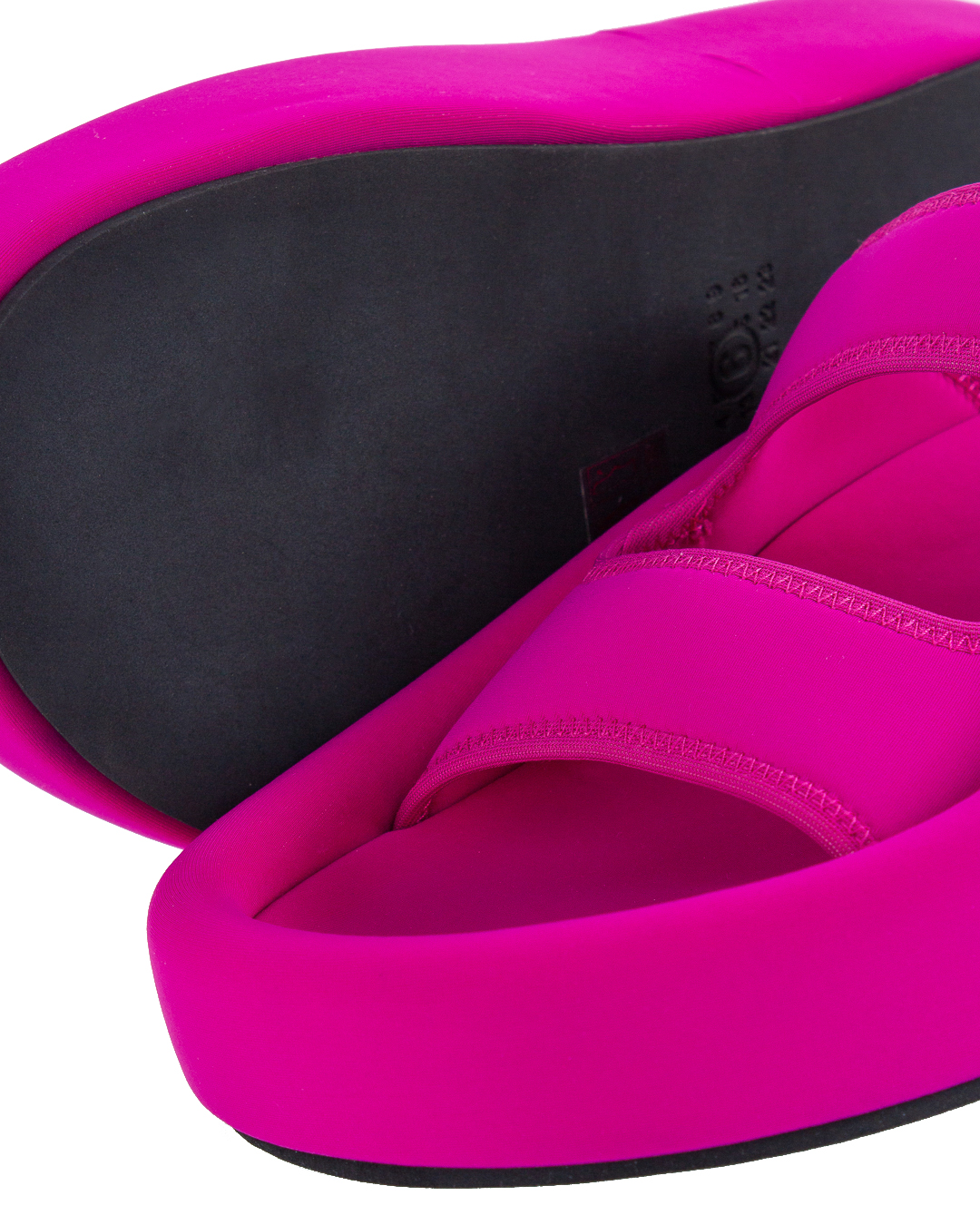 Шлепанцы MM6 Maison Margiela выполнены из яркого неопрена на толстой подошве в основной тон изделия. Пара объемного силуэта с удобной стелькой.