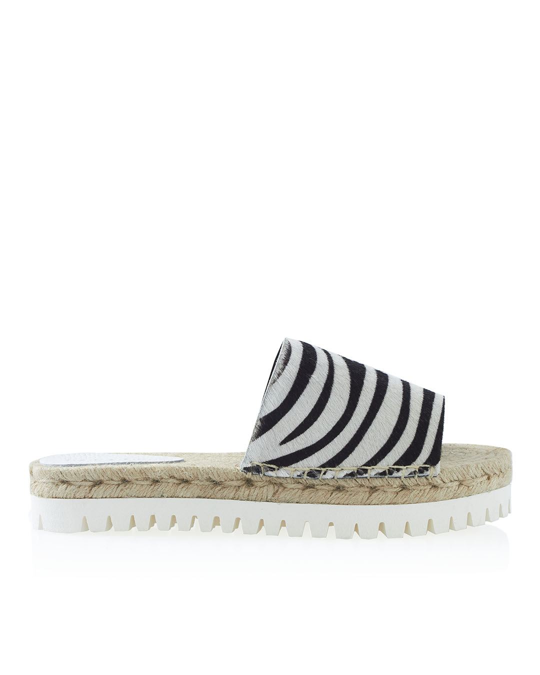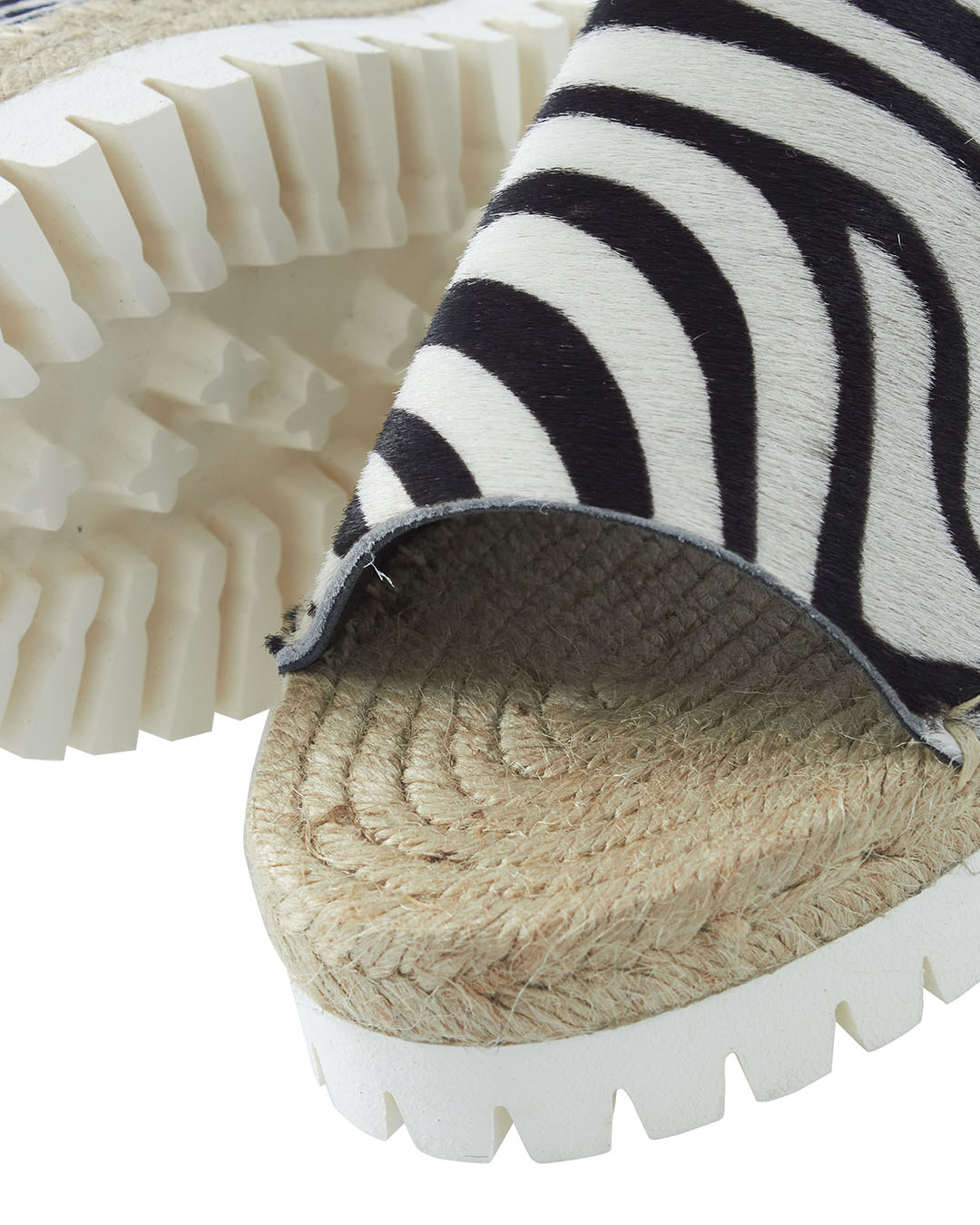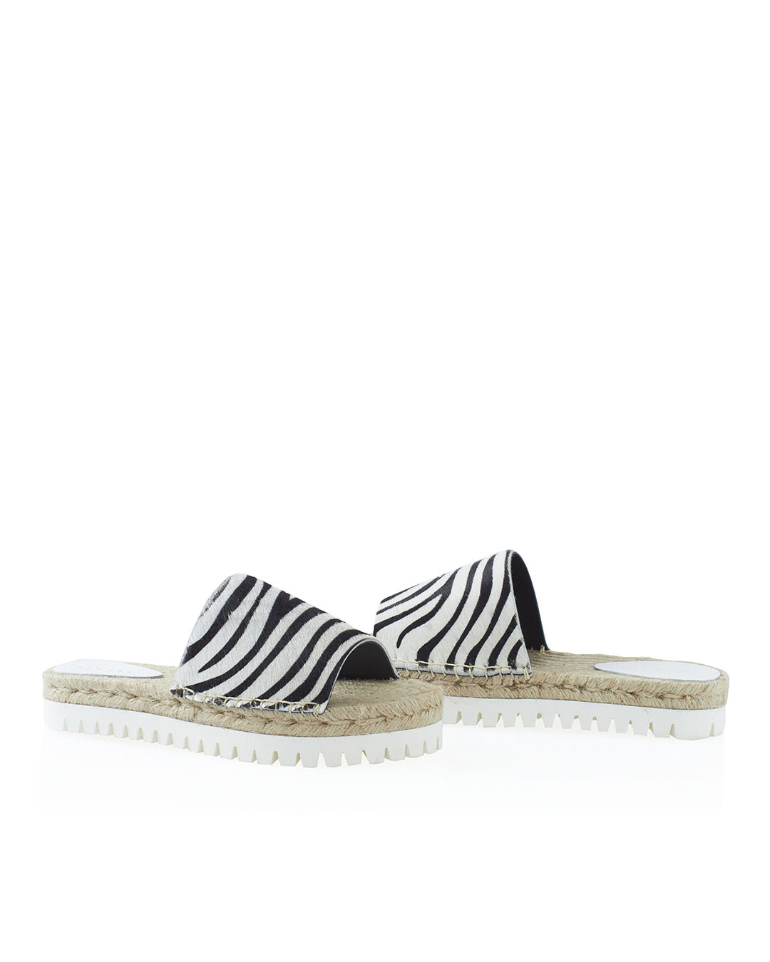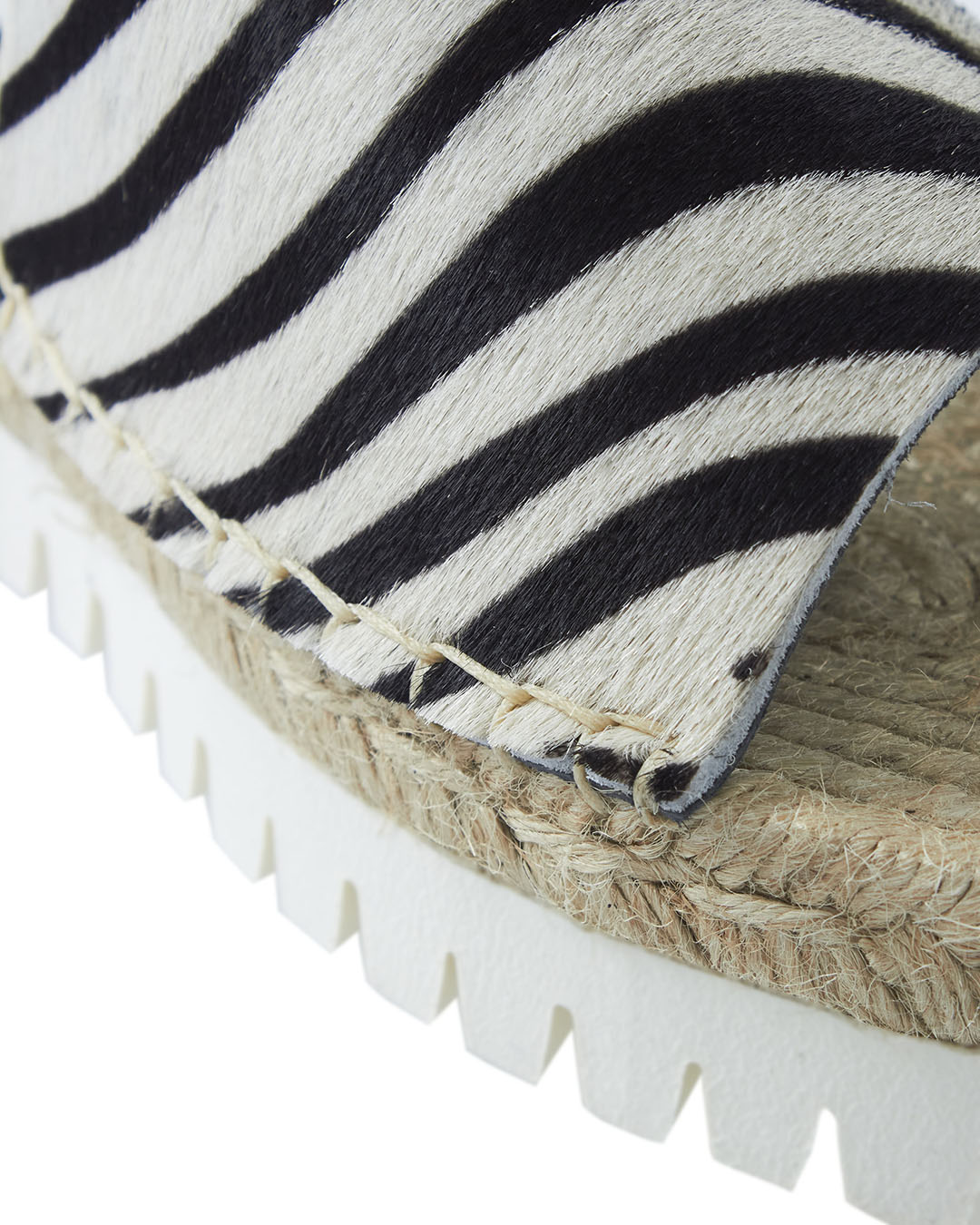 Шлепанцы P.A.R.O.S.H. выполнены из кожи с анималистичным принтом и мелкой отделкой натуральным ворсом. Пара на плоской толстой подошве с отделкой натуральным джутом.
