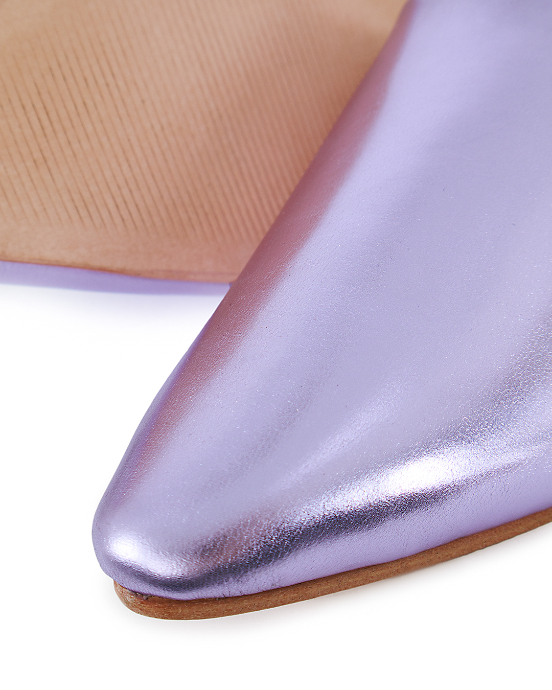 Эти бабуши — истинный эталон утончённого комфорта и стиля. Изготовленные в насыщенном фиолетовом оттенке, они создают яркий акцент в любом образе, добавляя свежесть и оригинальность. Конструкция с открытой пяткой обеспечивает лёгкость и удобство в носке, позволяя легко сочетать их как с повседневным, так и с более изысканным гардеробом. Минималистичный дизайн акцентирует внимание на чистоте формы и цвете. Верх из высококачественной кожи плавно облегает ногу, создавая мягкие линии и роскошное тактильное ощущение. Тонкая подошва выполнена из прочного материала, что гарантирует долговечность и комфорт при ходьбе. Изящная отделка краёв и безупречная обработка швов подчёркивают внимание к деталям и высокое качество изготовления. Эти бабуши станут идеальным выбором для тех, кто ценит стиль и качество, не забывая о комфорте.