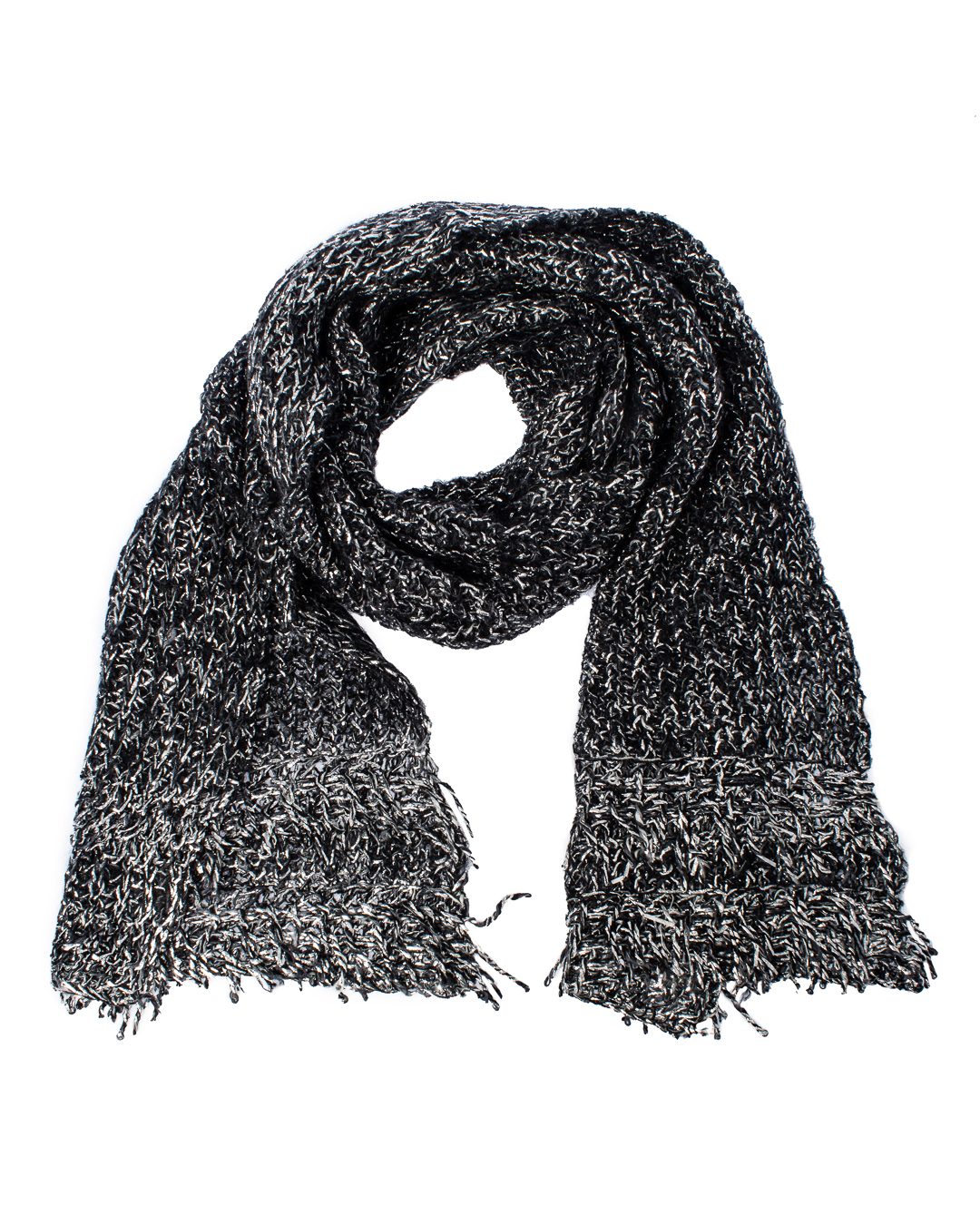 Шарф D.EXTERIOR из новой коллекции крупной вязки из смесовой пряжи из шерсти с добавлением мягкой шерсти альпаки и акрила. Изделие выполнено с бахромой и дополнено окрасом-металлик.