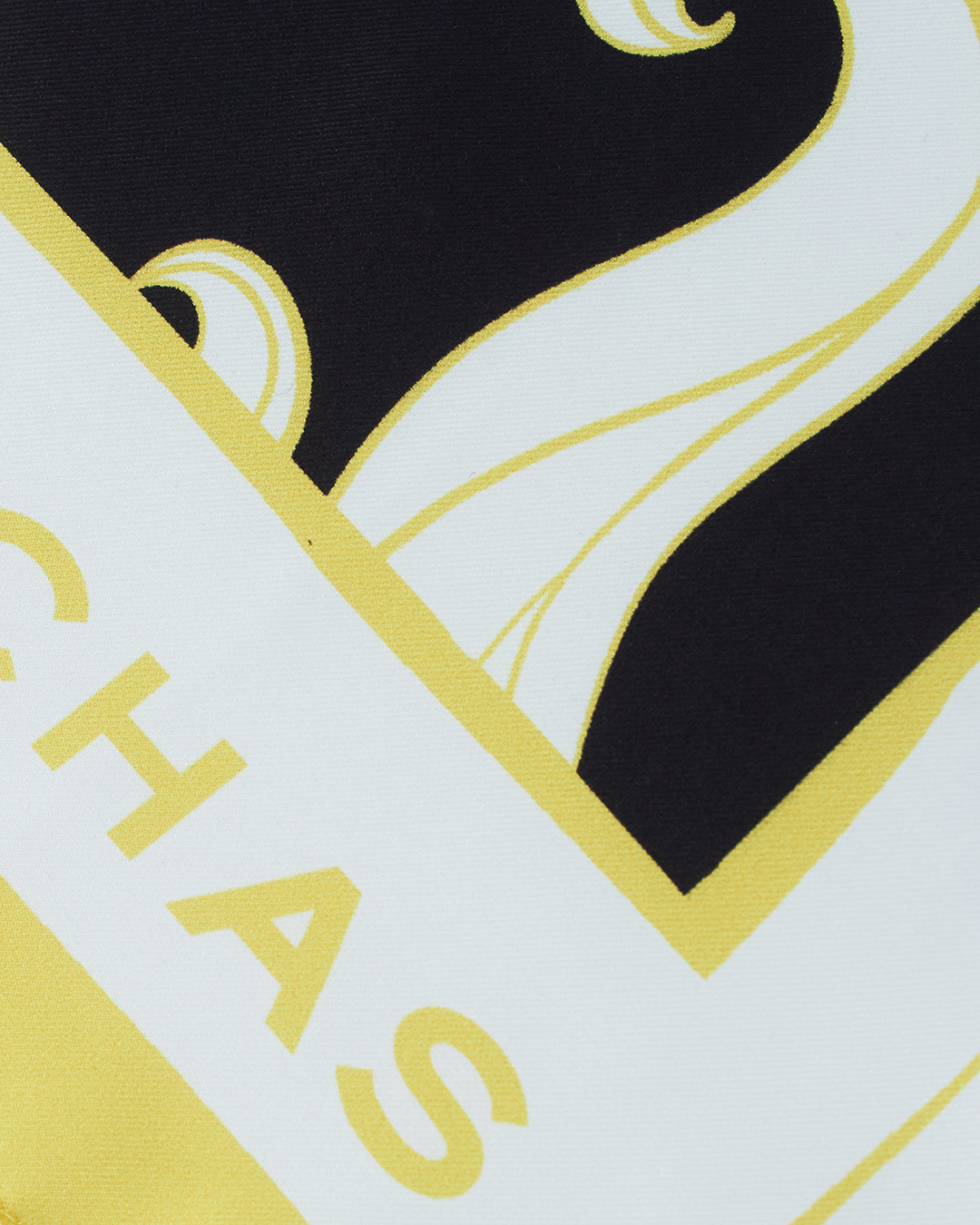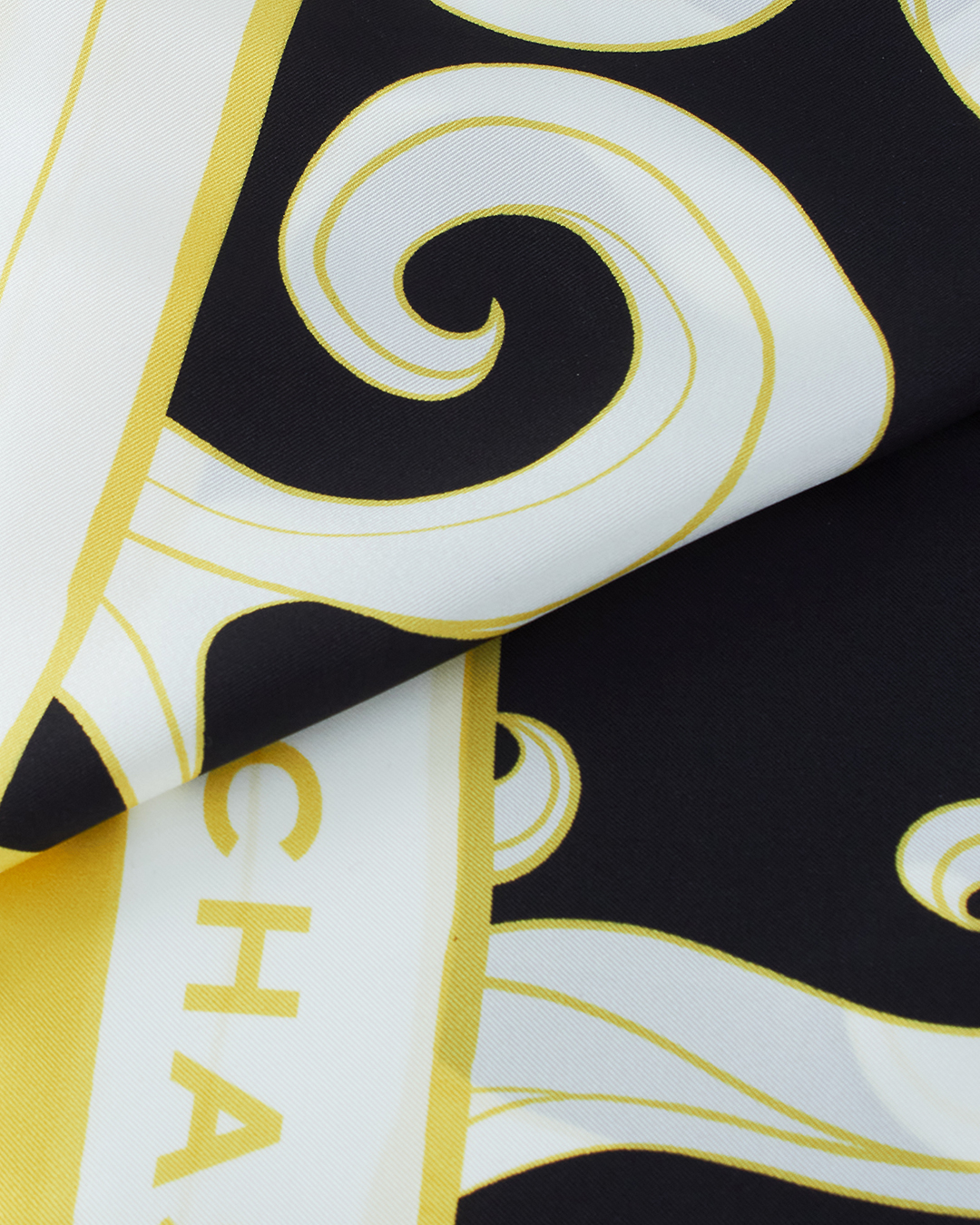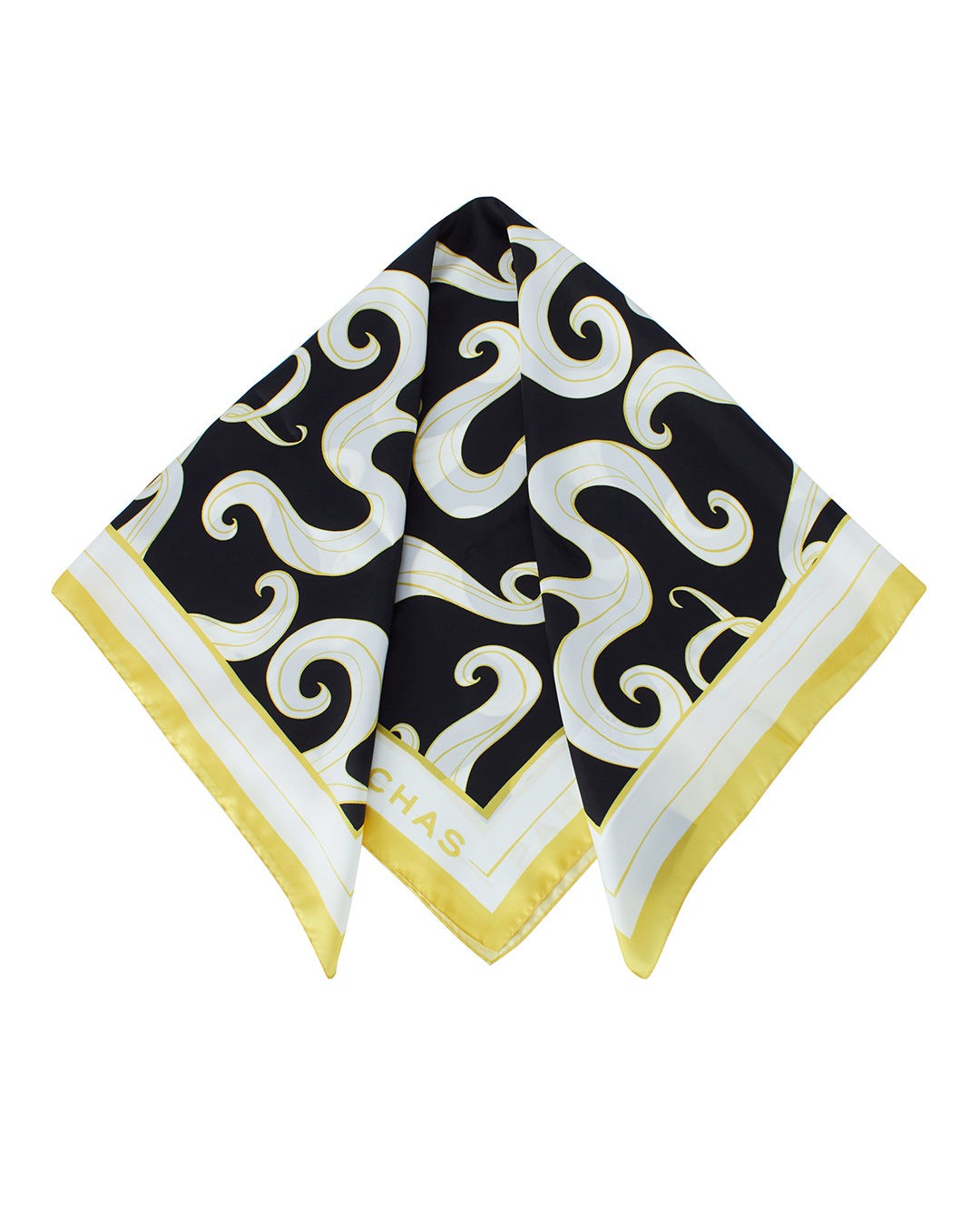 Платок из атласной смеси хлопка с добавлением шелка. Аксессуар дополнен узорным принтом и логотипом бренда.