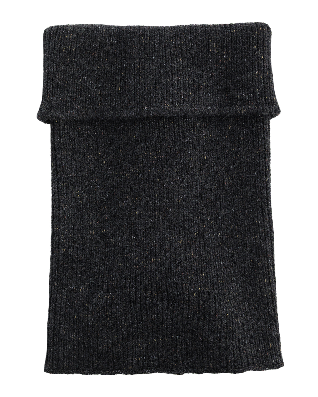 Этот снуд — воплощение утонченной простоты и практичности, изготовленный из мягкой, приятной на ощупь ткани с меланжевым узором, создающим эффект нежной текстуры. Элегантный темно-серый оттенок идеально подходит для разнообразных образов, добавляя в них уют и стиль. Элементом дизайна, привносящим уникальность в это изделие, является подчеркнутая линия пуговиц, выполненных в тон ткани. Этот функциональный элемент позволяет варьировать плотность прилегания и добавляет интересный акцент к классическому дизайну. Ребристая текстура придает снуду дополнительный объем и эластичность, что позволяет ему легко укладываться, создавая разные стилистические решения, будь то расслабленный шарф или плотная защита от ветра. Этот снуд станет идеальным выбором для тех, кто ценит сочетание комфорта и изящного, современного стиля, легко интегрируясь в повседневные и более формальные комплекты, добавляя нотку тепла и изысканности.