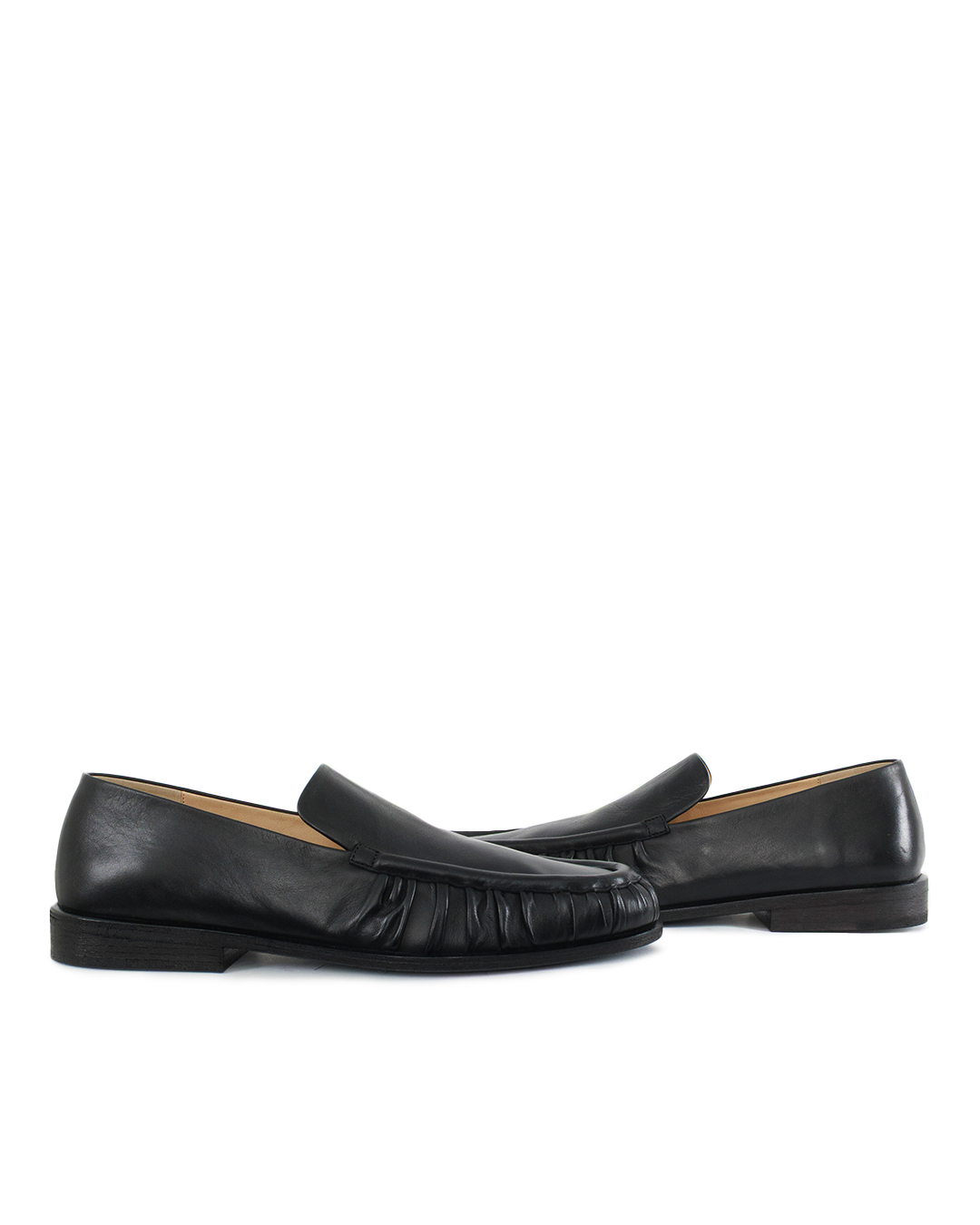 Эти лоферы — воплощение сдержанного шика и актуального комфорта, созданные из высококачественной черной кожи. Прекрасно сбалансированные формы и внимание к деталям делают их незаменимыми для современного гардероба. Классический силуэт с округлым носком привносит нотку изысканности, которая остаётся актуальной вне времени. Декоративная деталь с напуском на передней части обуви добавляет динамичный акцент, подчеркивая оригинальность дизайна. Мягкая кожа гарантирует комфорт и удобство при носке, а отсутствие шнурков обеспечивает лёгкость надевания и снятия. Подошва из прочного материала обеспечивает отличное сцепление и устойчивость, делая эти лоферы идеальными для активной жизни. Качественная строчка обрамляет силуэт обуви, создавая гармонию между классикой и современностью, а также подчеркивает высокий уровень исполнения. Внутреннее покрытие из натуральной кожи способствует ощущению мягкости и поддерживает оптимальный климат для ног. Эти лоферы идеально сочетаются с элегантными костюмами и более расслабленными элементами гардероба, становясь стильным акцентом, который привносит в образ изящество и уверенность.