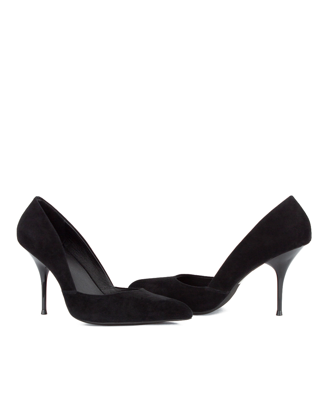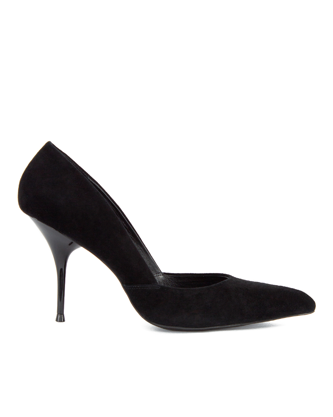 Замшевые туфли-лодочки JEFFREY CAMPBELL черного цвета. Пара с заостренным мысом и на тонком глянцевом каблуке.