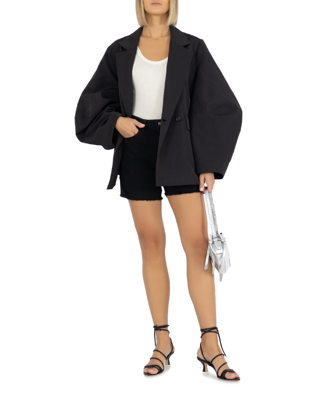 Джинсовые шорты ICON DENIM из плотного хлопкового денима с потертостями. Модель полуприлегающего силуэта с комфортной высокой посадкой и застежкой на молнию и пуговицу. Шорты с классическими пятью карманами.