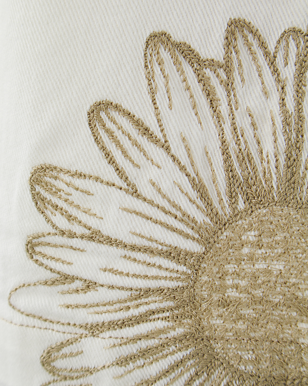 Джинсовые шорты с прорезными боковыми карманами и широким эластичным поясом выполнили из хлопка. Левую брючину украсили вышивкой в виде цветка, а на правой разместили патч. Нам нравится сочетать модель с парной рубашкой.